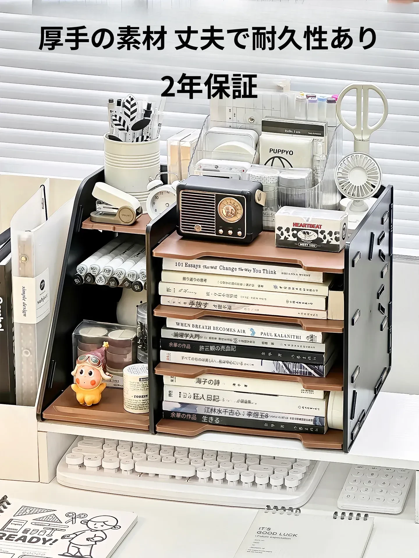 学生に最適!デスク上の本や試験資料をすっきり整理する多層収納ラック - 文房具や小物も簡単に整理できる便利なアイテム!