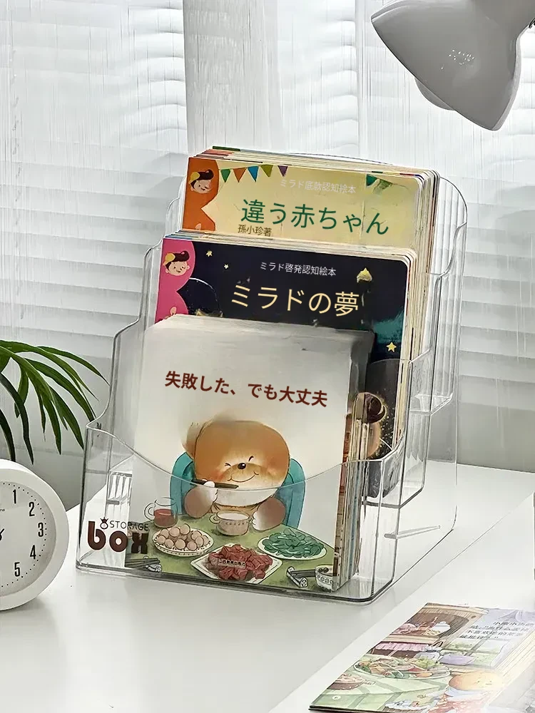 子供のためのデスクブックシェルフ!絵本や読書用アイテムをすっきり収納できるアクリル製ブックスタンド。学生のデスクを整理するための必需品、雑誌ラックとしても大活躍!