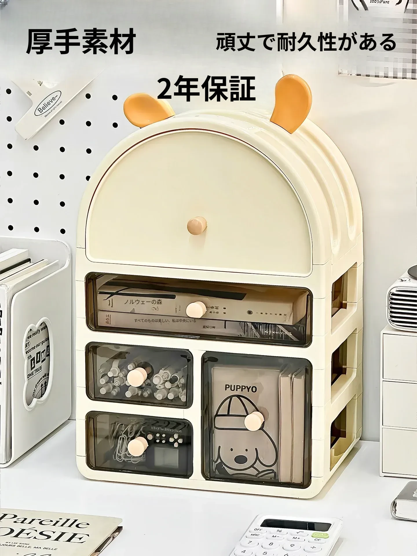 デスク収納ラック 大容量の多段式デスク用品整理ボックス 書籍・文房具に最適な引き出し式小物入れ すっきり片付けて、作業効率UP!