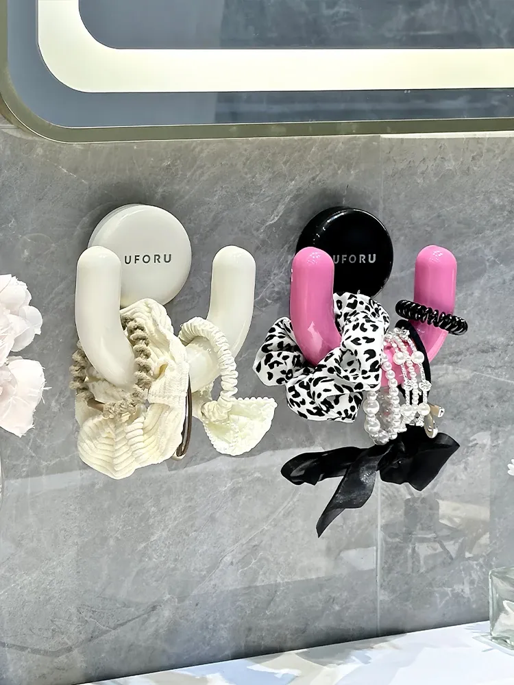 吸盤式トイレ用ヘアゴム収納ラック - 壁掛けで簡単取り付け!洗面台をスッキリ整理、ヘアアクセサリーやクリップをすっきり収納。おしゃれで便利なデザインで、毎日のビューティータイムをもっと楽しく!