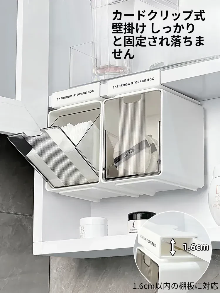 壁掛け式メイクボックス - 取り付け不要!バスルームキャビネット内蔵収納ラック、化粧品やリップスティックをスッキリ整理!洗面台周りを美しく保ち、スペースを有効活用する便利アイテム。