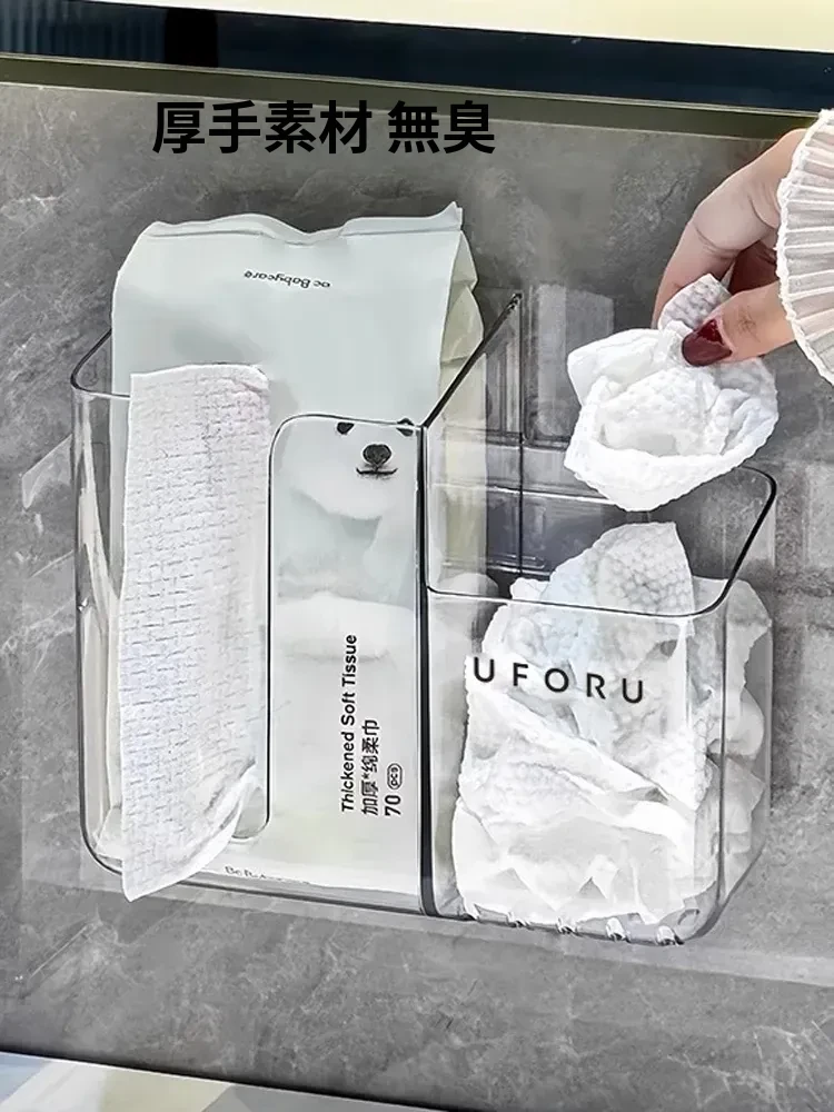 壁掛け洗顔タオル収納ボックス|使い捨てタオルの再利用に最適!柔らかいコットンタオルや多機能バスルーム収納ラックとして、すっきりとした空間を演出します。