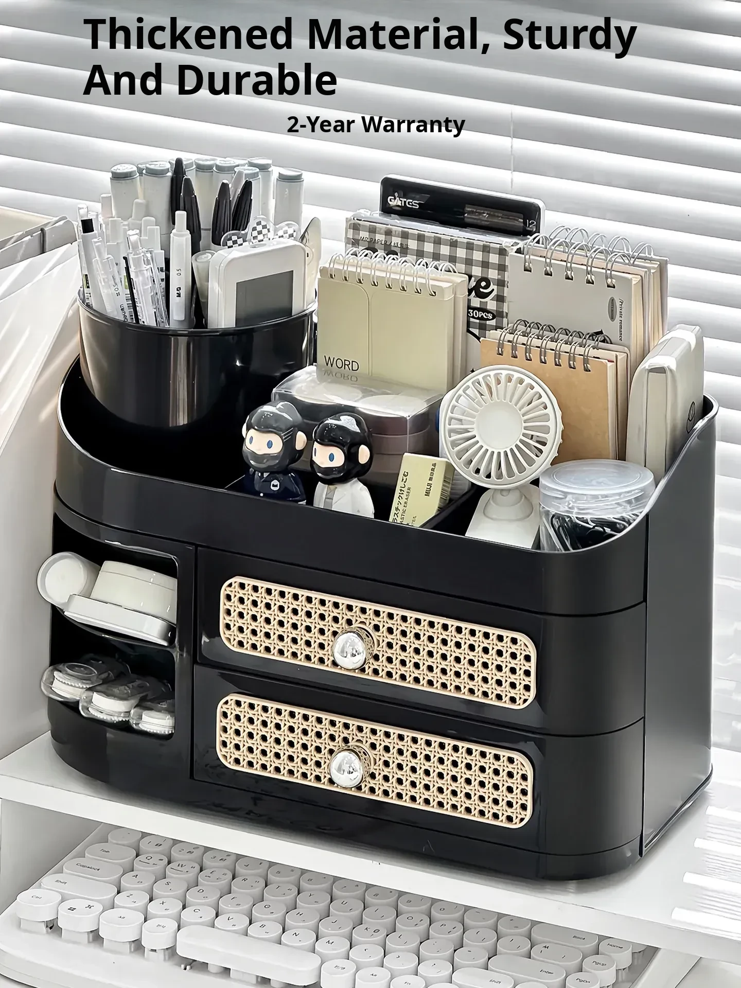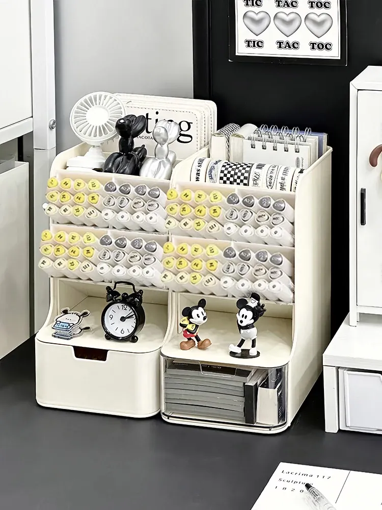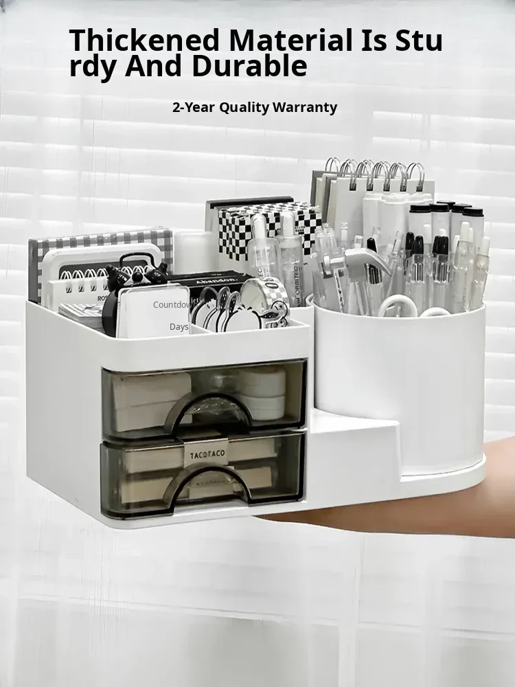 Large Capacity Desktop Organizer with Drawer - Stylish Pen Holder for Students, Perfect for Office Supplies and Miscellaneous Storage on Your Study Desk