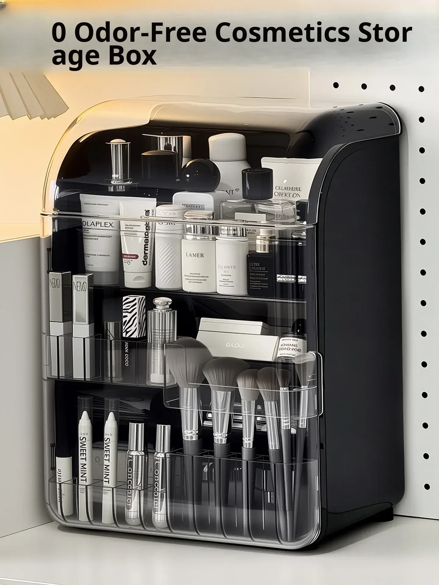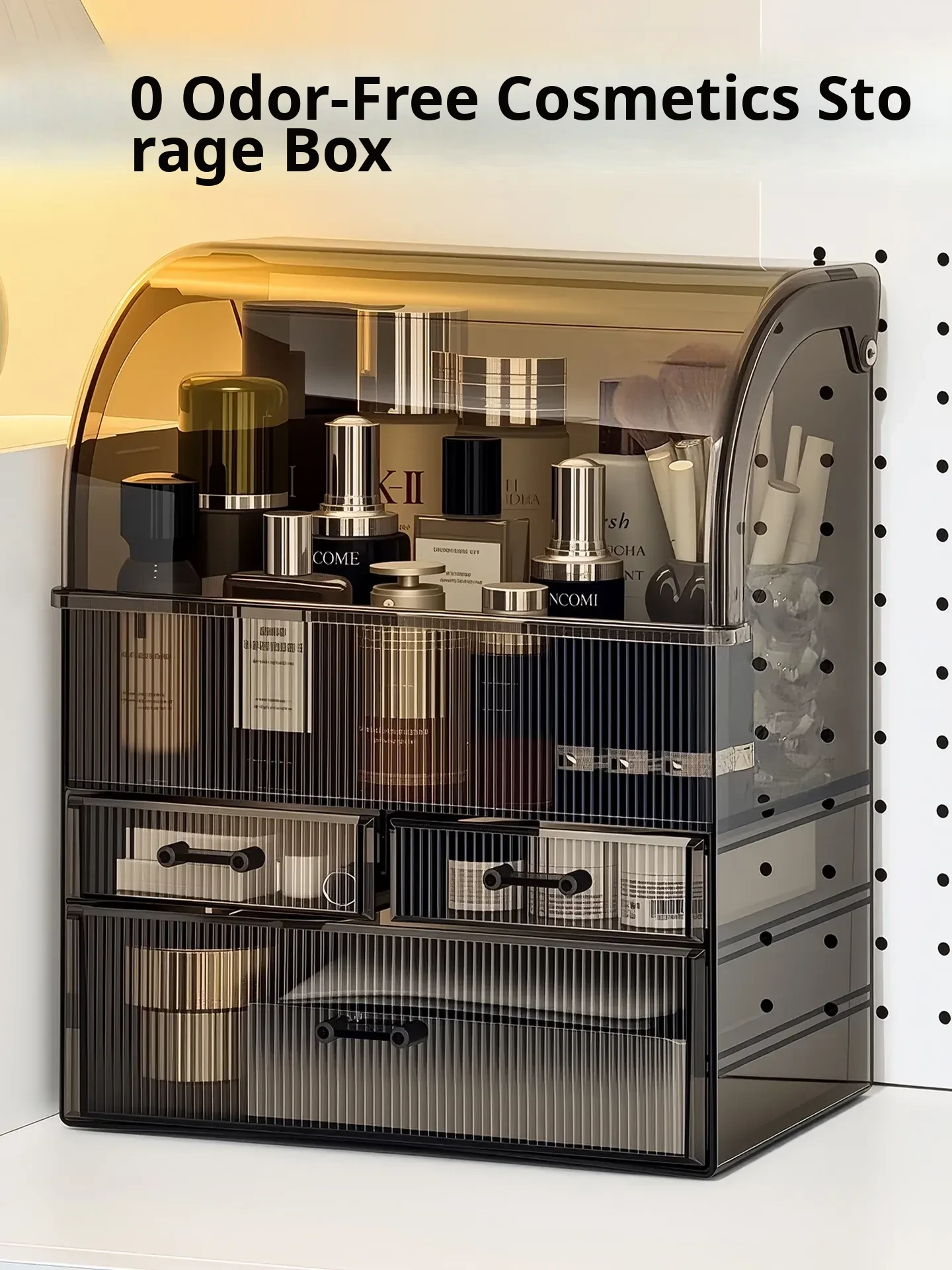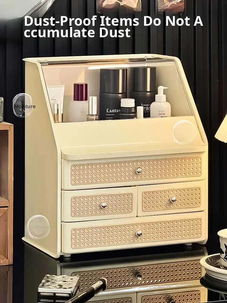 Luxury Makeup Organizer Box - Spacious Cosmetic Storage for Vanity, Elegant and Dustproof Skincare Display Rack, Perfect for a Stylish Touch on Your Desktop!