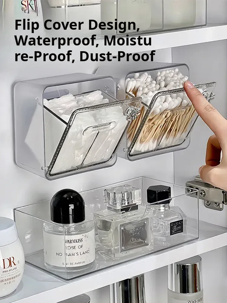 Wall-Mounted Bathroom Mirror Cabinet Organizer - Dustproof Makeup Cotton Pad and Swab Storage Box with Hair Tie and Lipstick Holder - Perfect for a Tidy Vanity!