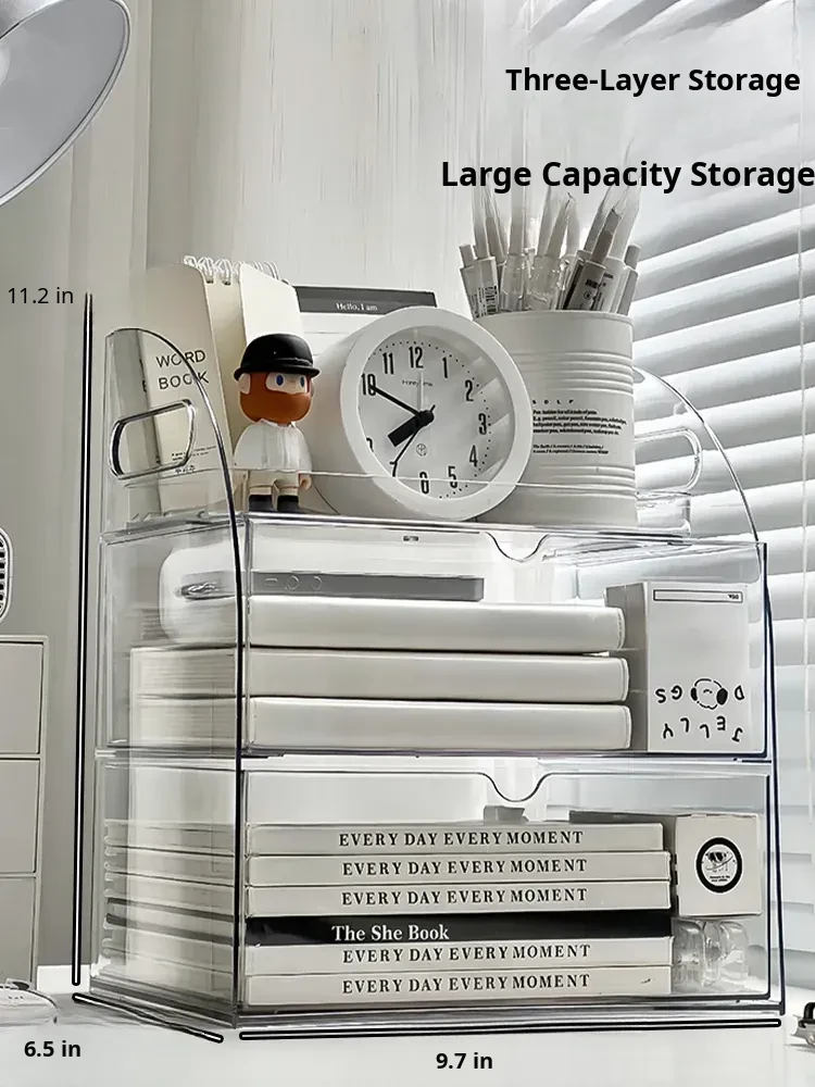 Multifunctional Acrylic Desk Organizer - Stylish Layered Storage Rack for Office Supplies and Miscellaneous Items, Perfect for Your Workspace!