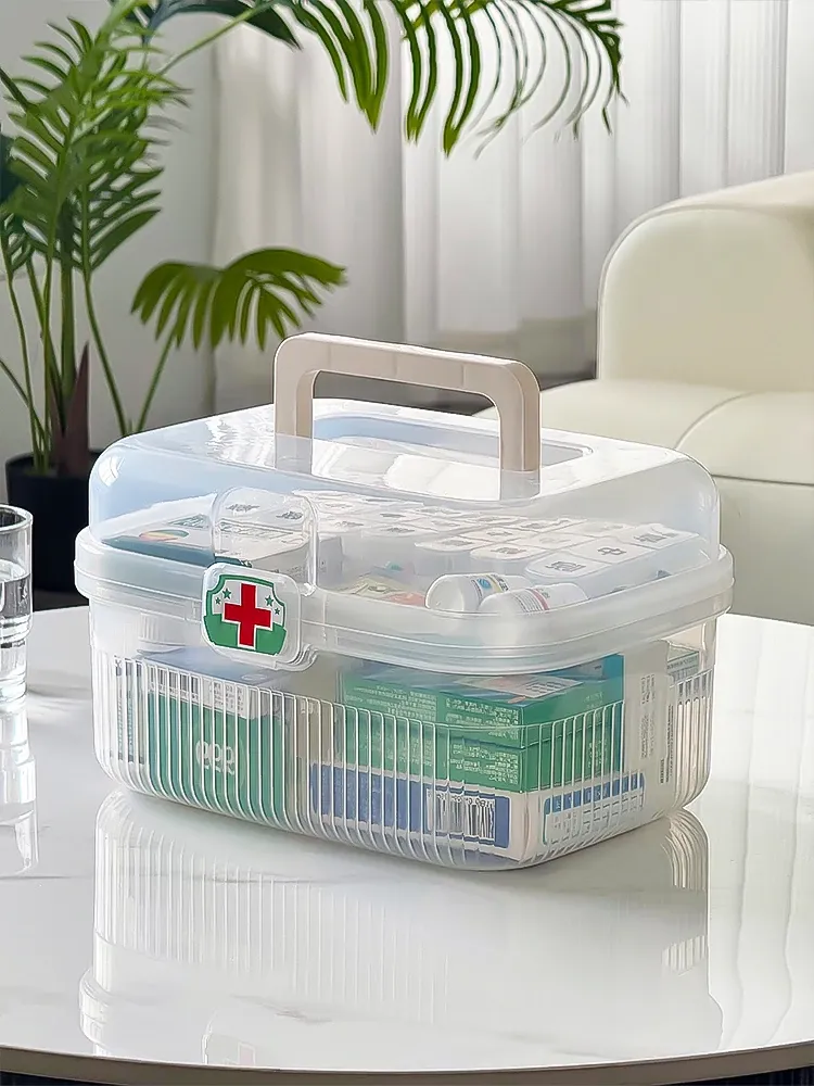 Multi-Layer Large Capacity Transparent Home Medicine Cabinet - Portable First Aid Organizer for Family Health Care and Medication Storage