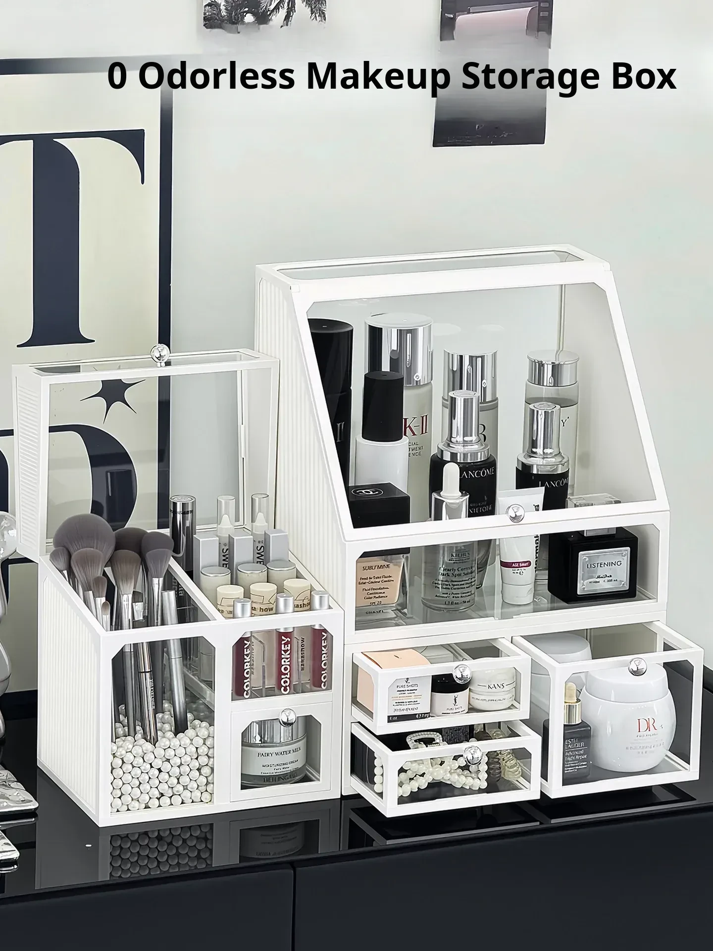 Elegant Makeup Organizer Box - Stylish Desktop Vanity Storage for Skincare Products, Makeup Brushes, Eyeliners, and Drawer Organizer. Perfect for Keeping Your Beauty Essentials Neat and Accessible!
