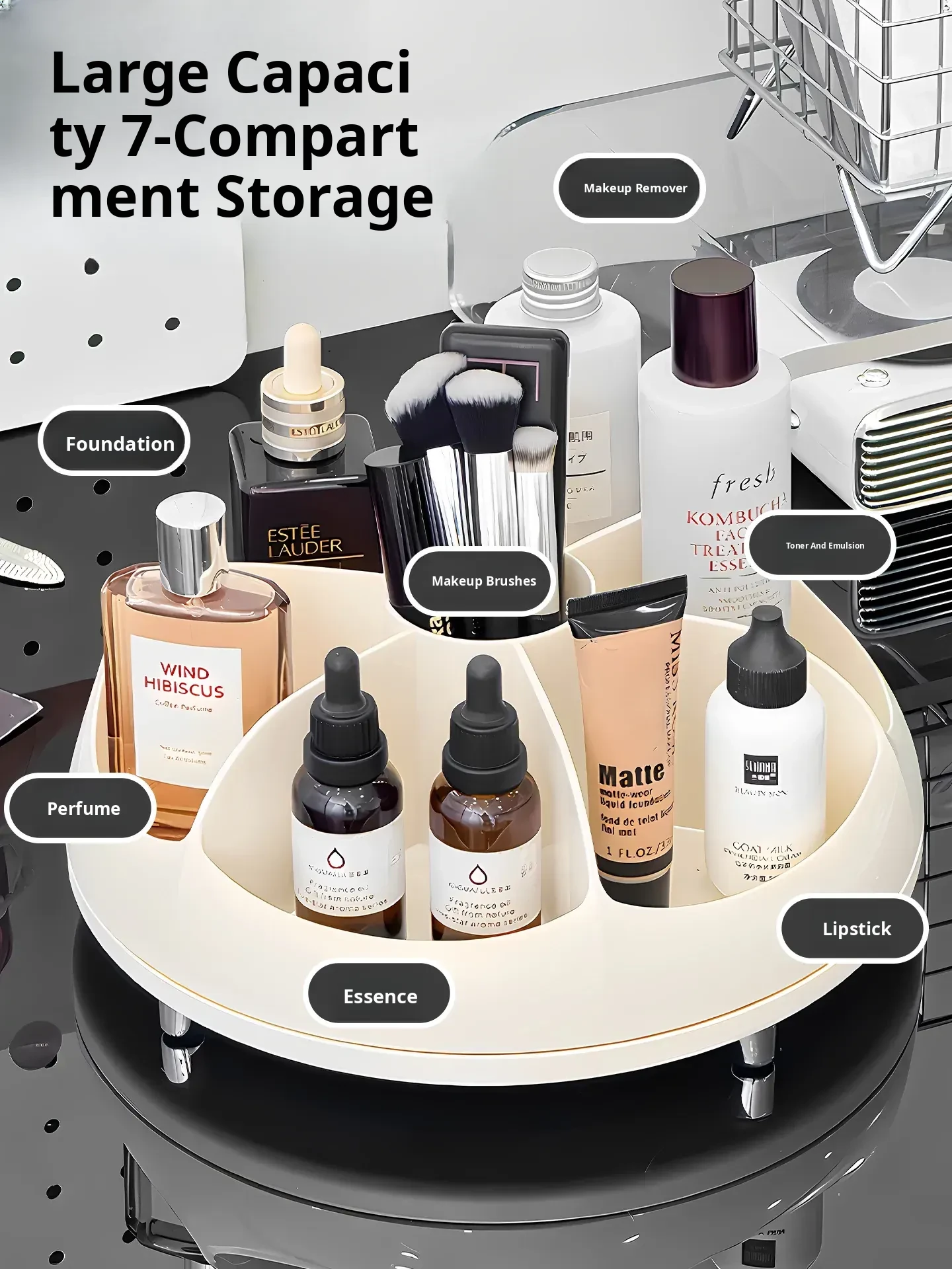 Elegant Rotating Makeup Organizer - Stylish Lipstick and Brush Storage Box for Vanity, Perfect Skincare Product Display and Desktop Organizer