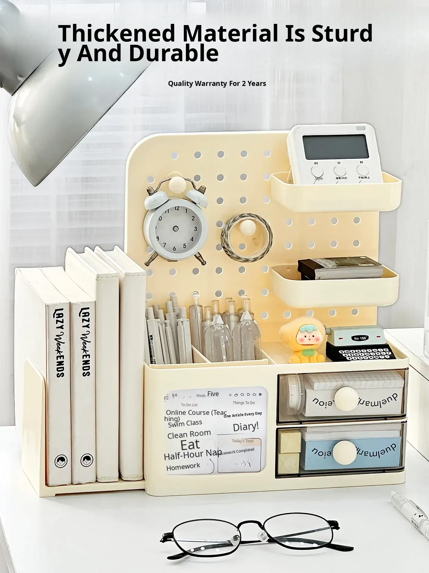 Multifunctional Desk Organizer with Pegboard - Drawer Storage Box for Students, Ideal for Stationery, Books, and Miscellaneous Items整理,提升桌面整洁度,完美适用于学生学习空间。