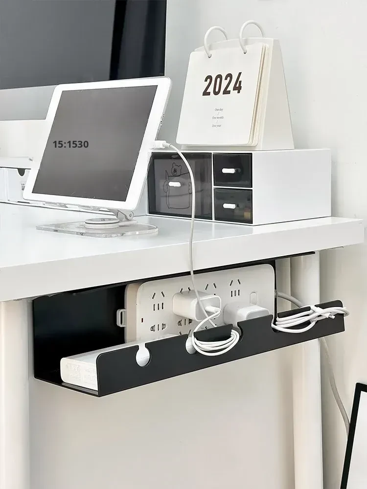 Under-Desk Cable Management Box - No Drill Wire Organizer for Office, Perfect for Concealing Power Strips and Keeping Cables Tidy and Secure.