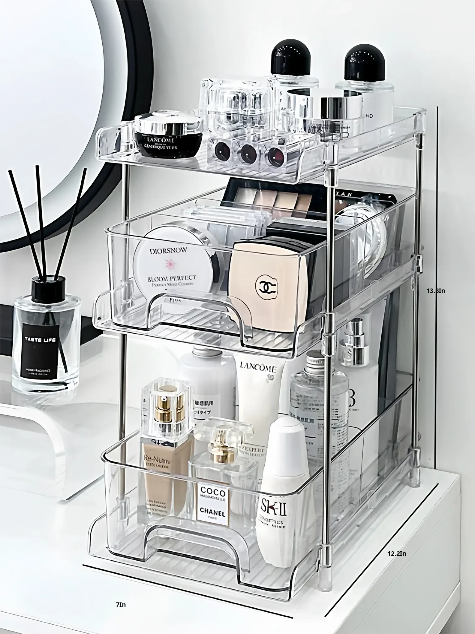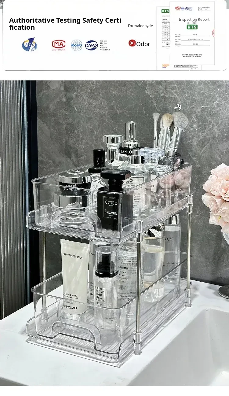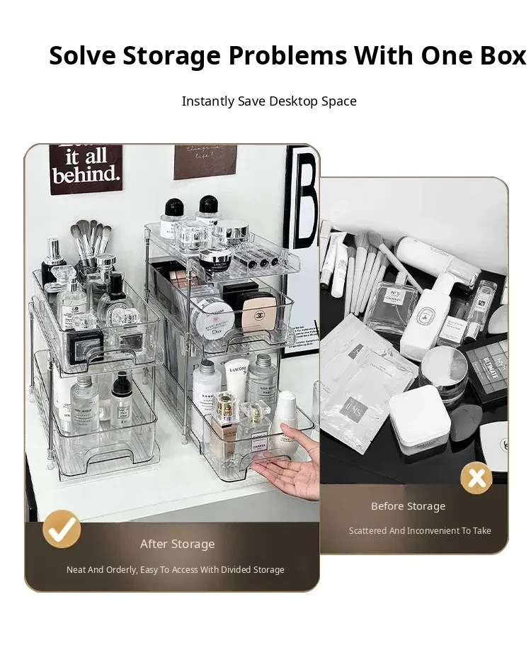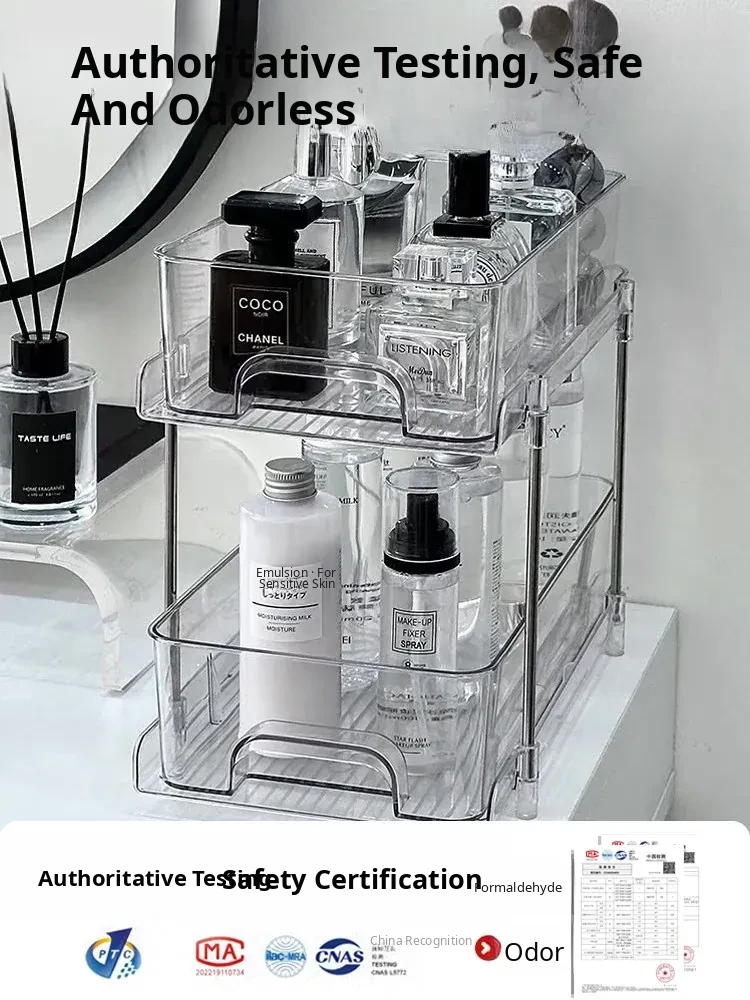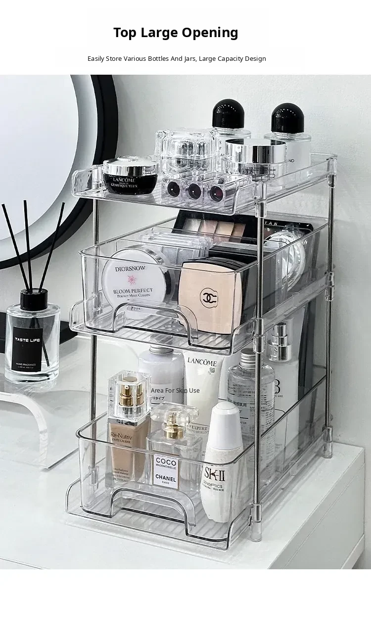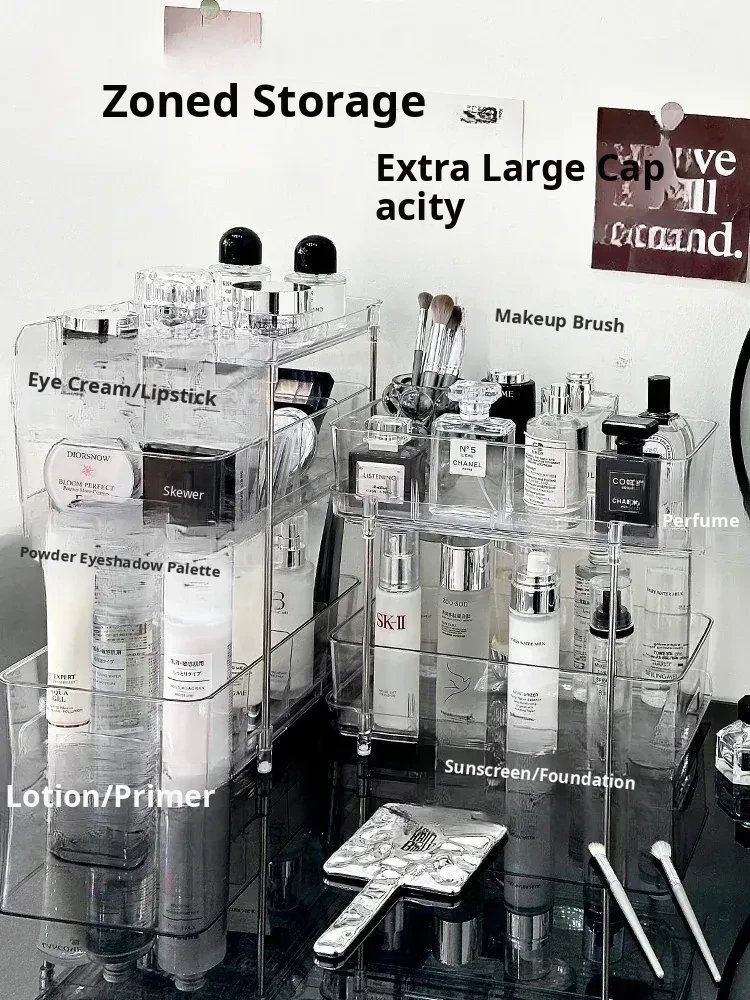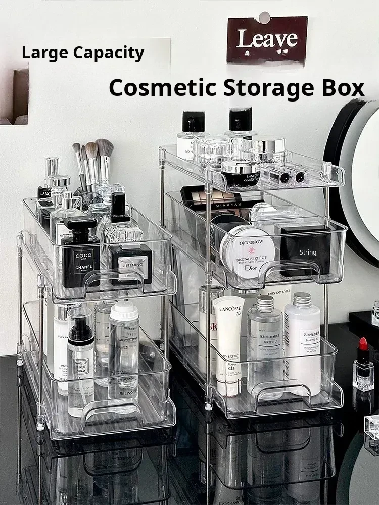Clear Cosmetic Organizer - Multi-Layer Makeup Storage Box for Vanity, Perfumes, Lipsticks, and Skincare Products - Ideal for Bathroom and Dressing Table Organization