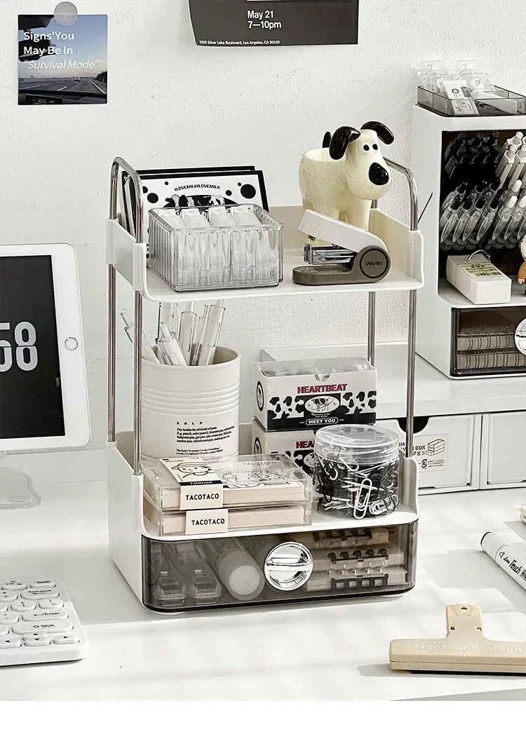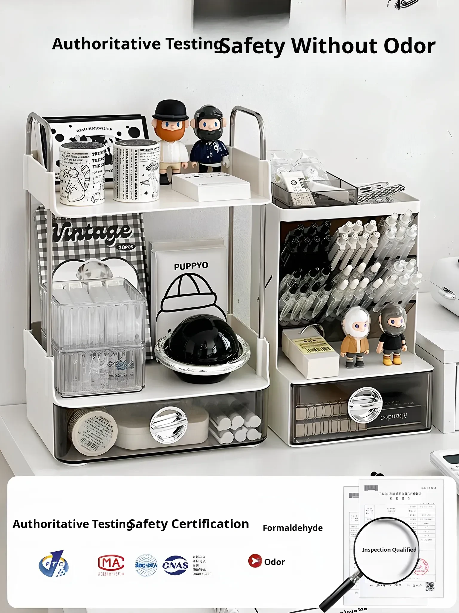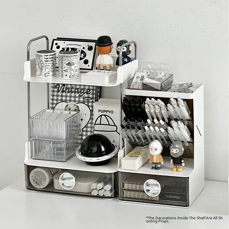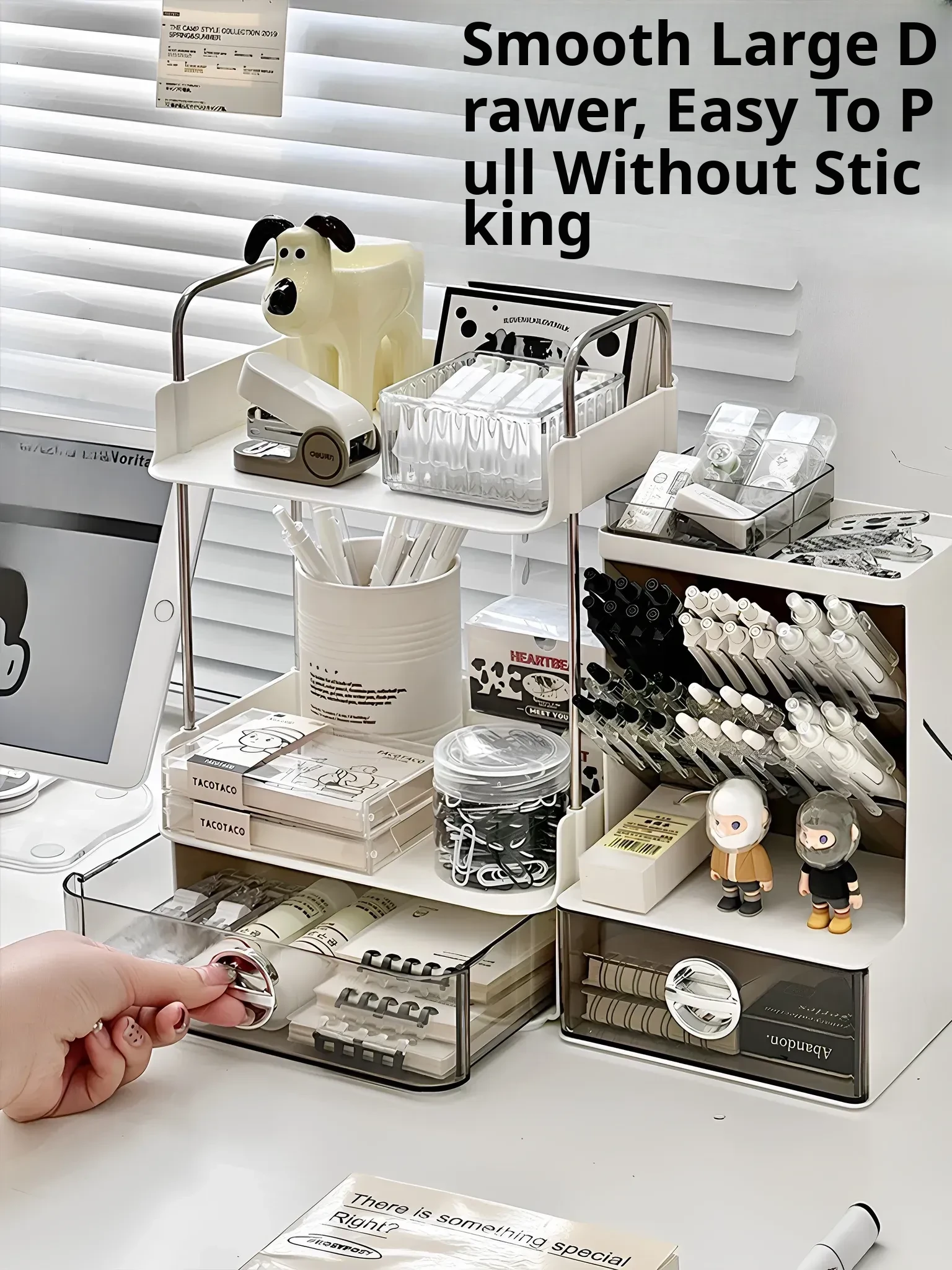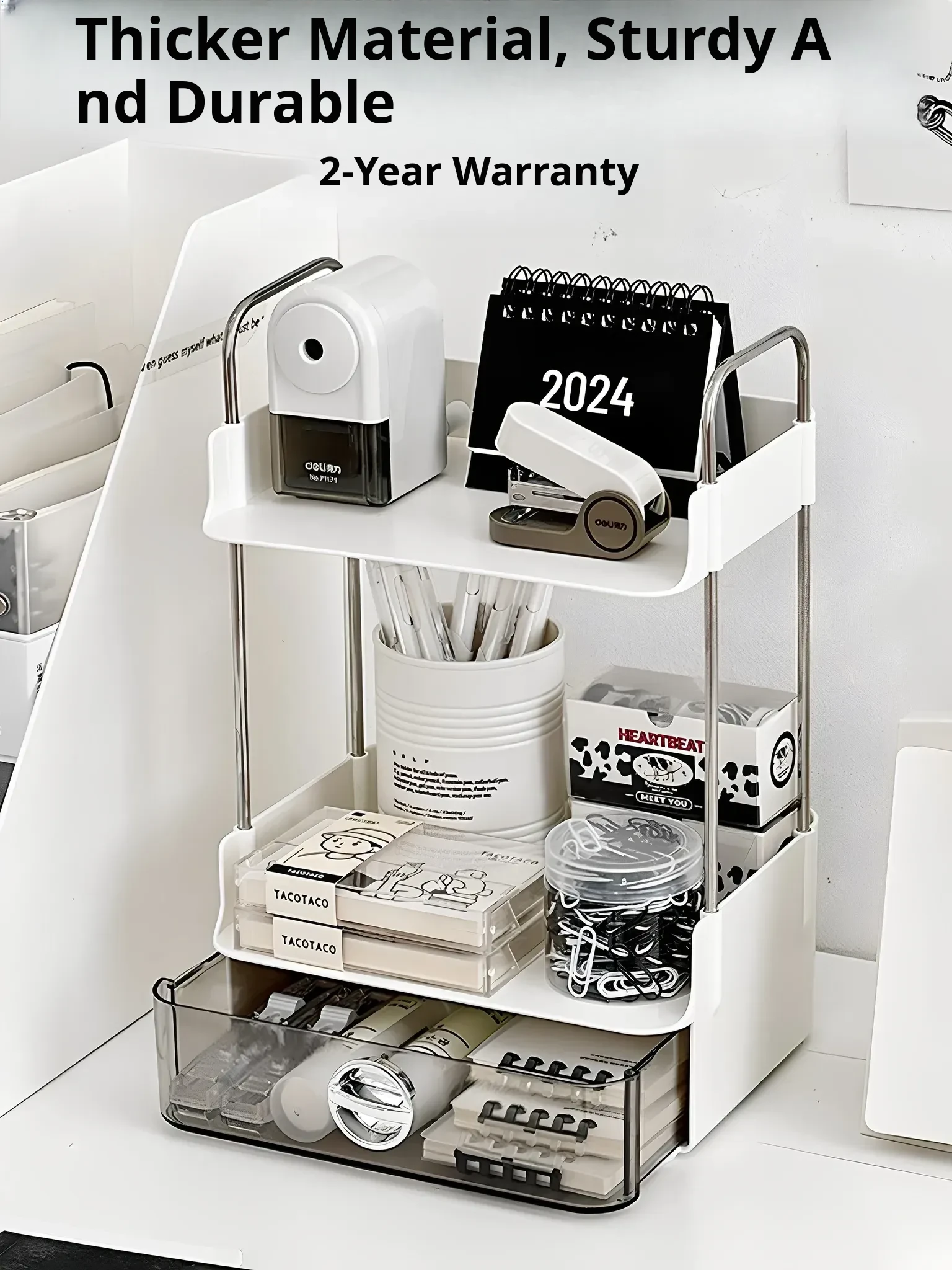 Double-Layer Desk Organizer with Drawers - Stylish Storage Rack for Stationery and Supplies, Perfect for Dorms and Offices