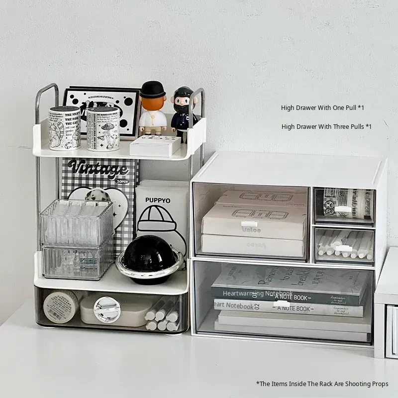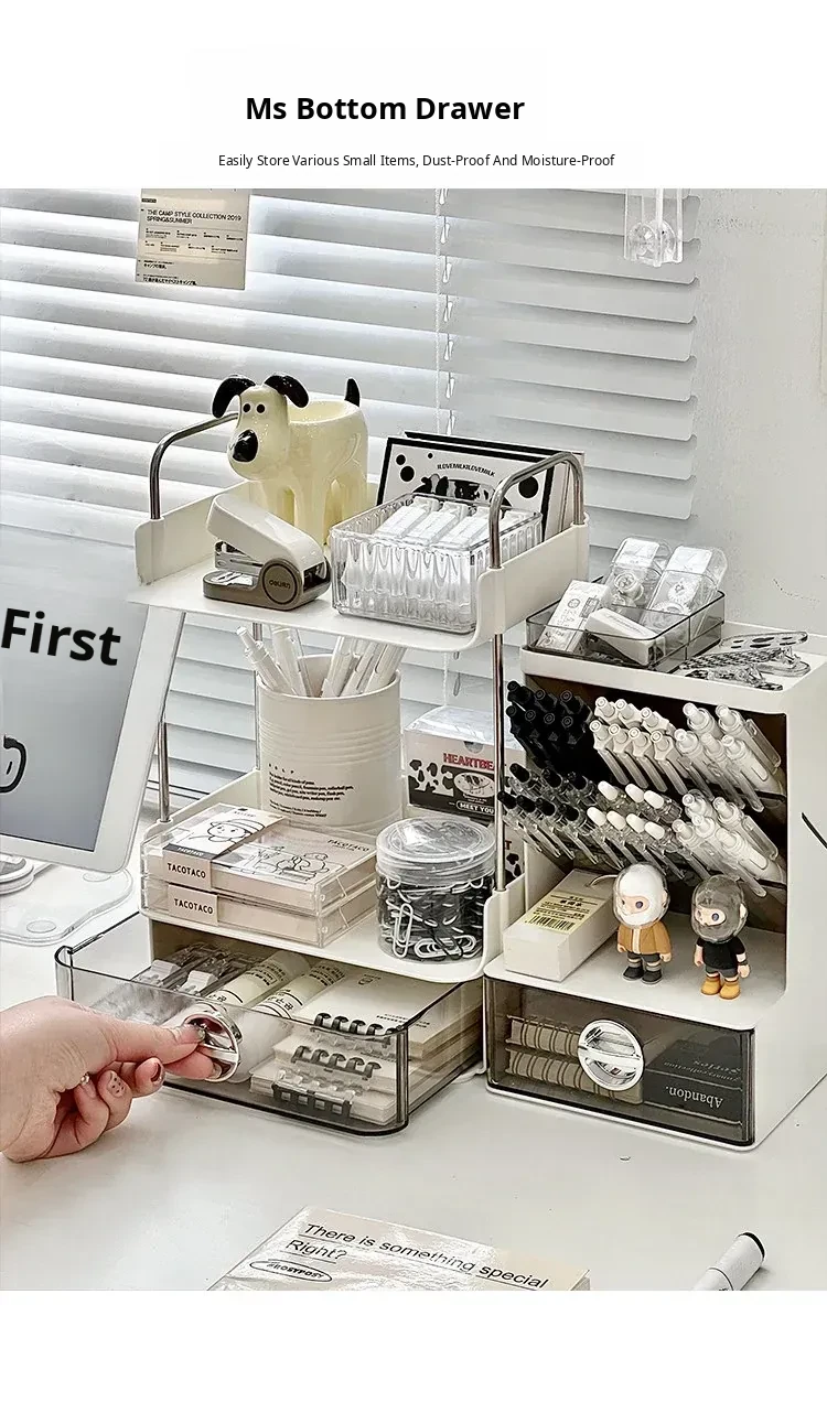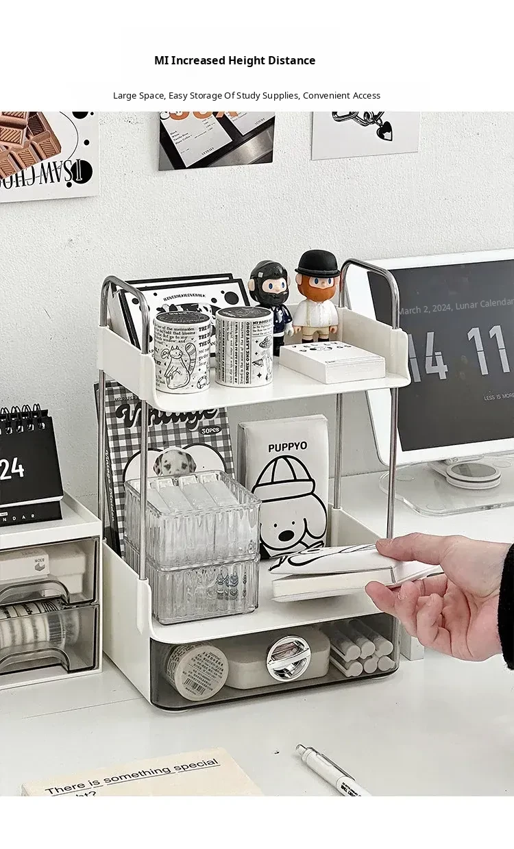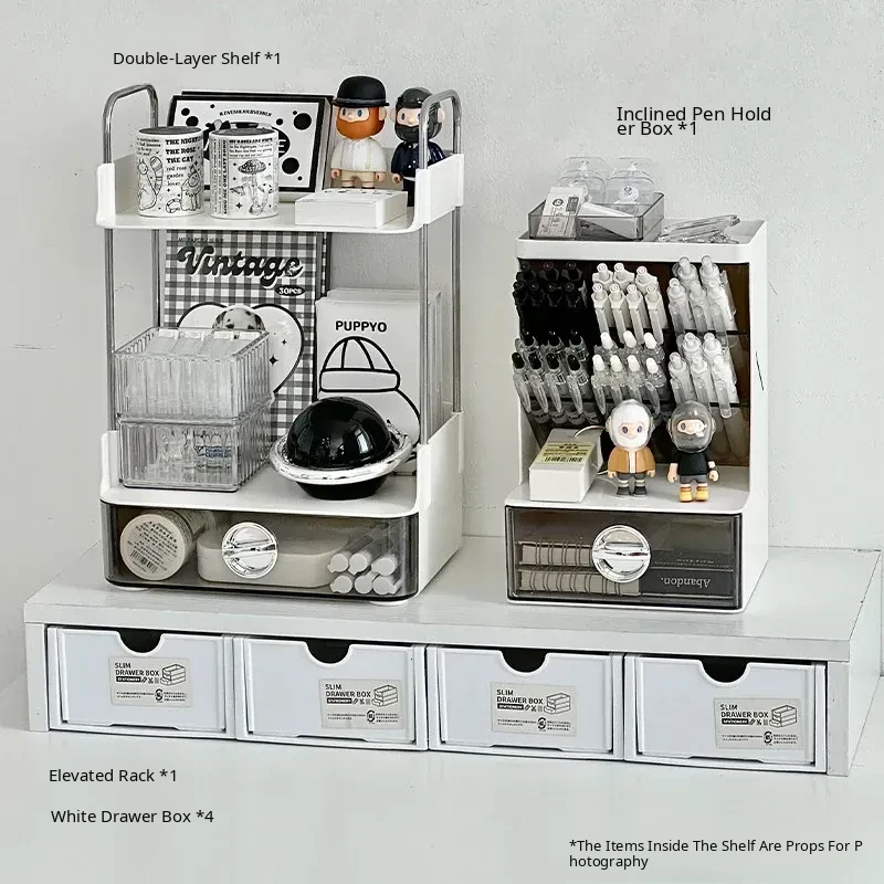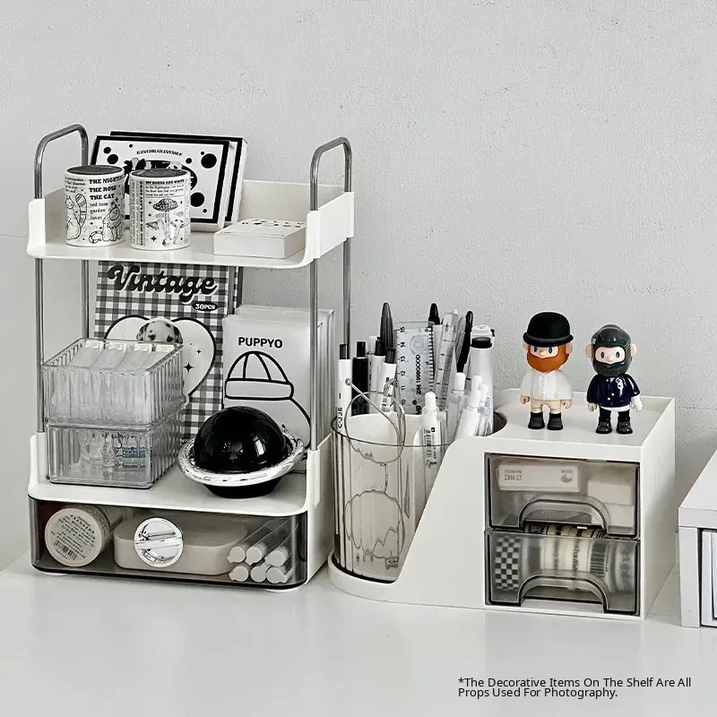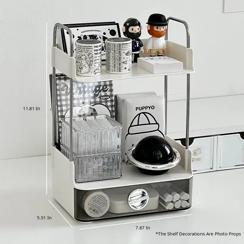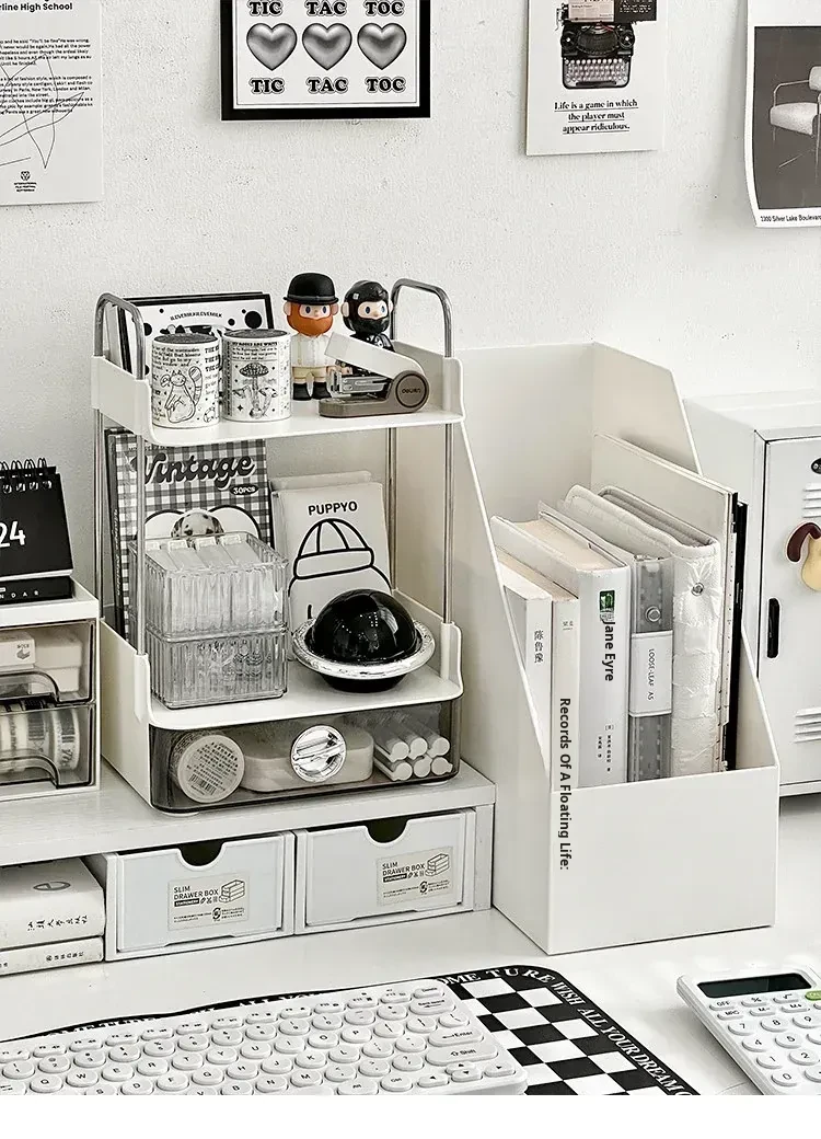Double-Layer Desk Organizer with Drawers - Stylish Storage Rack for Stationery and Supplies, Perfect for Dorms and Offices