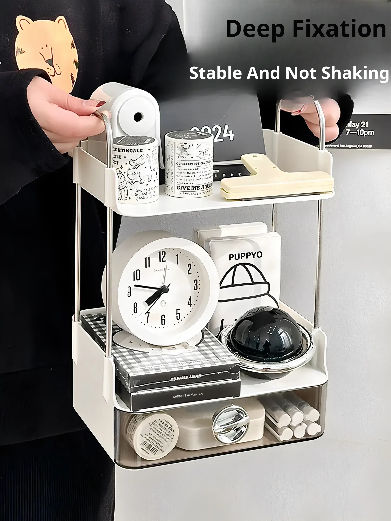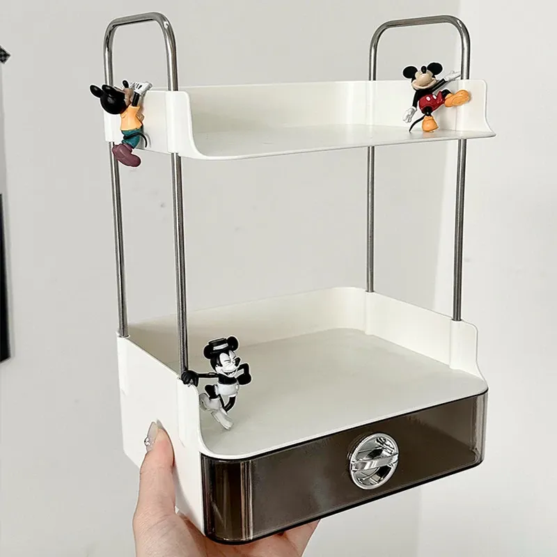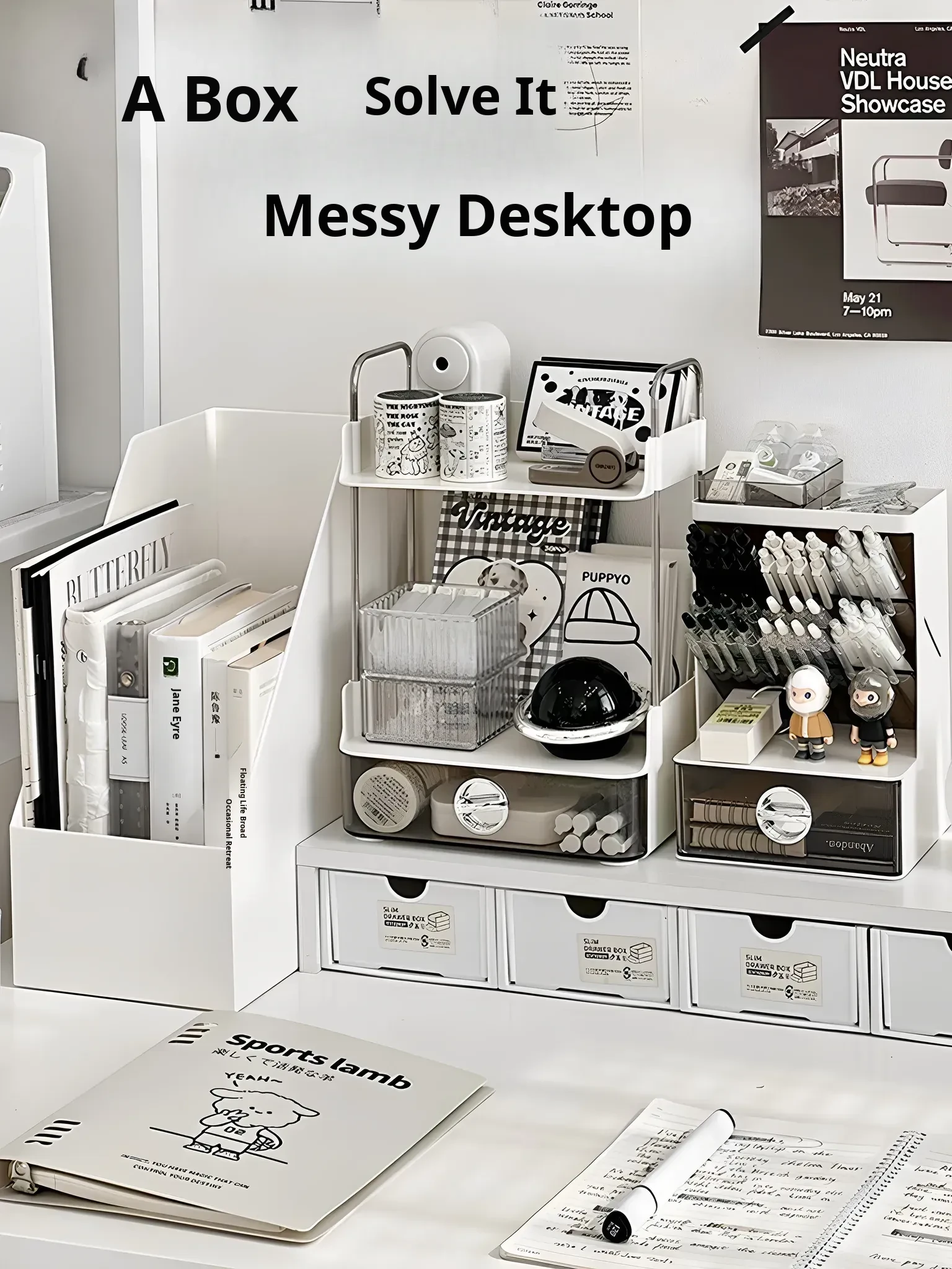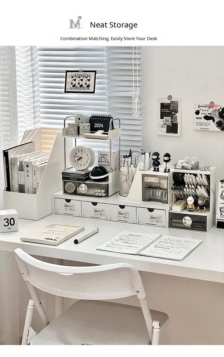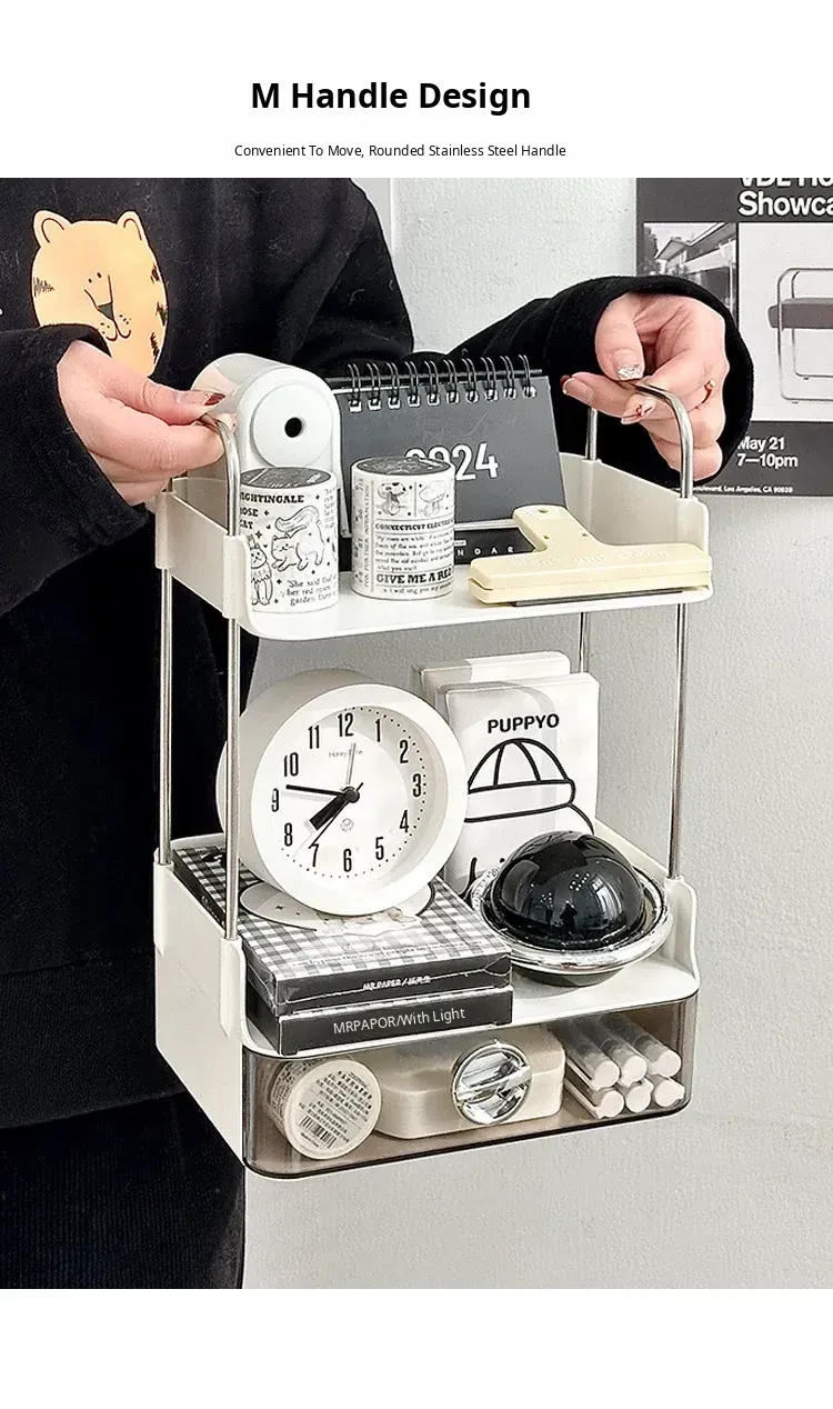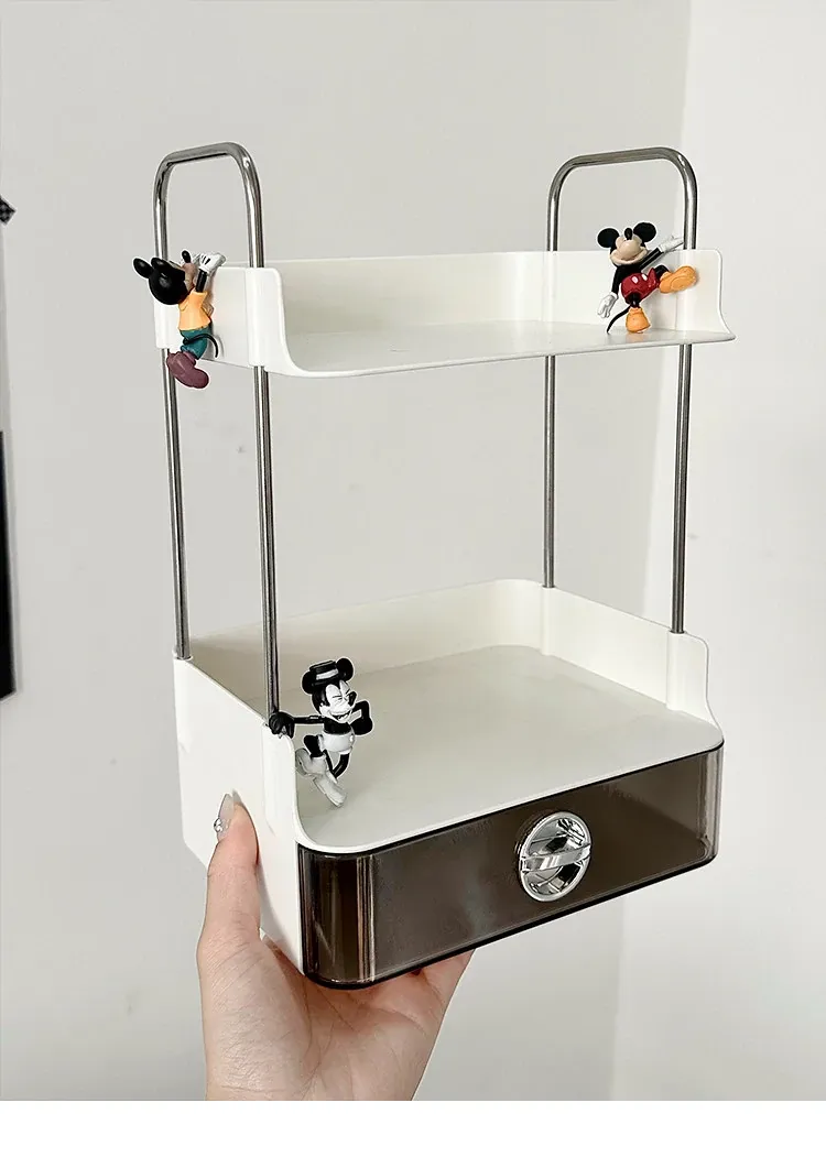 Double-Layer Desk Organizer with Drawers - Stylish Storage Rack for Stationery and Supplies, Perfect for Dorms and Offices