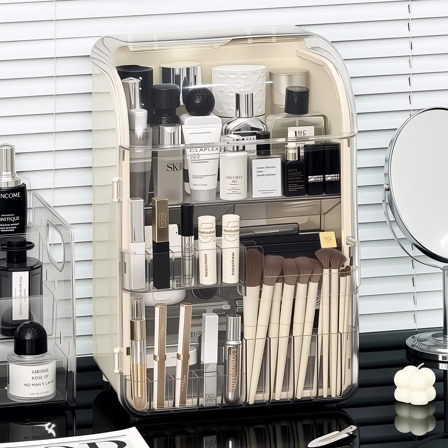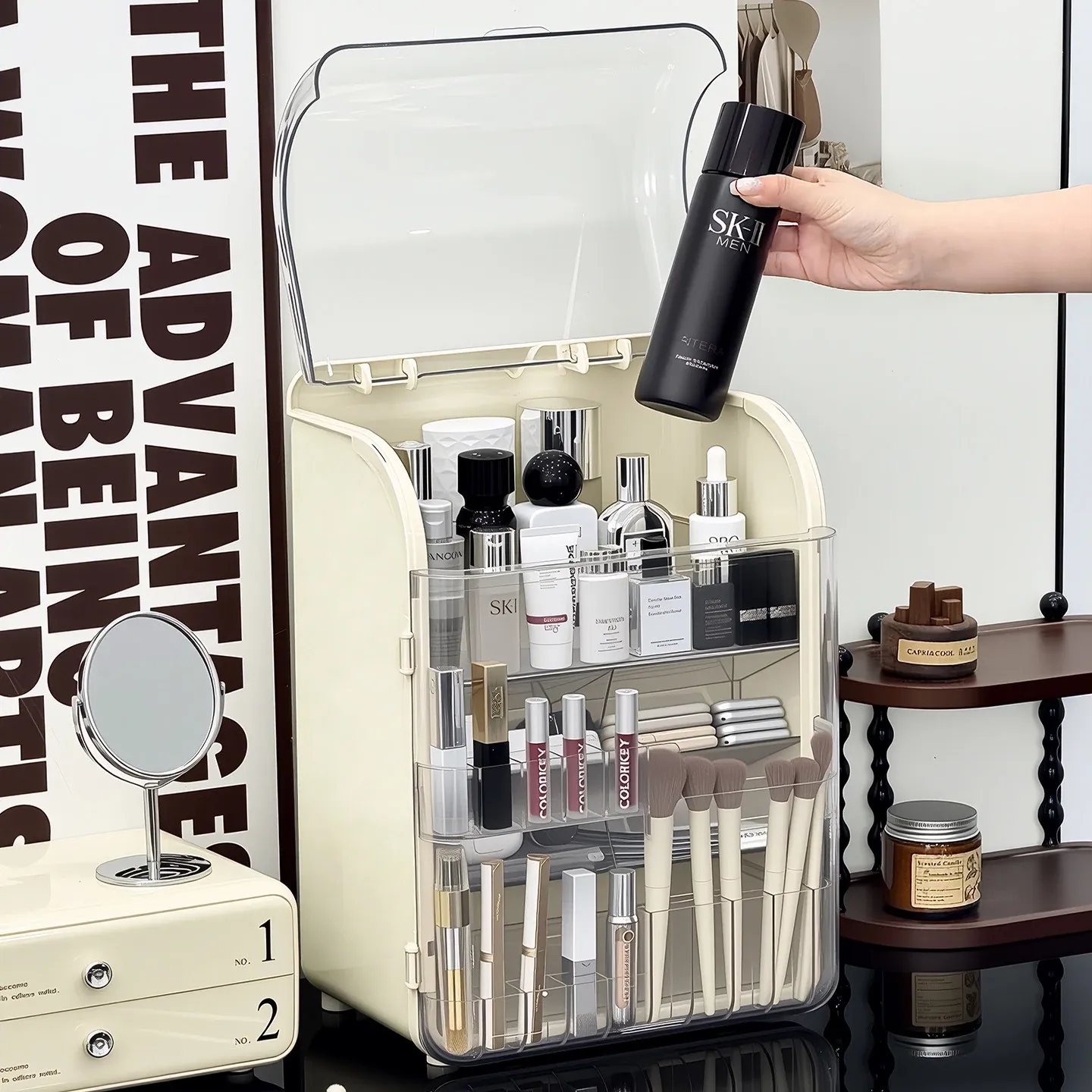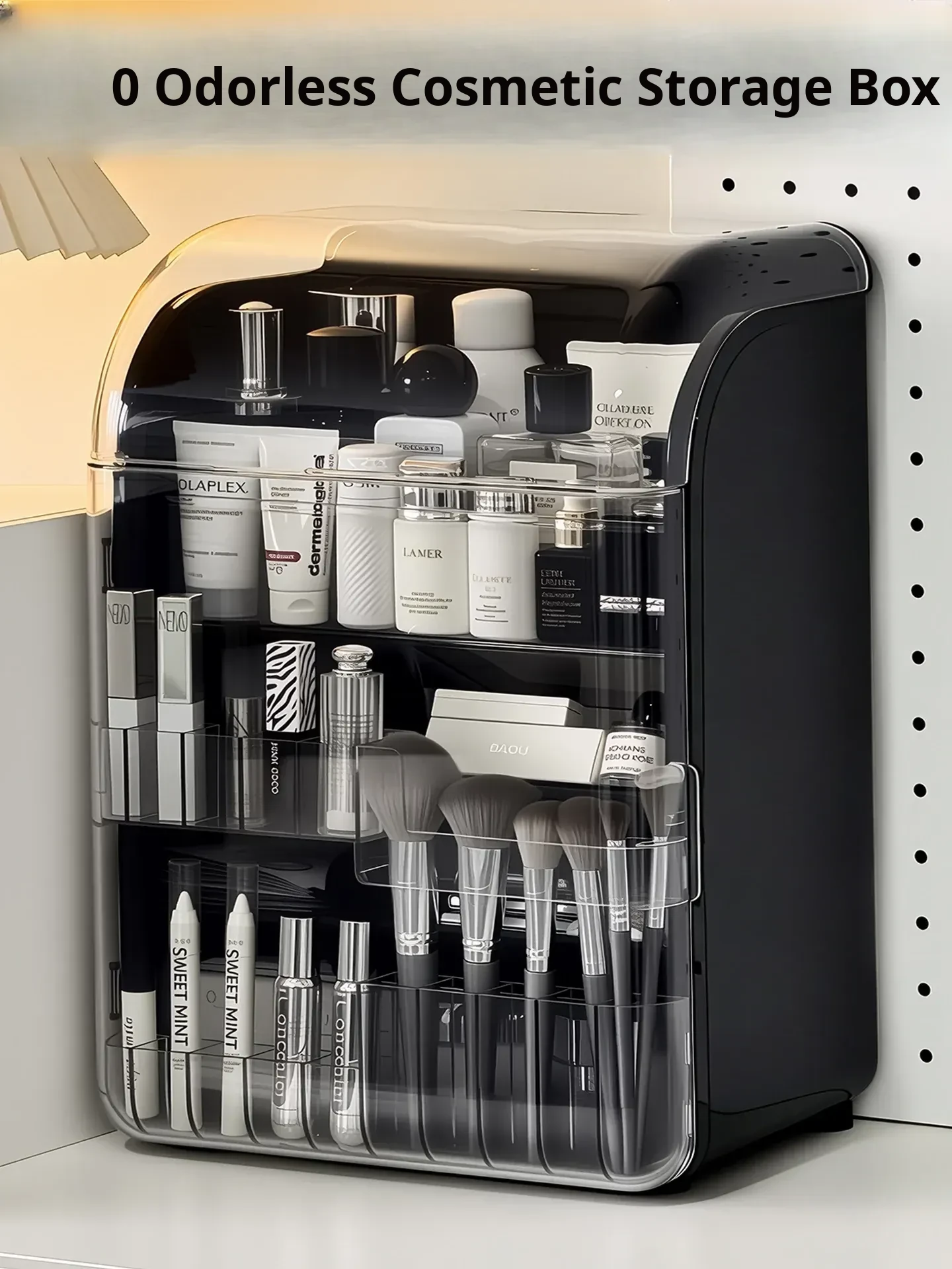 Elegant Cosmetic Organizer Box - Large Capacity Skincare Storage with Dustproof Design for Makeup Vanity and Face Mask Organization. Perfect for a Stylish and Tidy Space!