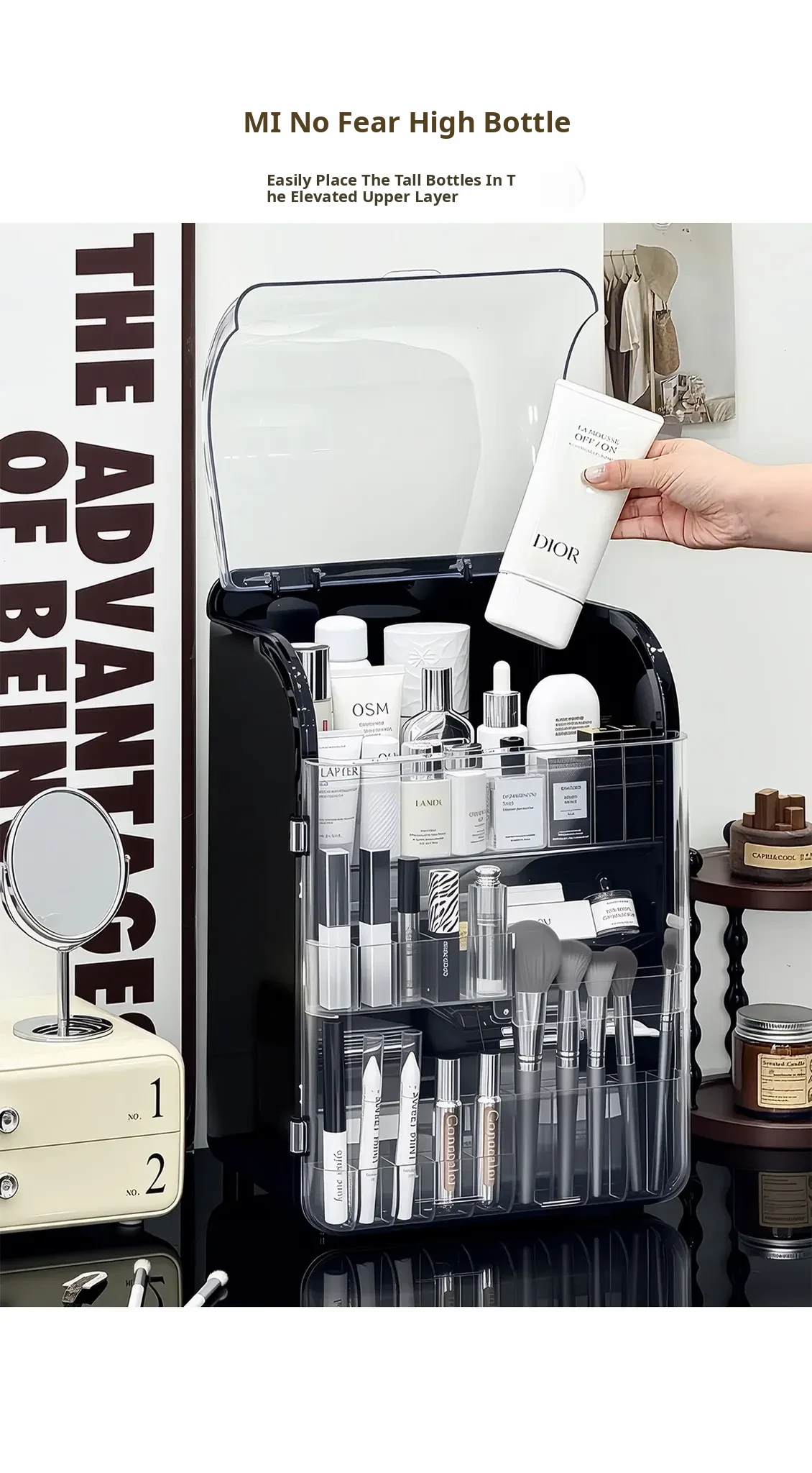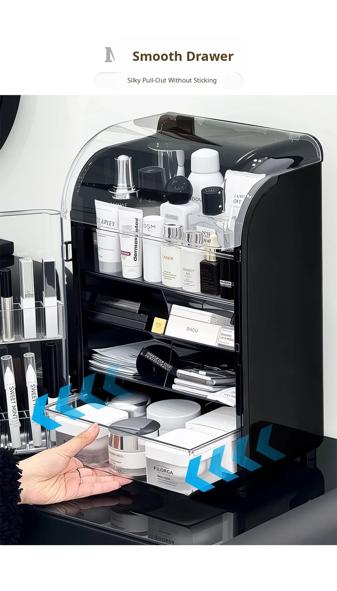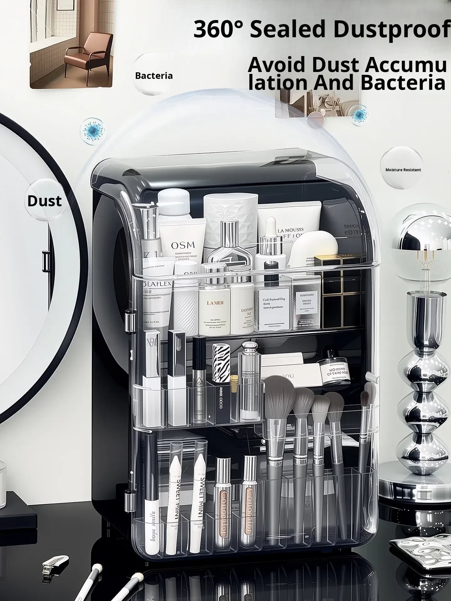 Elegant Cosmetic Organizer Box - Large Capacity Skincare Storage with Dustproof Design for Makeup Vanity and Face Mask Organization. Perfect for a Stylish and Tidy Space!
