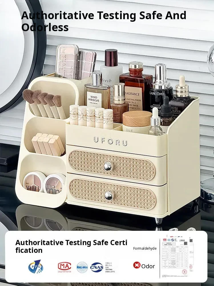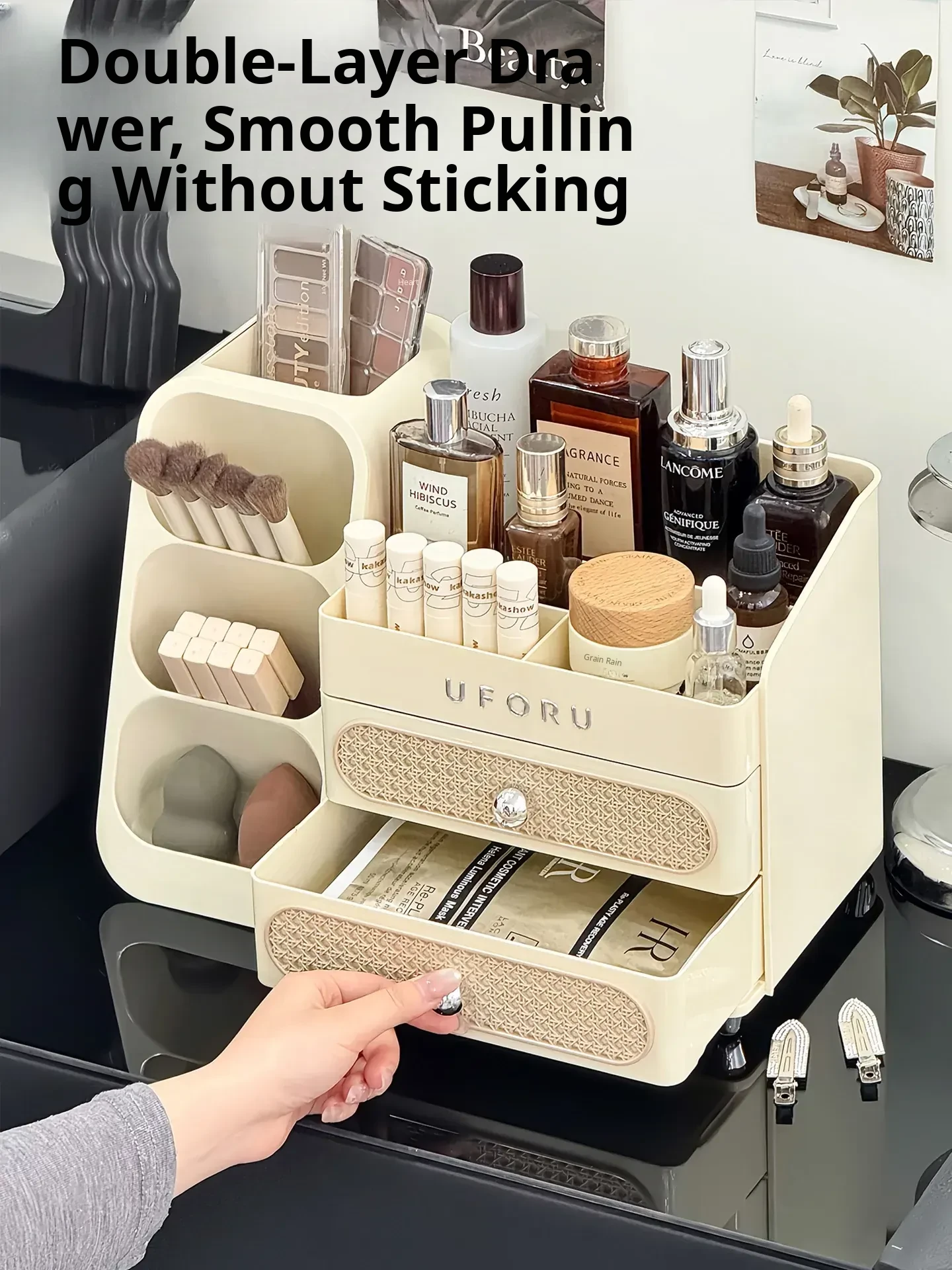 Elegant Desktop Makeup Organizer - Chic Vanity Storage for Perfumes, Lipstick, and Makeup Brushes - Stylish and Functional Cosmetic Holder