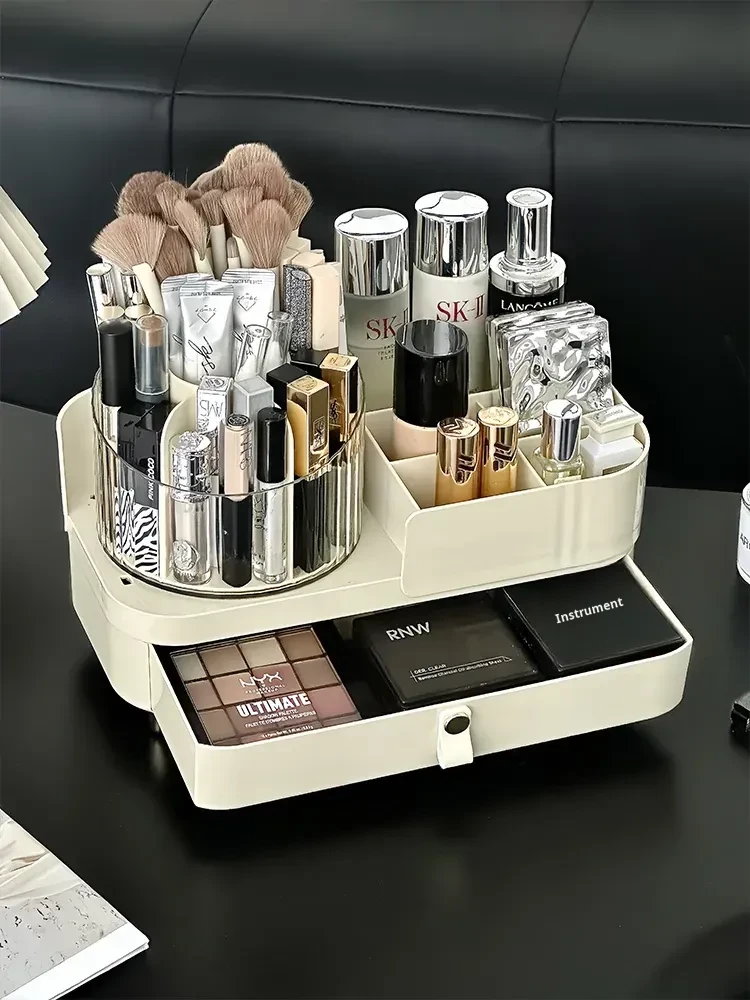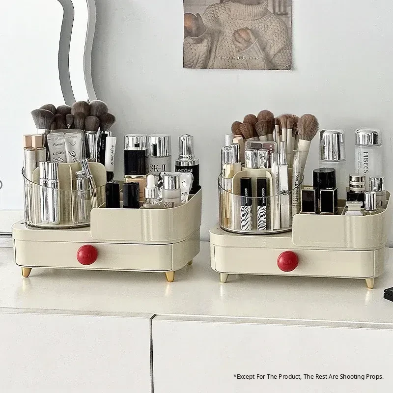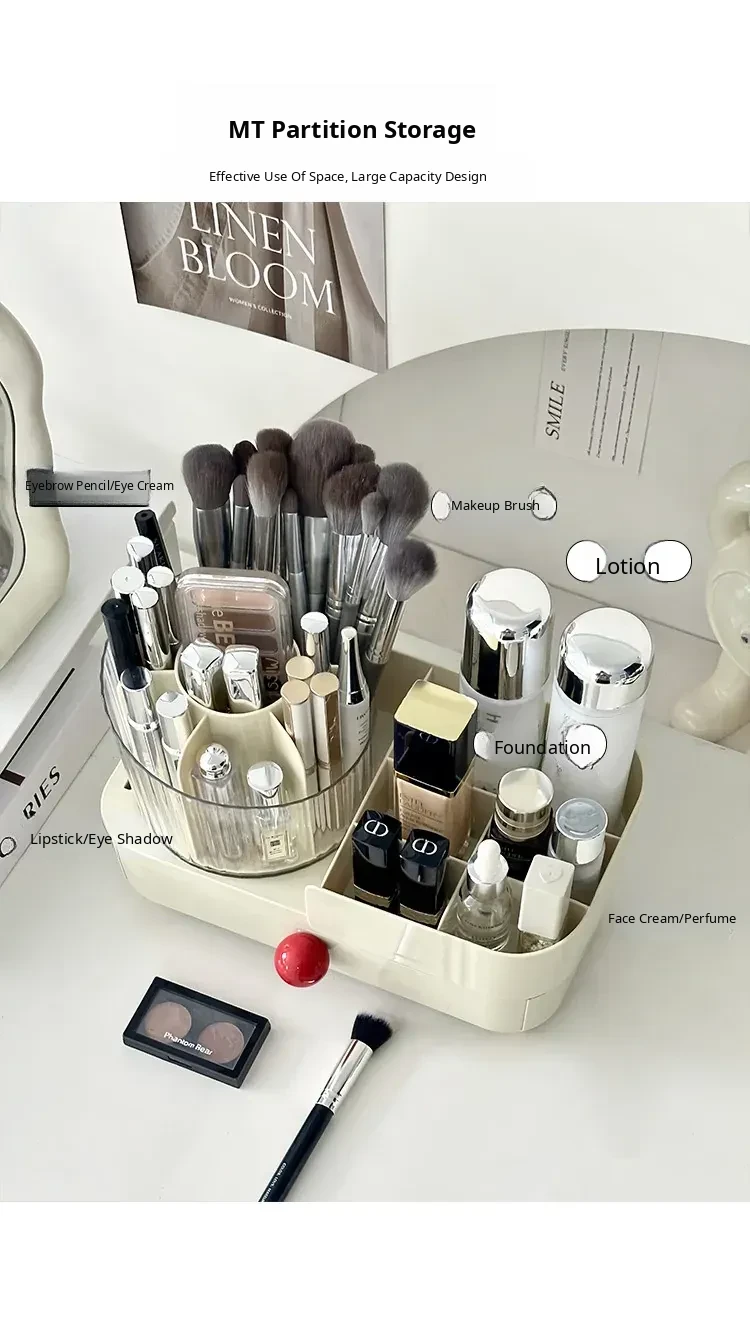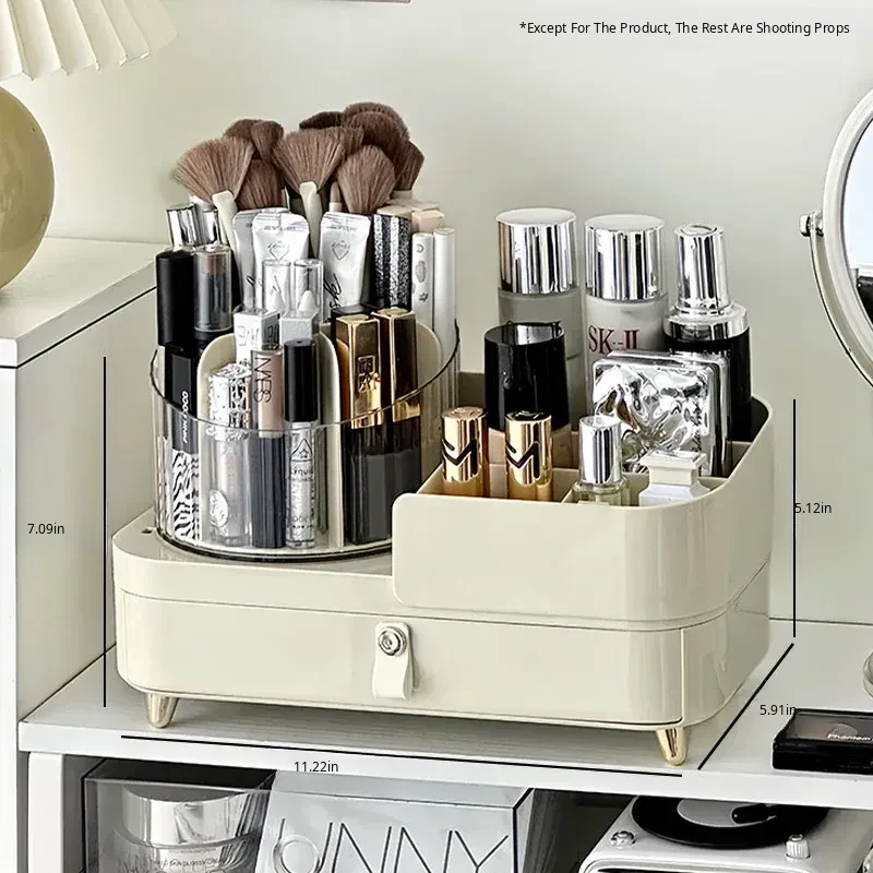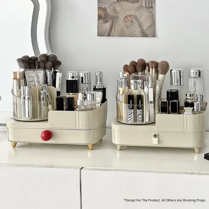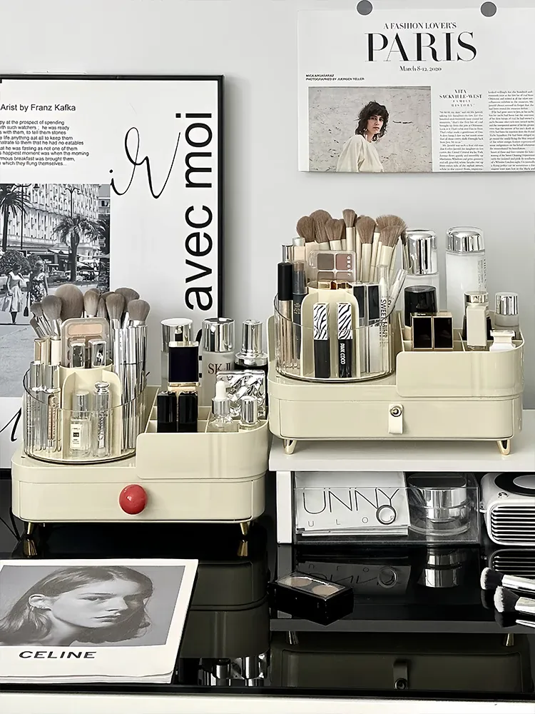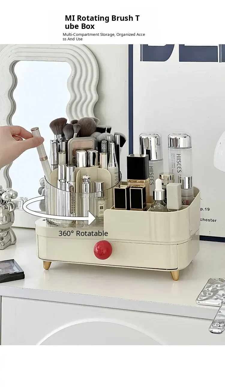 Elegant Rotating Makeup Organizer - Stylish Desktop Vanity Storage for Makeup Brushes, Eyebrow Pencils, Lipsticks, and Divided Compartments for Brushes and Accessories. Perfect for a Chic and Organized Beauty Space!