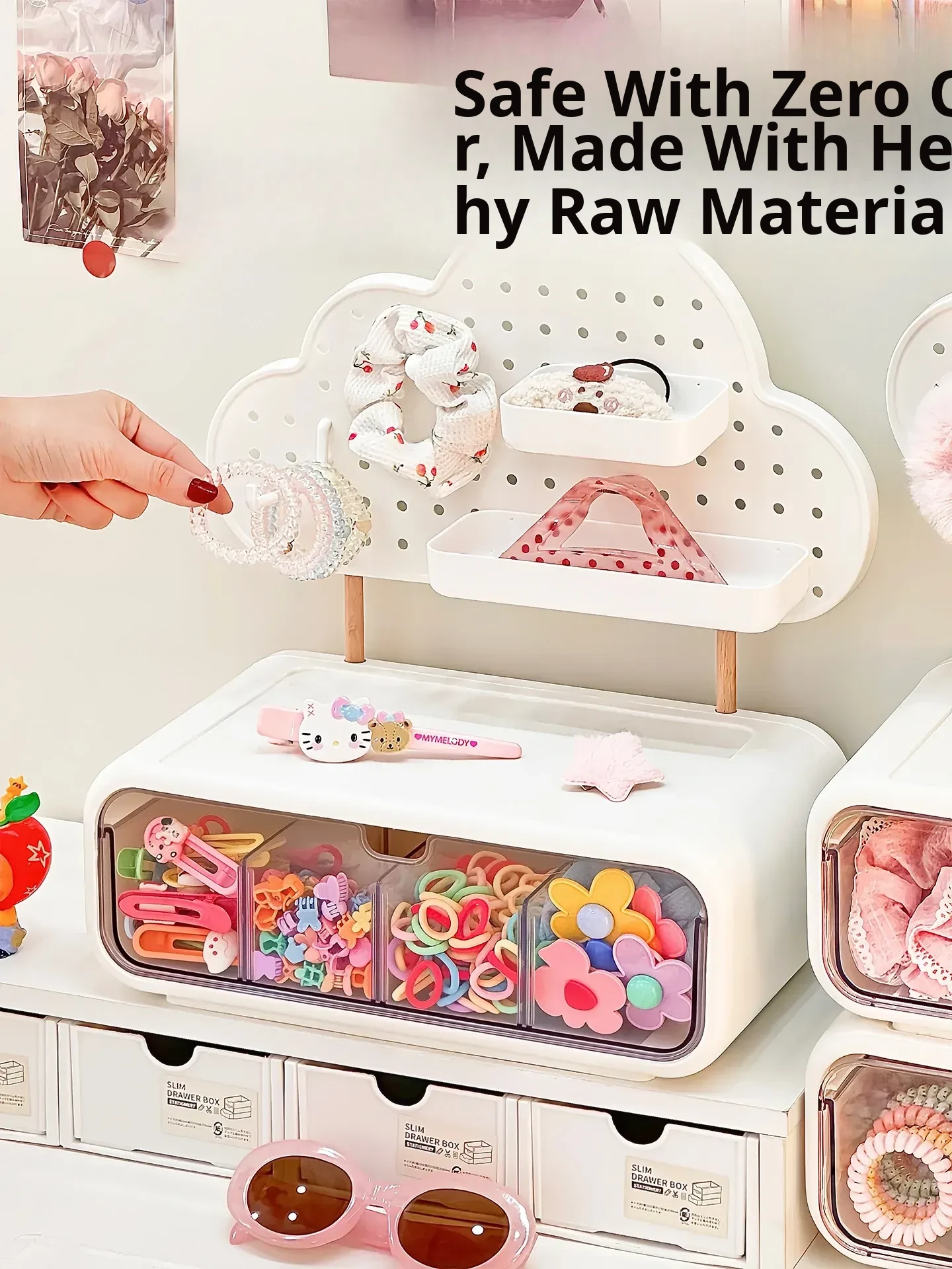 Girls' Hair Accessories Organizer Box - Drawer Style Storage for Hair Ties, Clips, and Elastics - Perfect for Kids and Young Girls - Divided Compartments for Easy Organization
