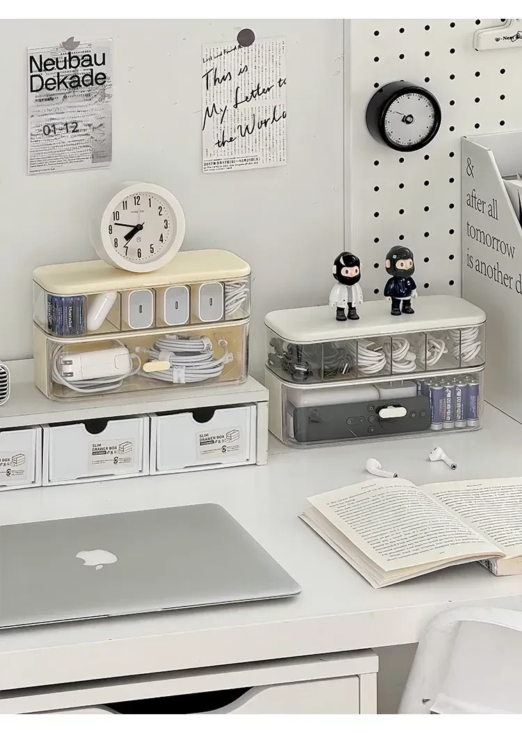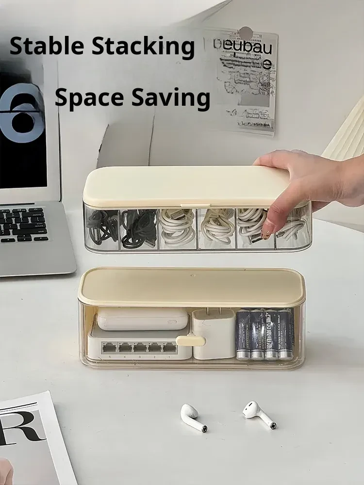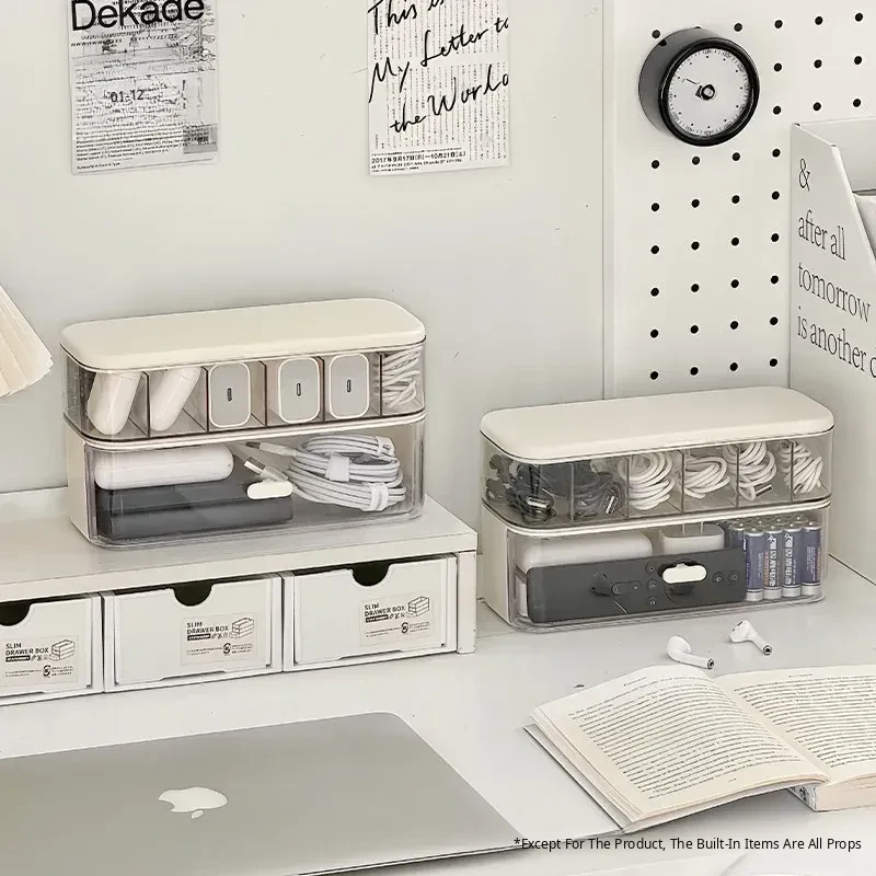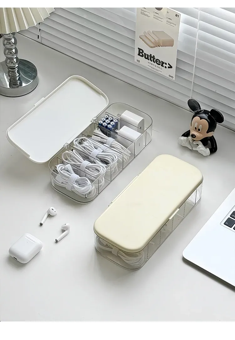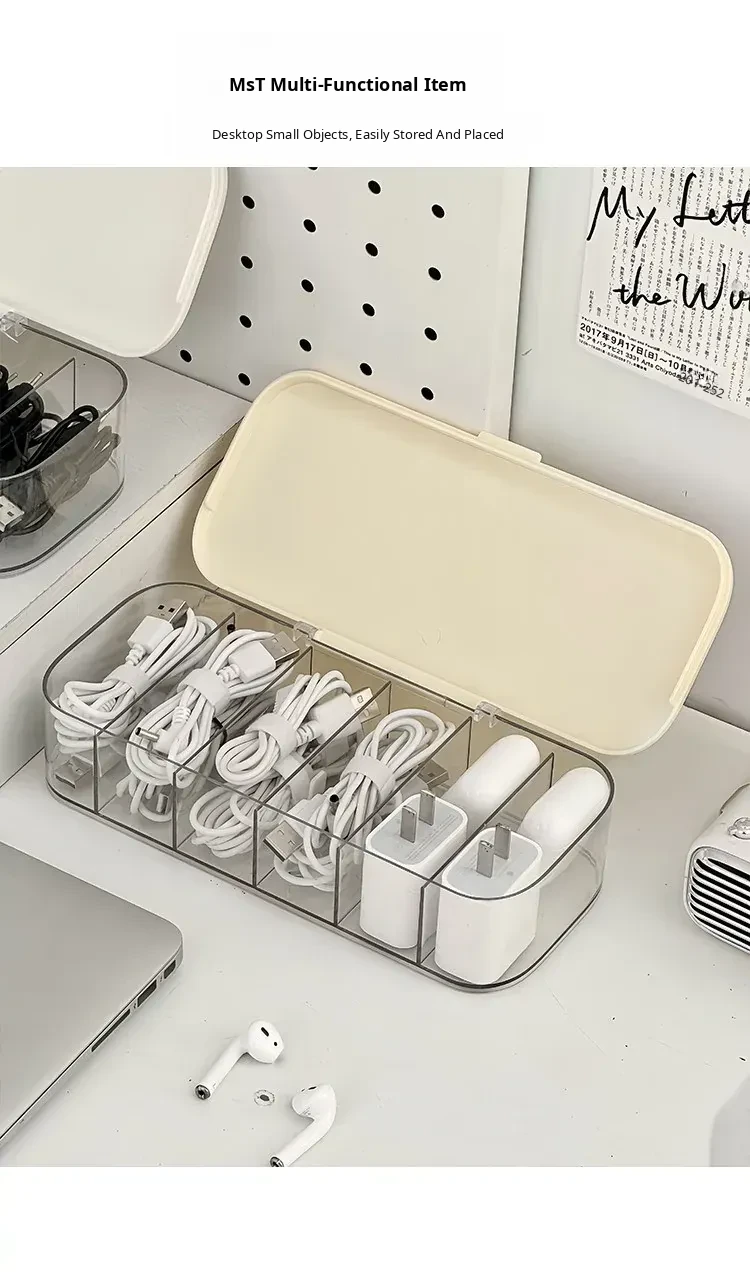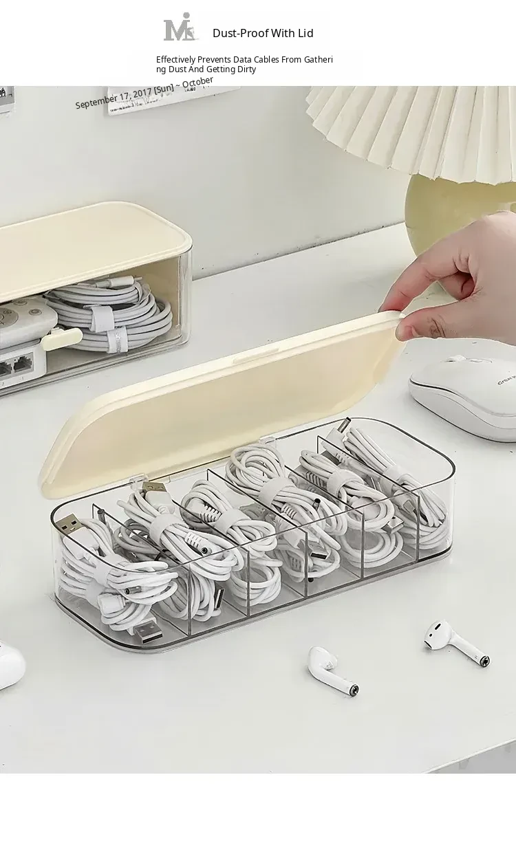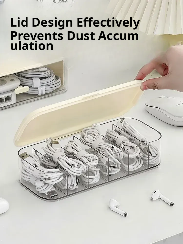 Large Capacity Desktop Cable Organizer Box with Lid - Dustproof Charger and Phone Power Line Storage Solution, Perfect for Tidy Up Your Workspace!