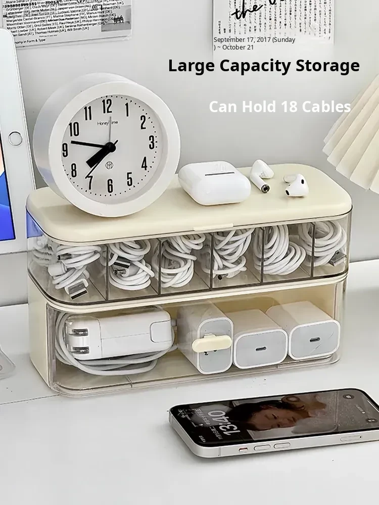 ❤️Double-Layer Large Capacity Can Store 18 Data Cables❤️