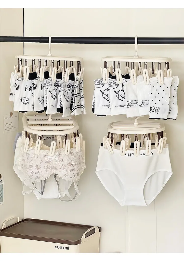 Multi-Clip Sock Drying Rack - The Ultimate Space-Saving Solution for Socks and Underwear Drying in Student Dorms and Balconies! Perfect for Organizing and Air-Drying Your Laundry.
