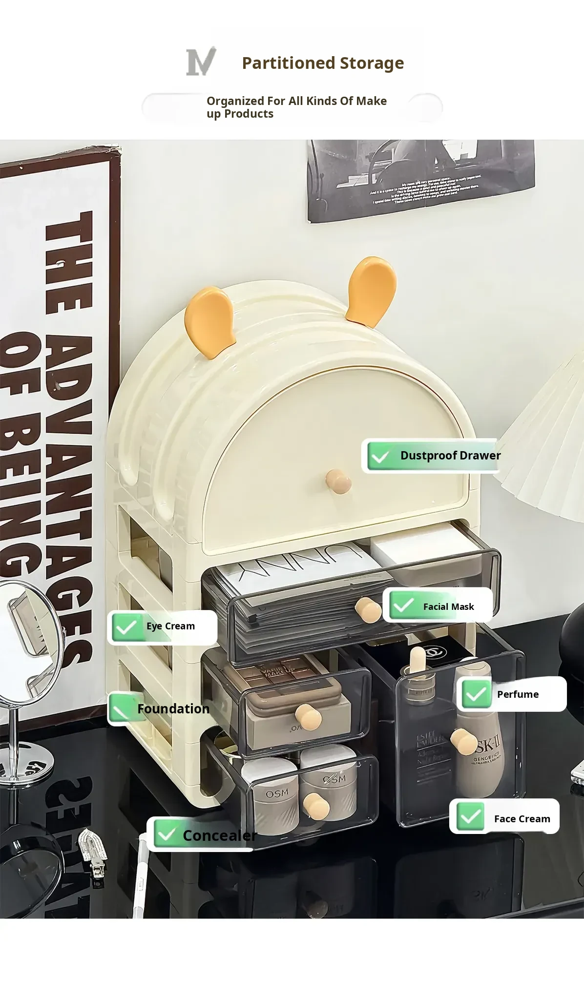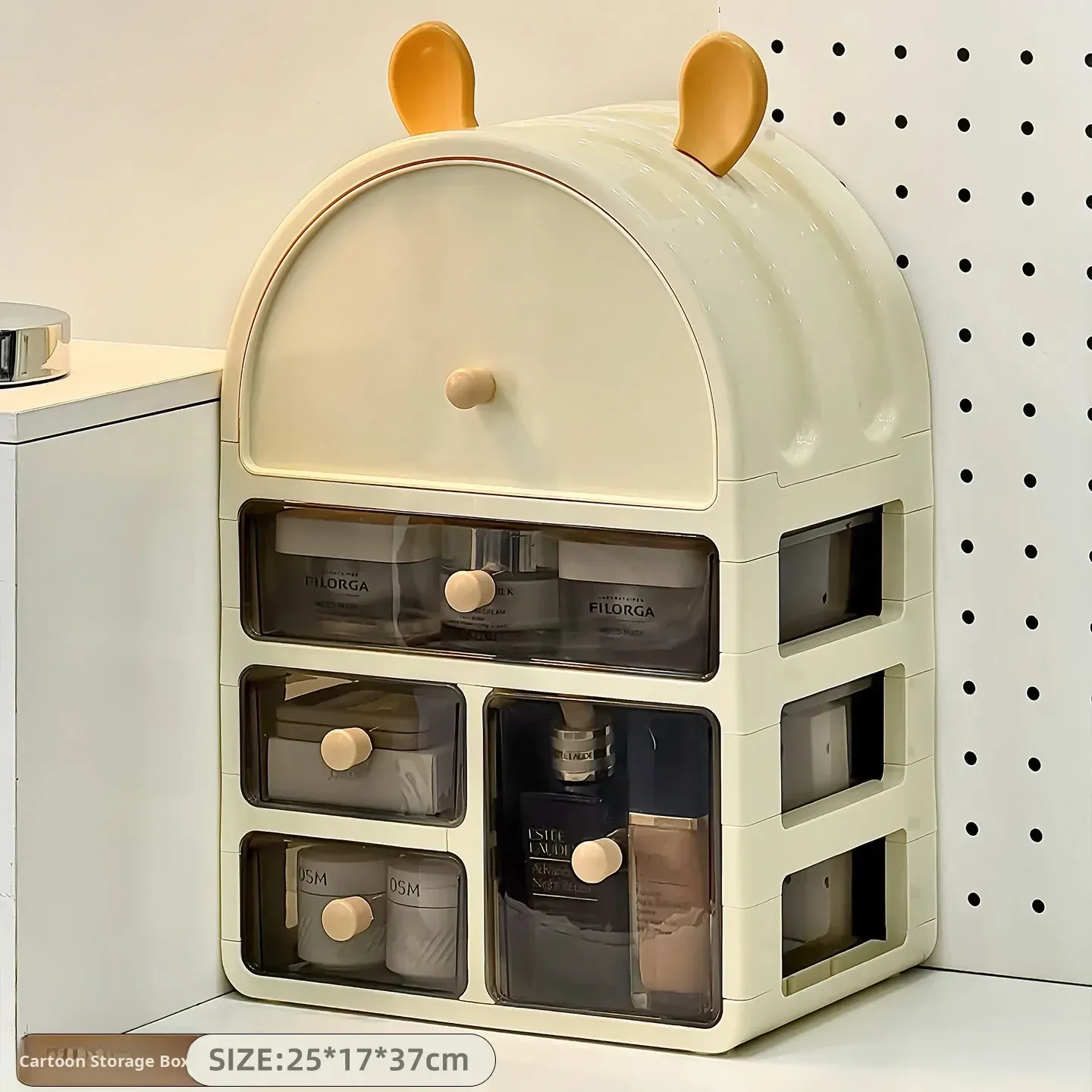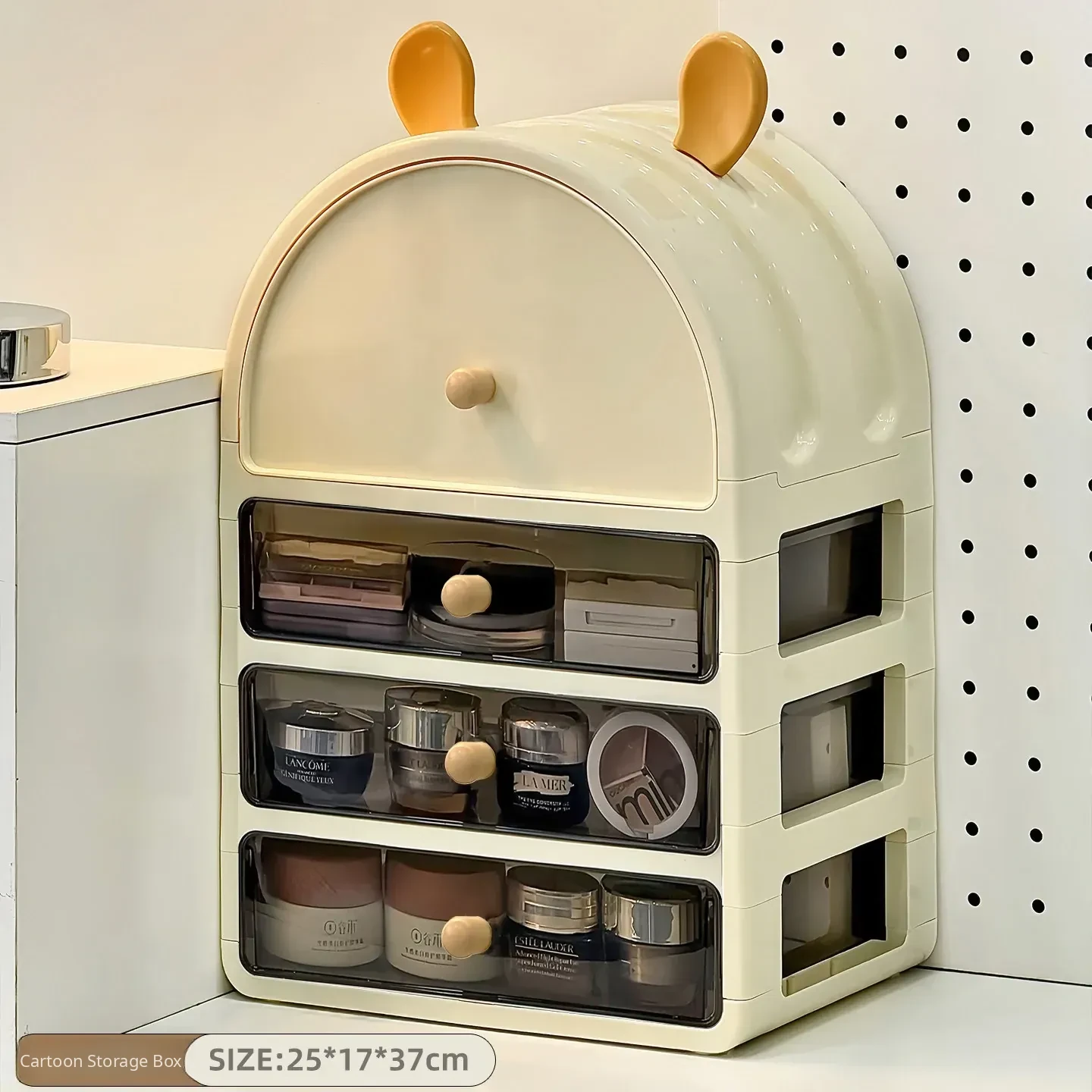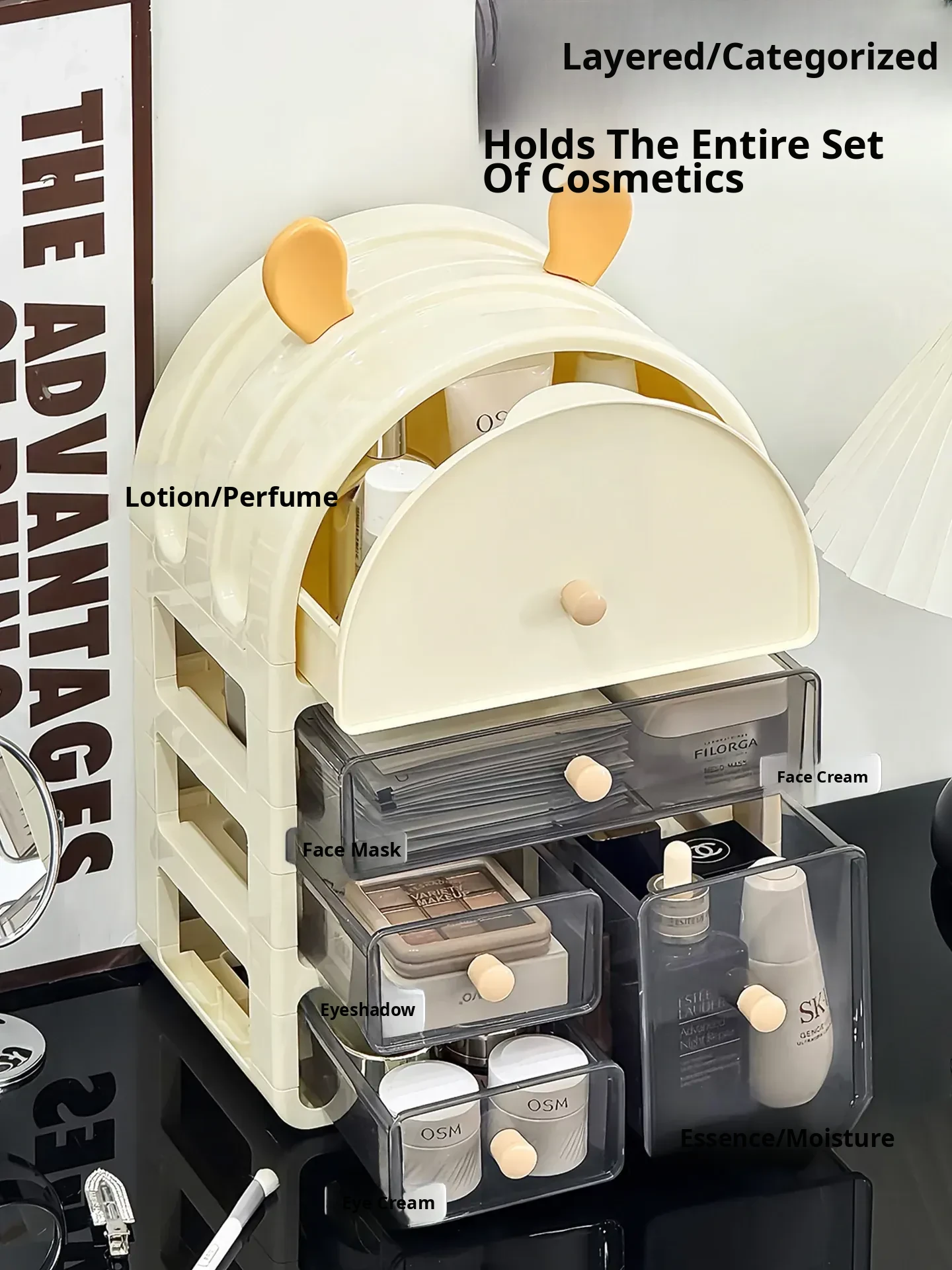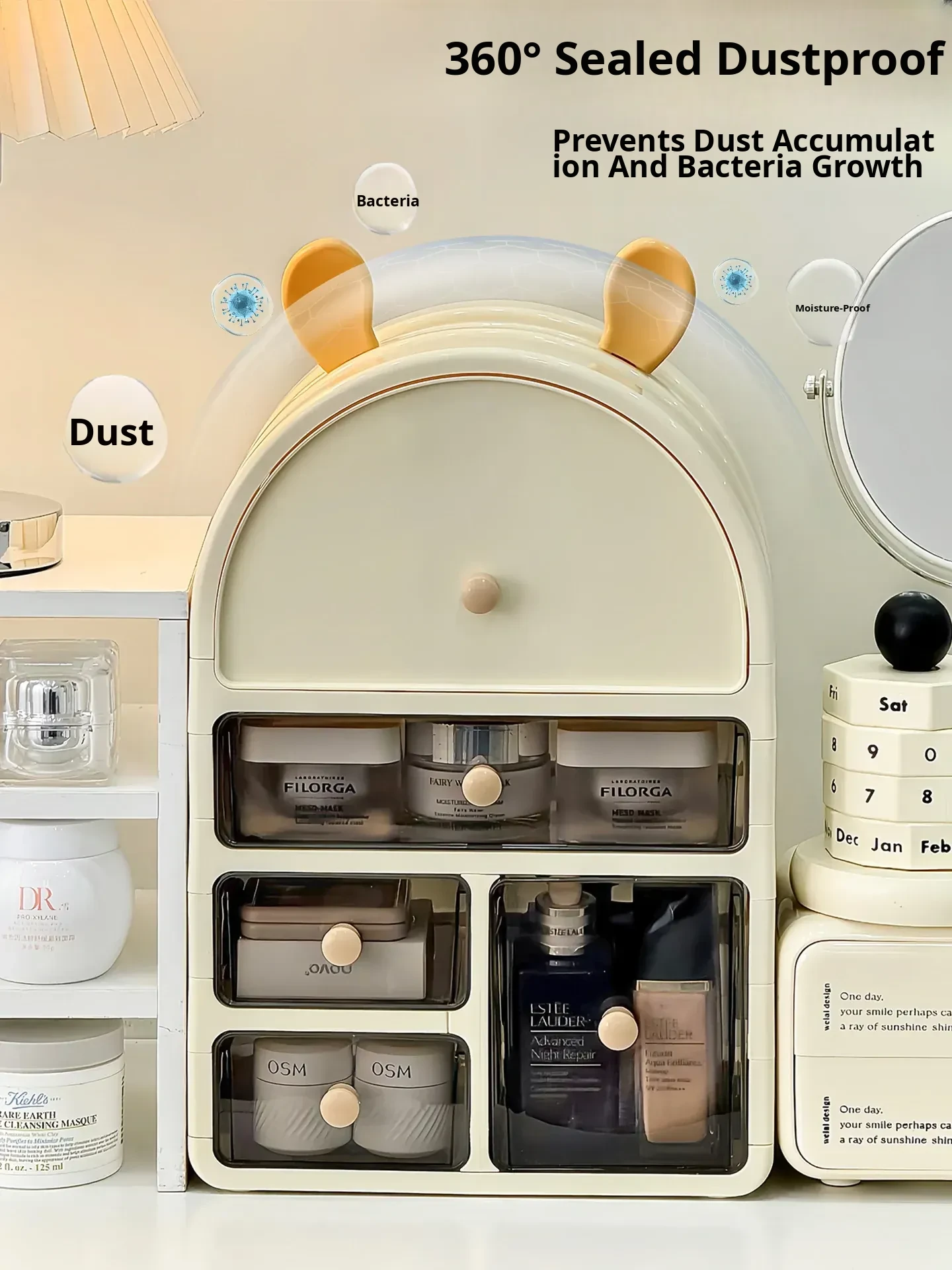 Stylish Desktop Cosmetic Organizer - Dustproof Skincare Storage Rack with Large Capacity for Makeup, Masks, and Perfume - Perfect for Your Vanity Setup!