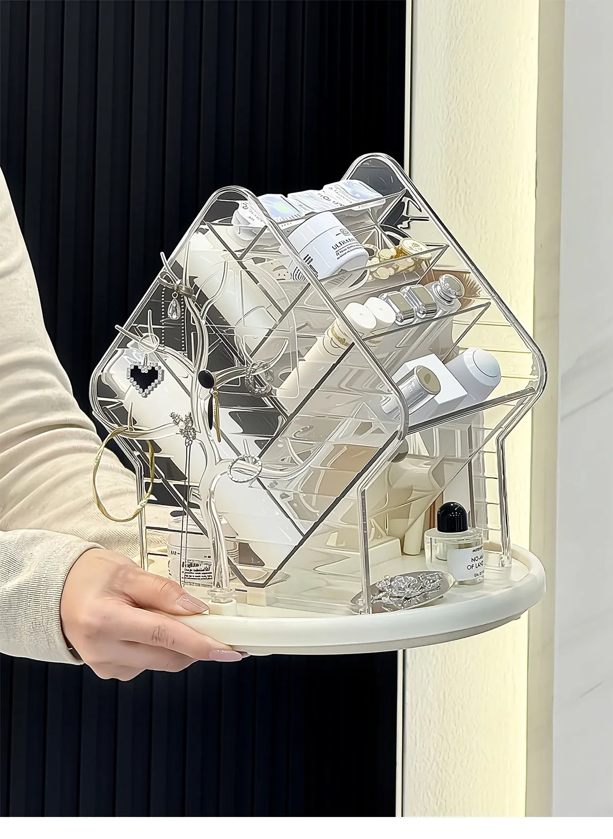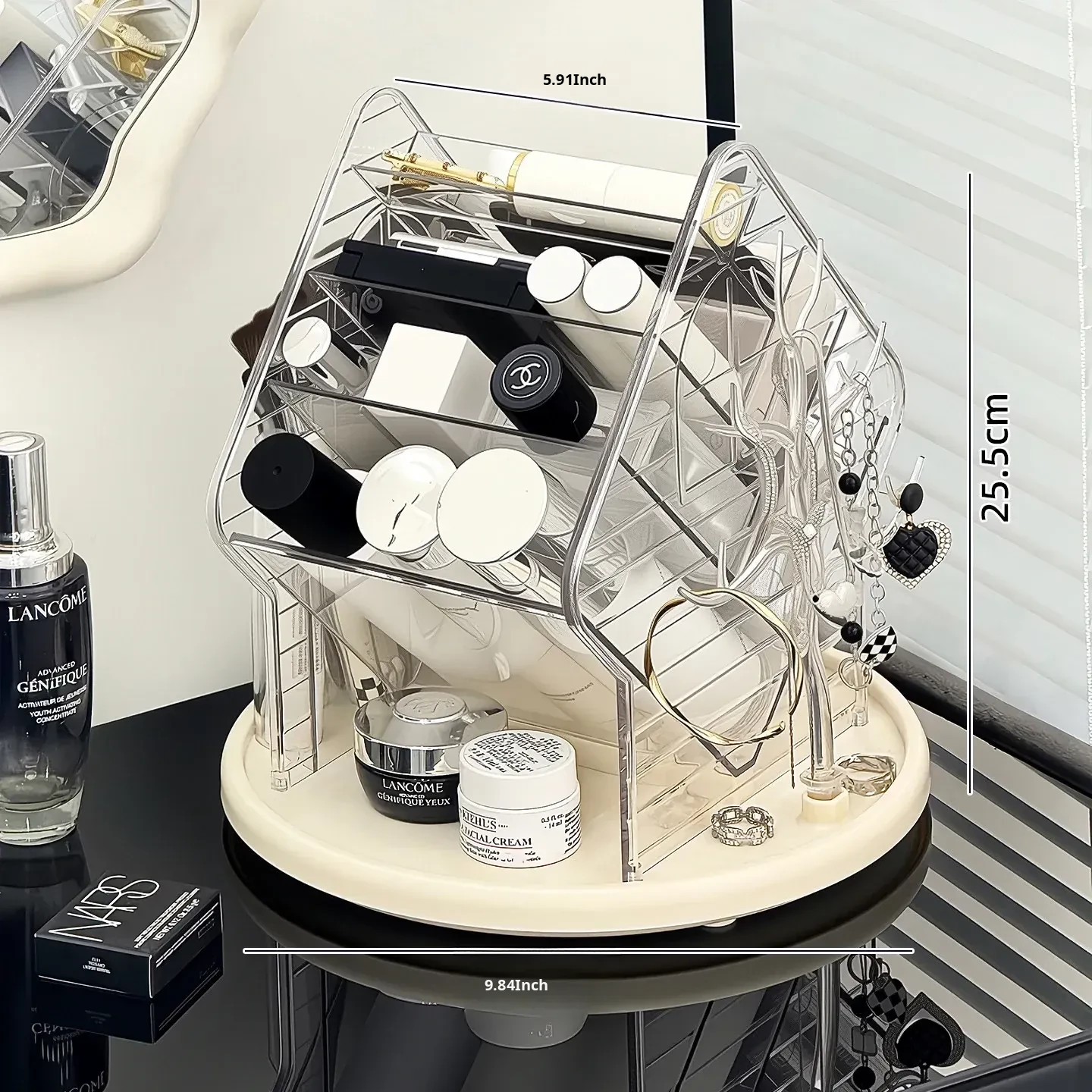 Transparent Rotating Makeup Organizer – Stylish Skincare and Cosmetic Storage Rack for Vanity, Perfect for Lipstick, Perfume, Jewelry, and More! Keep Your Essentials Neatly Organized!