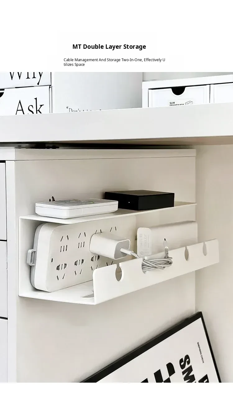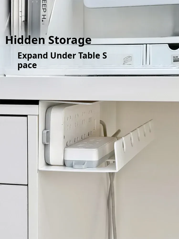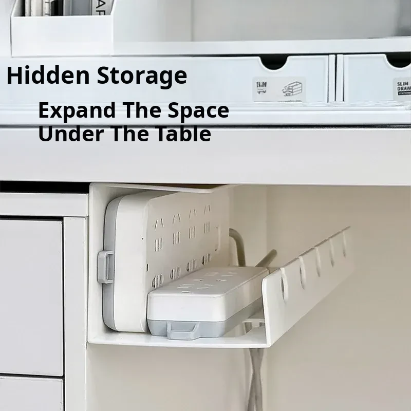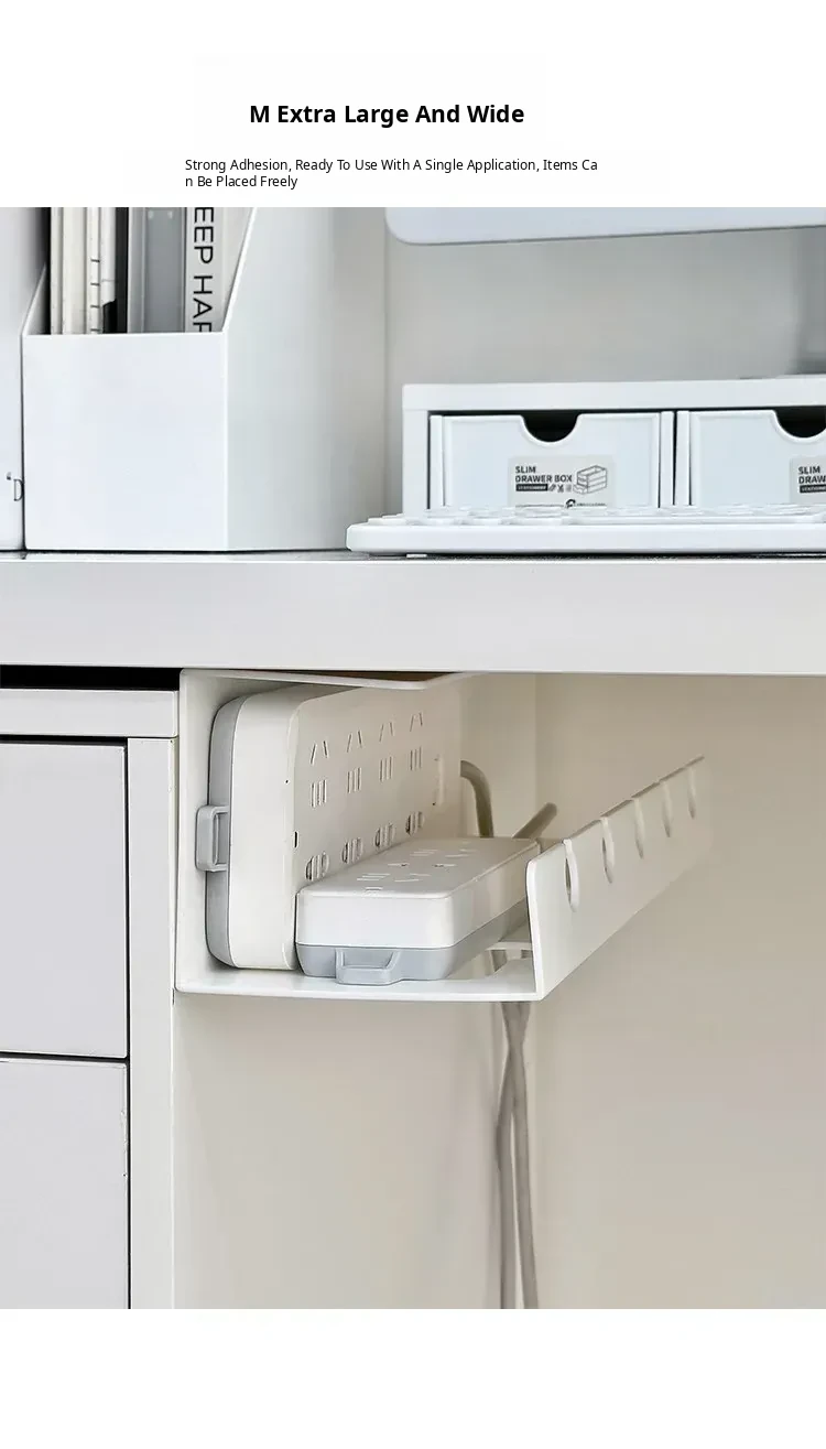 Under-Desk Cable Management Organizer with Power Strip Holder - No Drill Cable Storage Solution for Office Desks and Computer Workstations, Keep Your Space Tidy and Clutter-Free!