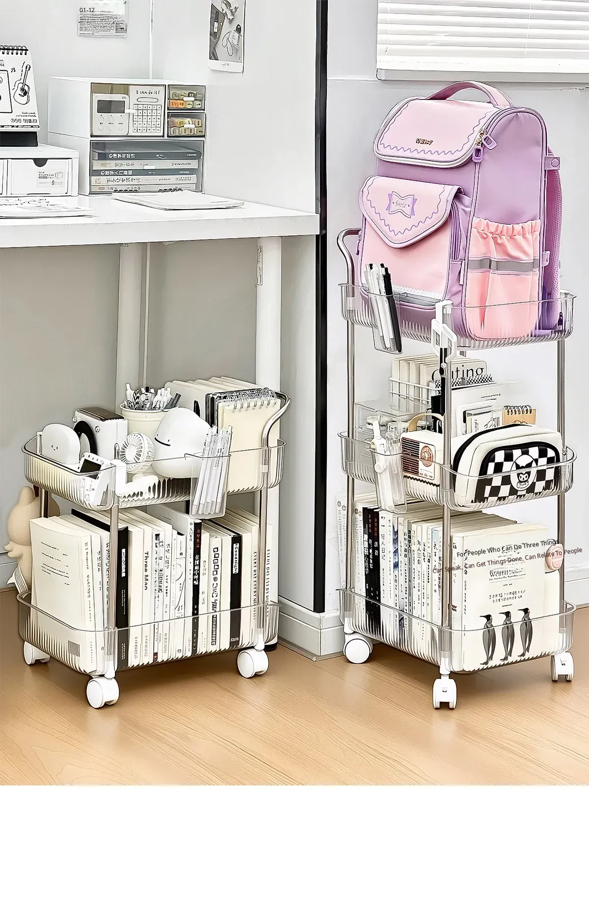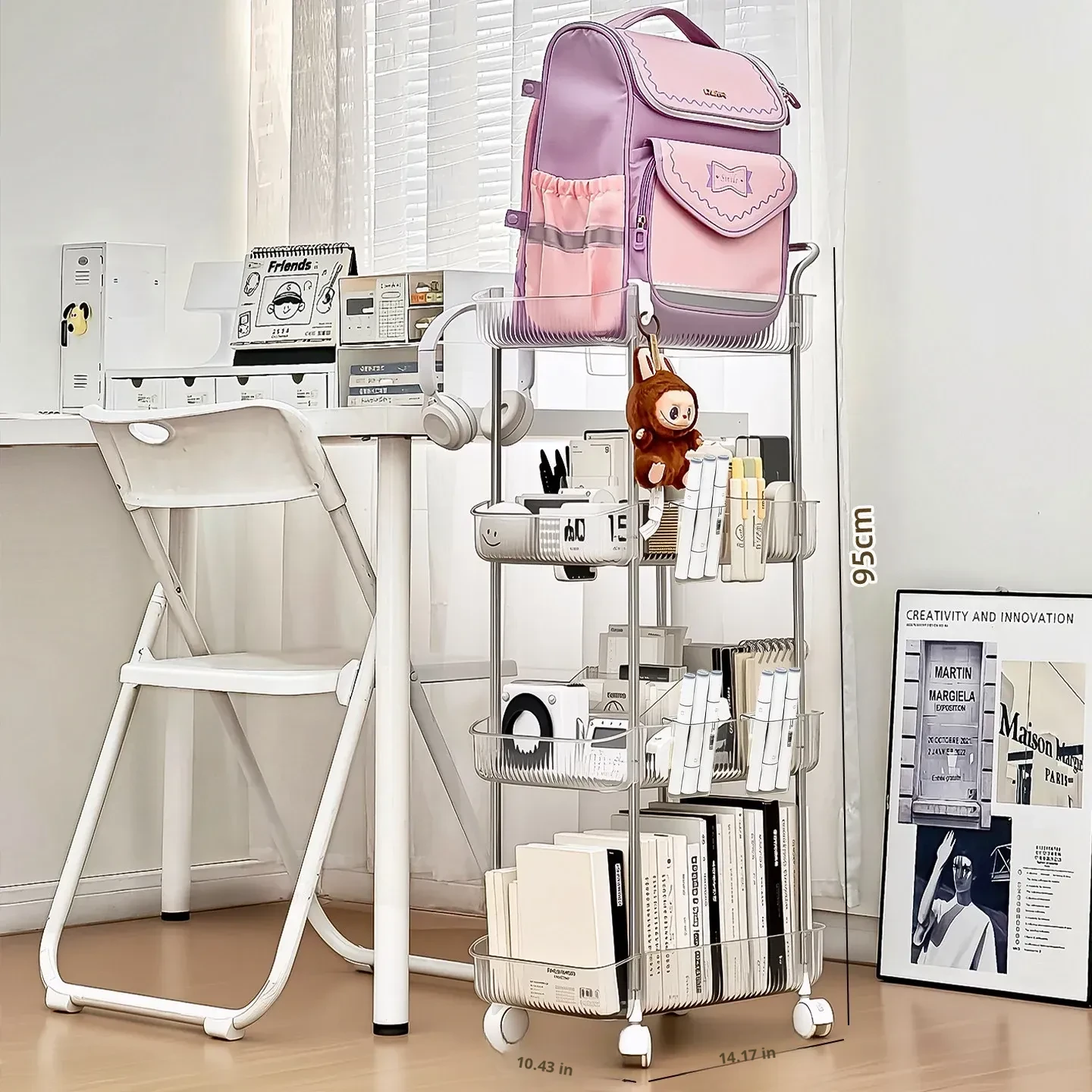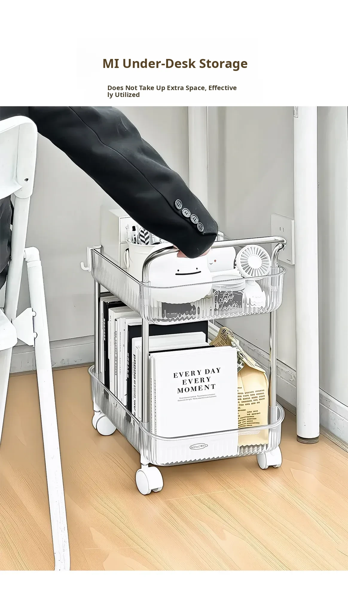 Under-Desk Storage Rack - Mobile Office Organizer with Multi-Tier Shelves for Stationery and Books - Versatile Trolley for Clutter-Free Workspaces