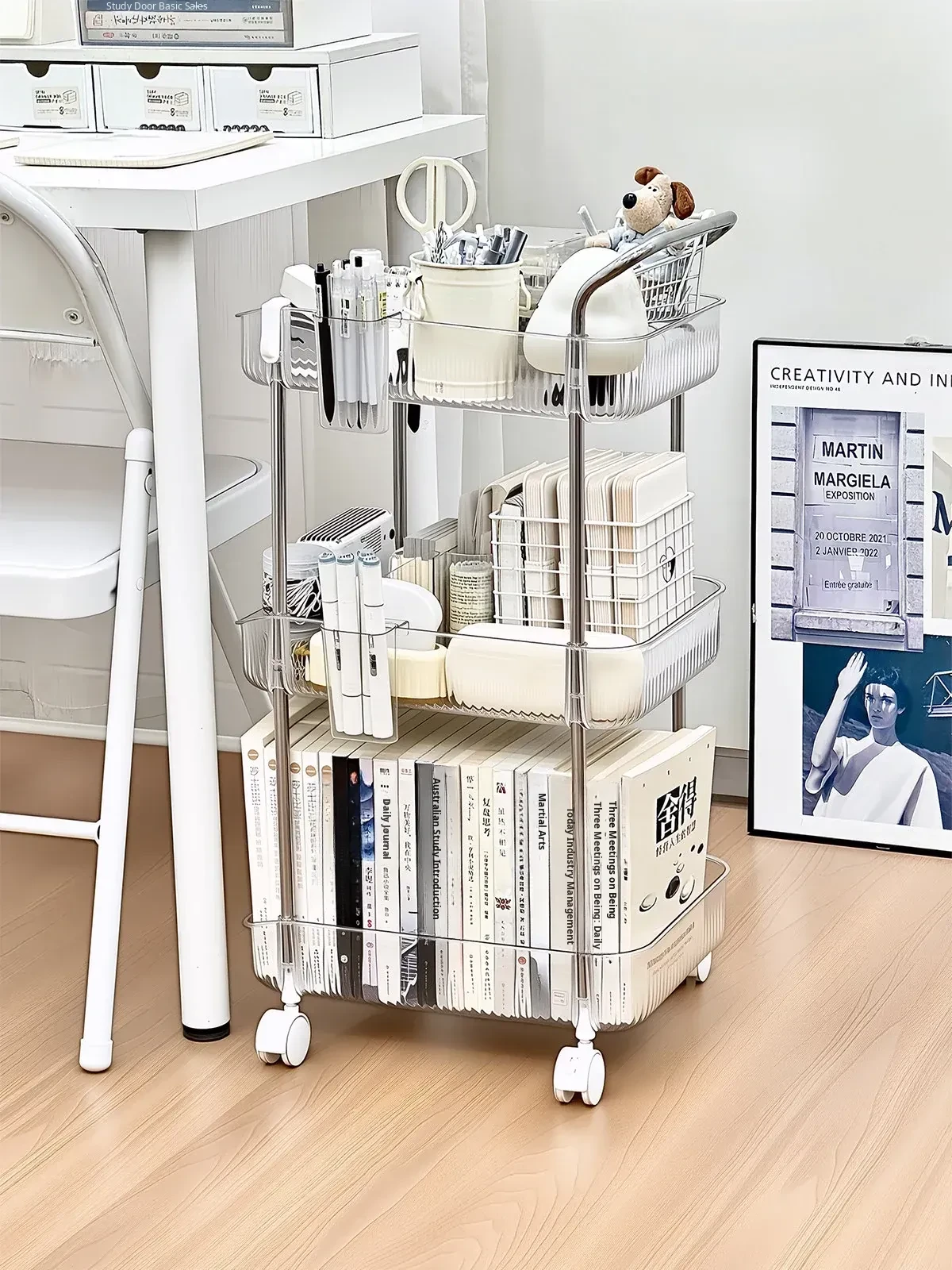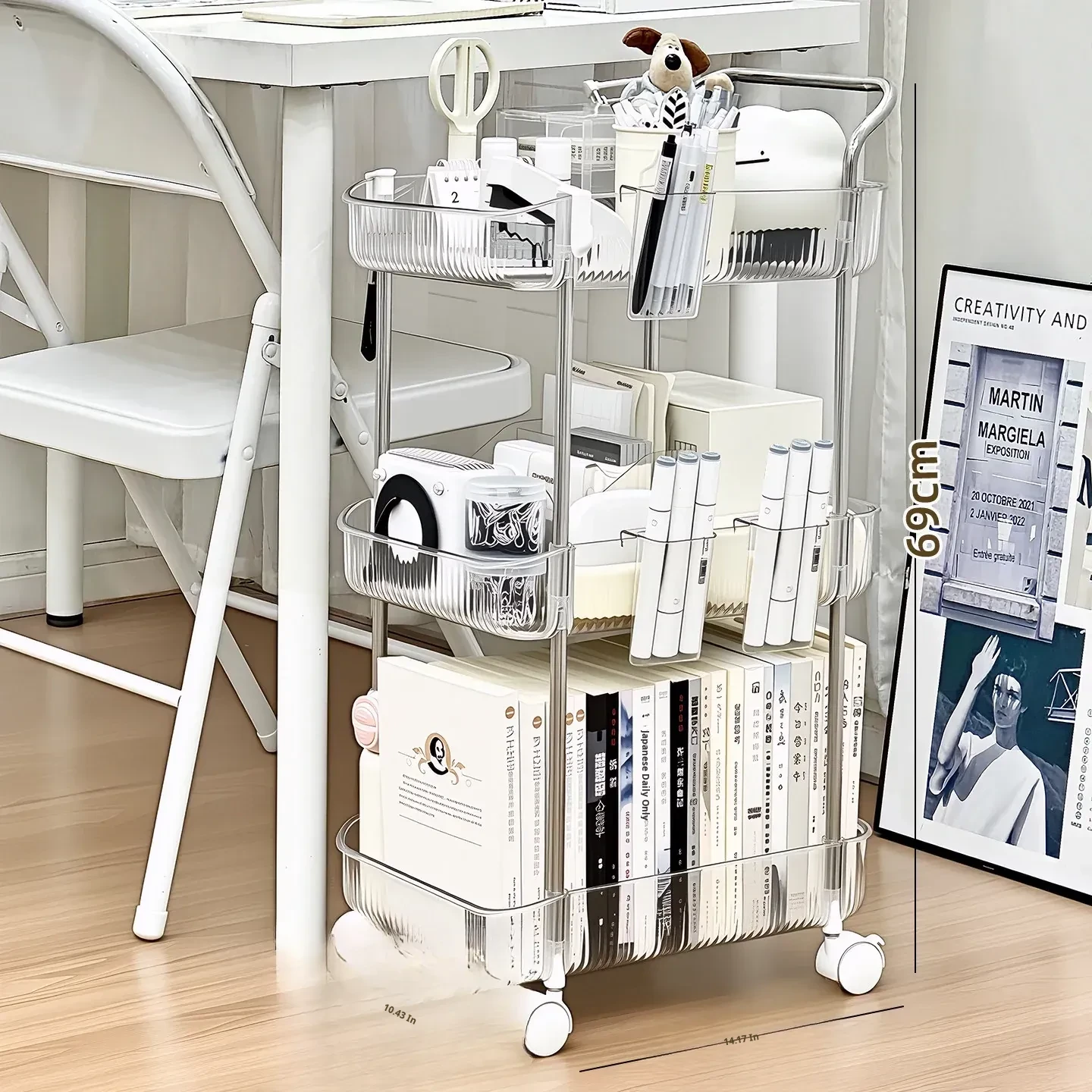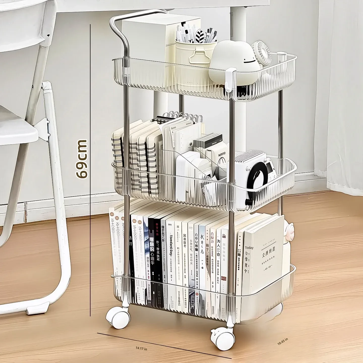 Under-Desk Storage Rack - Mobile Office Organizer with Multi-Tier Shelves for Stationery and Books - Versatile Trolley for Clutter-Free Workspaces