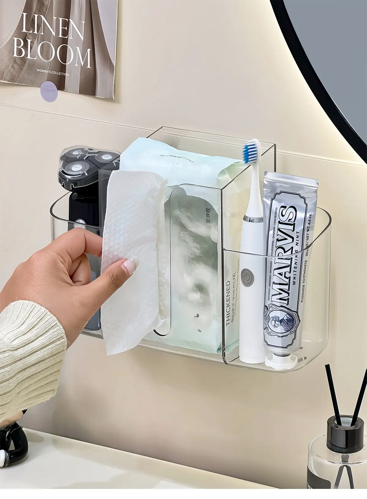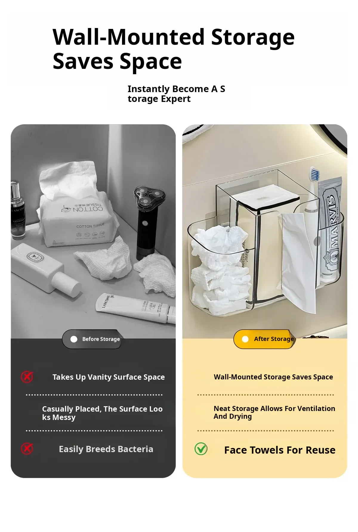 Wall-Mounted Facial Tissue Storage Box – 2-in-1 Organizer for Reusing Waste Facial Tissue Boxes – Perfect for Bathroom & Space-Saving Solutions!