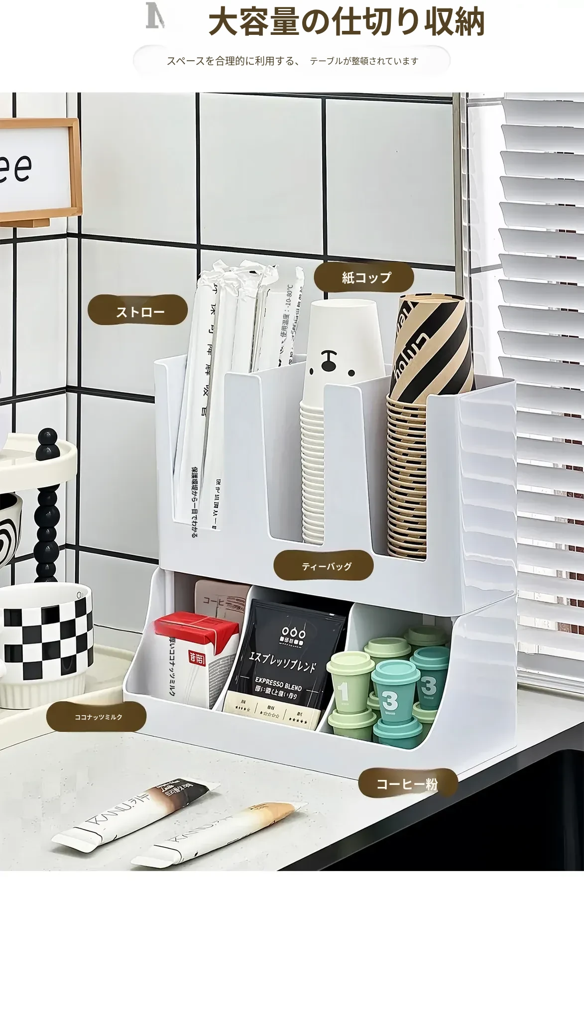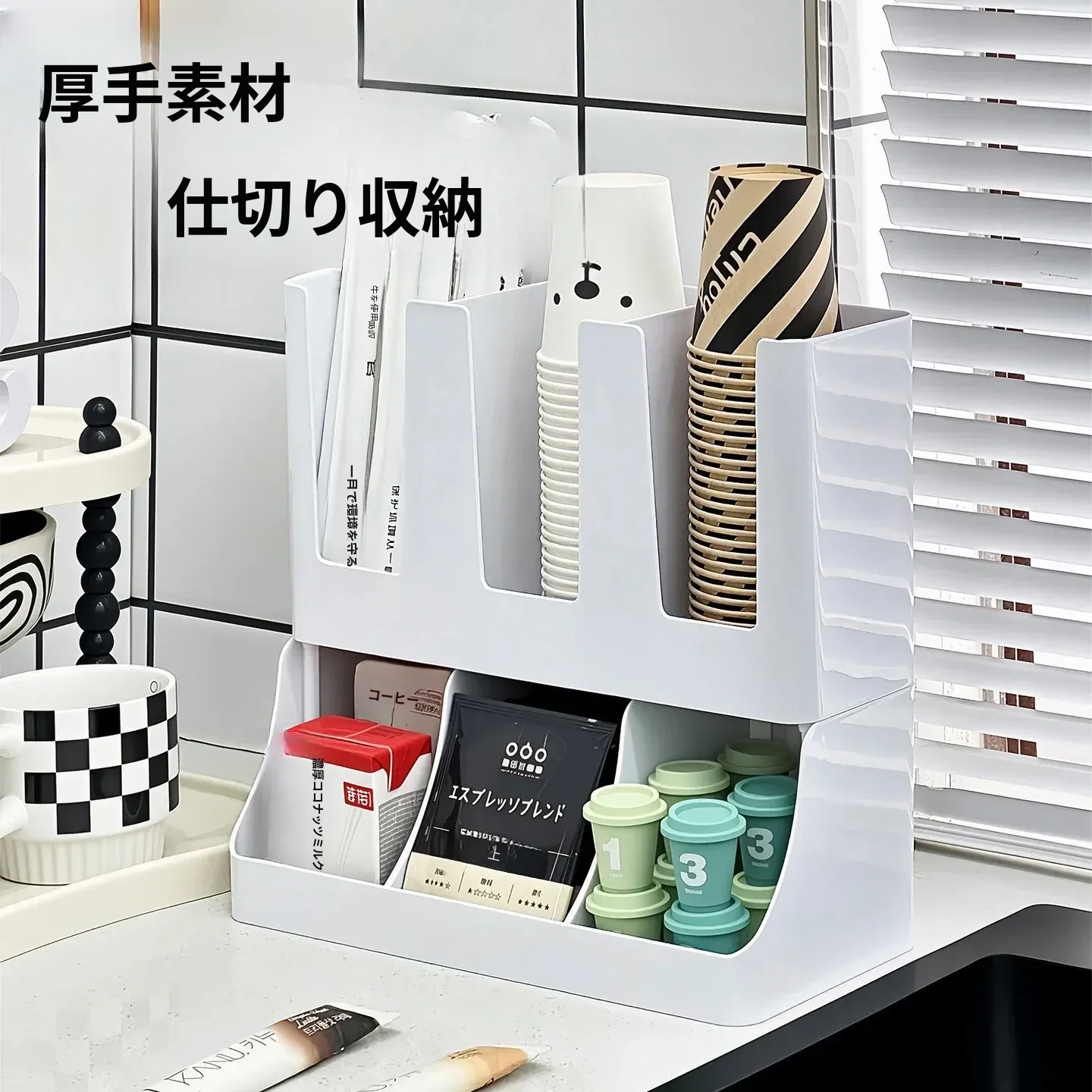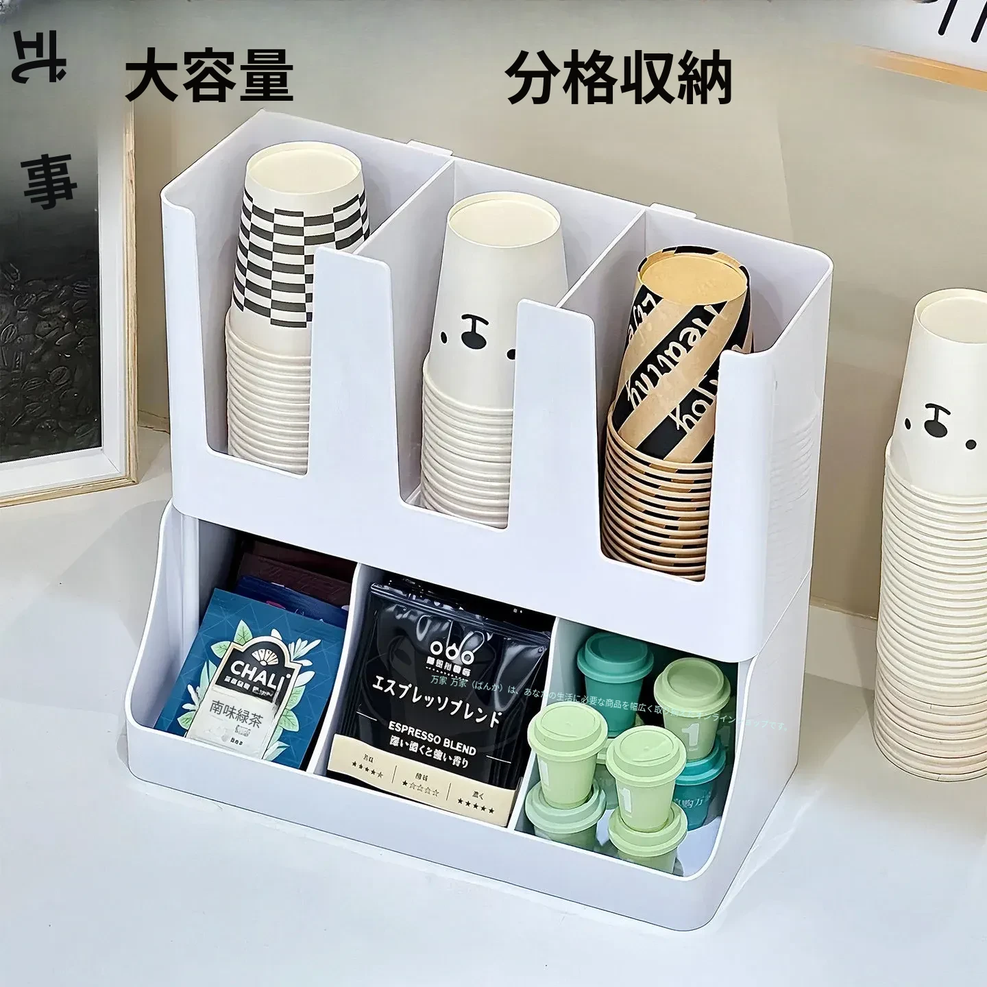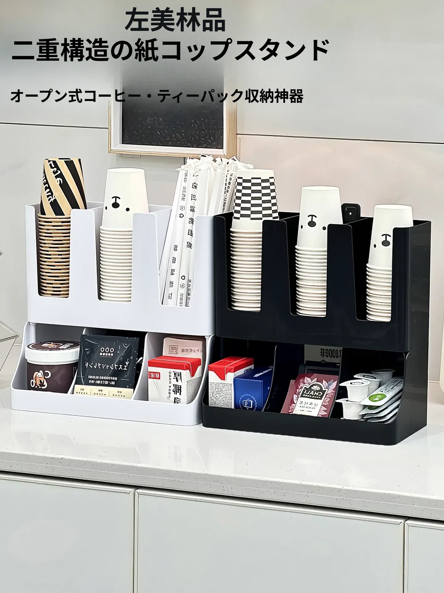 2026年新作!おしゃれなティーバッグ収納ボックス&使い捨てカップホルダー付きカプセルコーヒーおやつスタンド!バーやテーブルにぴったりの収納ボックスで、スッキリとした空間を演出します!