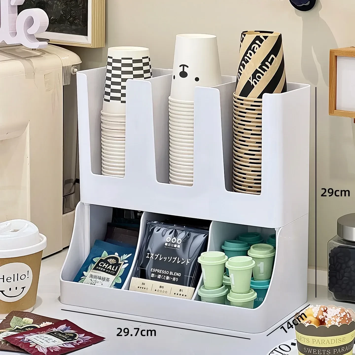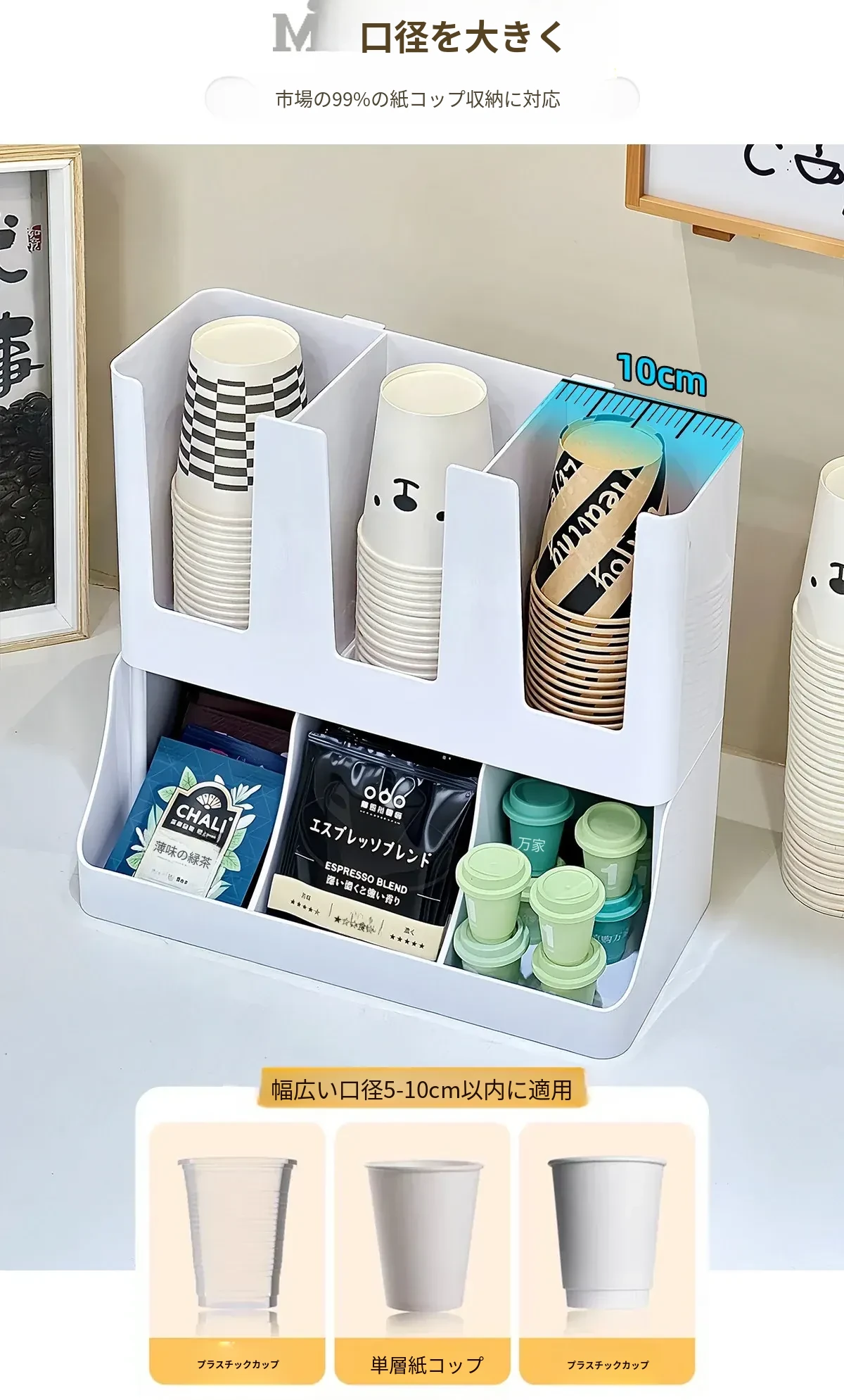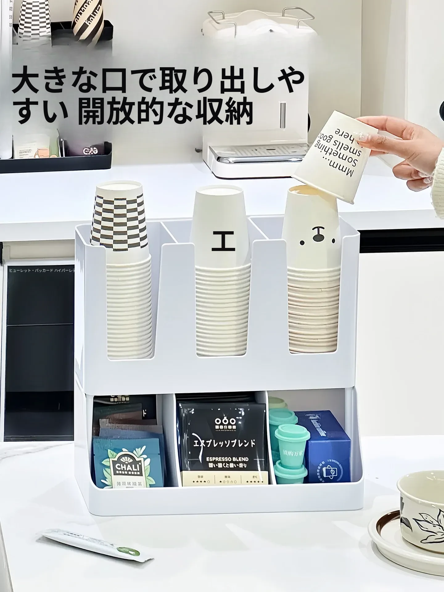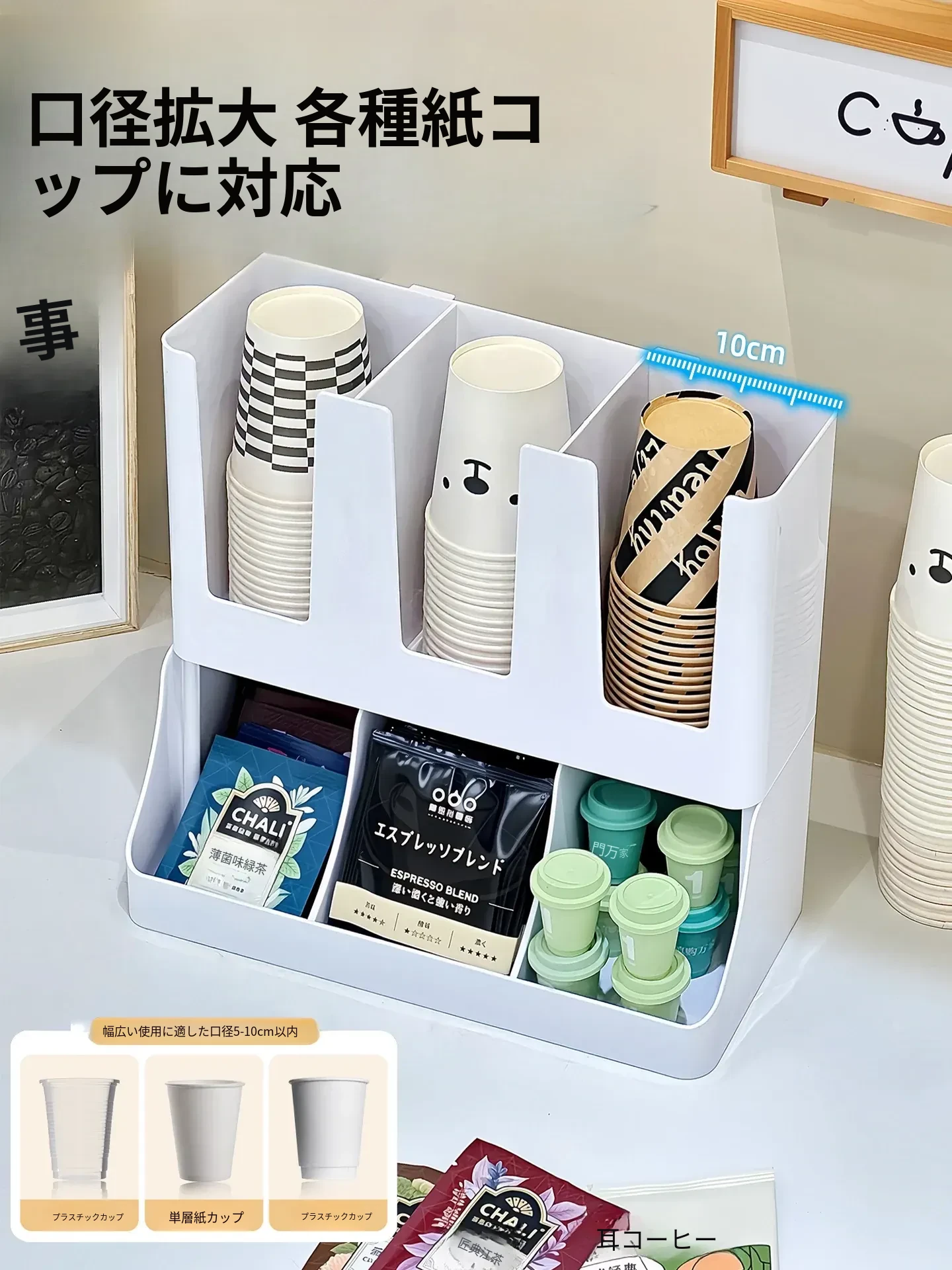 2026年新作!おしゃれなティーバッグ収納ボックス&使い捨てカップホルダー付きカプセルコーヒーおやつスタンド!バーやテーブルにぴったりの収納ボックスで、スッキリとした空間を演出します!