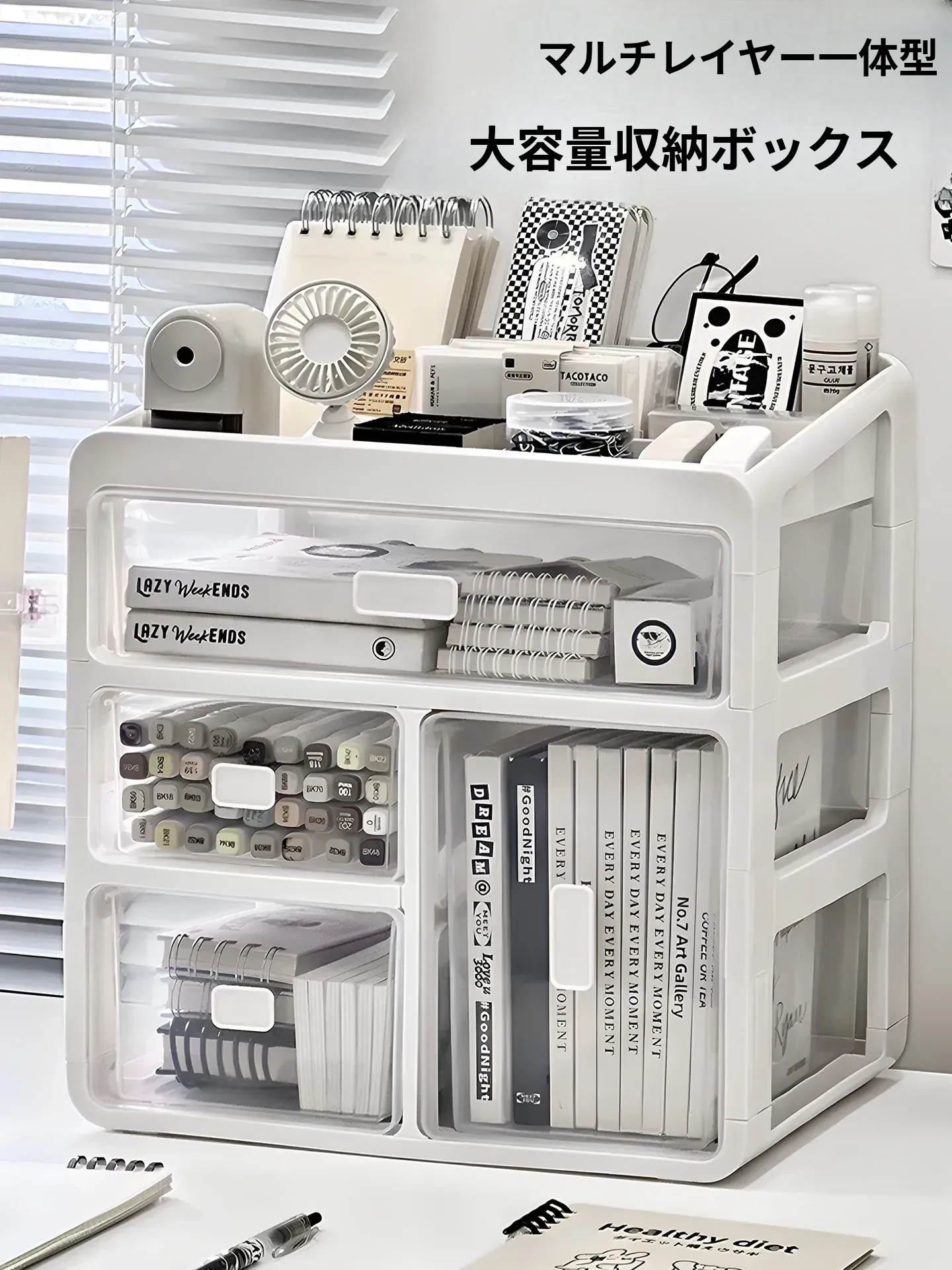 デスク収納ボックス 引き出し式 大容量 文房具・雑貨整理 アクリル製 オフィス・学生向け 机上整理ラック 使いやすさ抜群!おしゃれで機能的な収納で、作業スペースをスッキリ整理!
