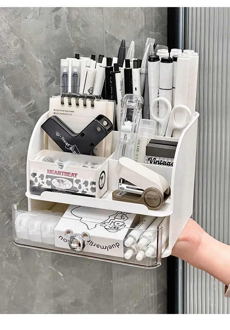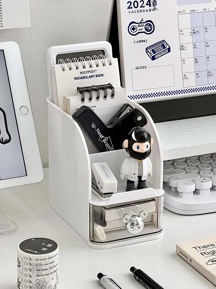 アクリル製デスク収納ボックス - 学生寮に最適な多機能文具整理ボックス!デスク周りをスッキリ整頓し、使いやすさ抜群の収納アイテム。あなたの勉強空間をもっと快適に!