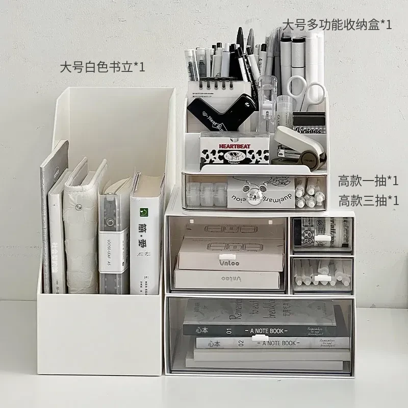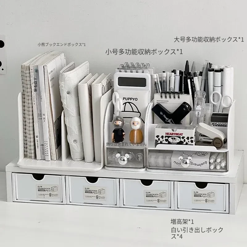 4点セット(引き出しペンスタンド + 収納ボックス + ブックエンド)