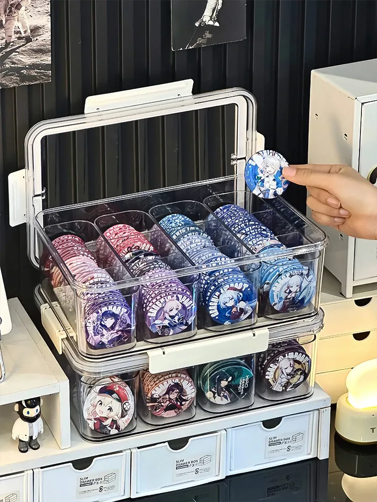 バジ収納ボックス アクリル透明カードケース 二次元カード整理ボックス デスクトップ防塵カード密封ボックス - 大切なカードをしっかり守る、スタイリッシュな収納!