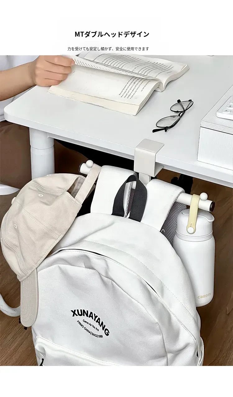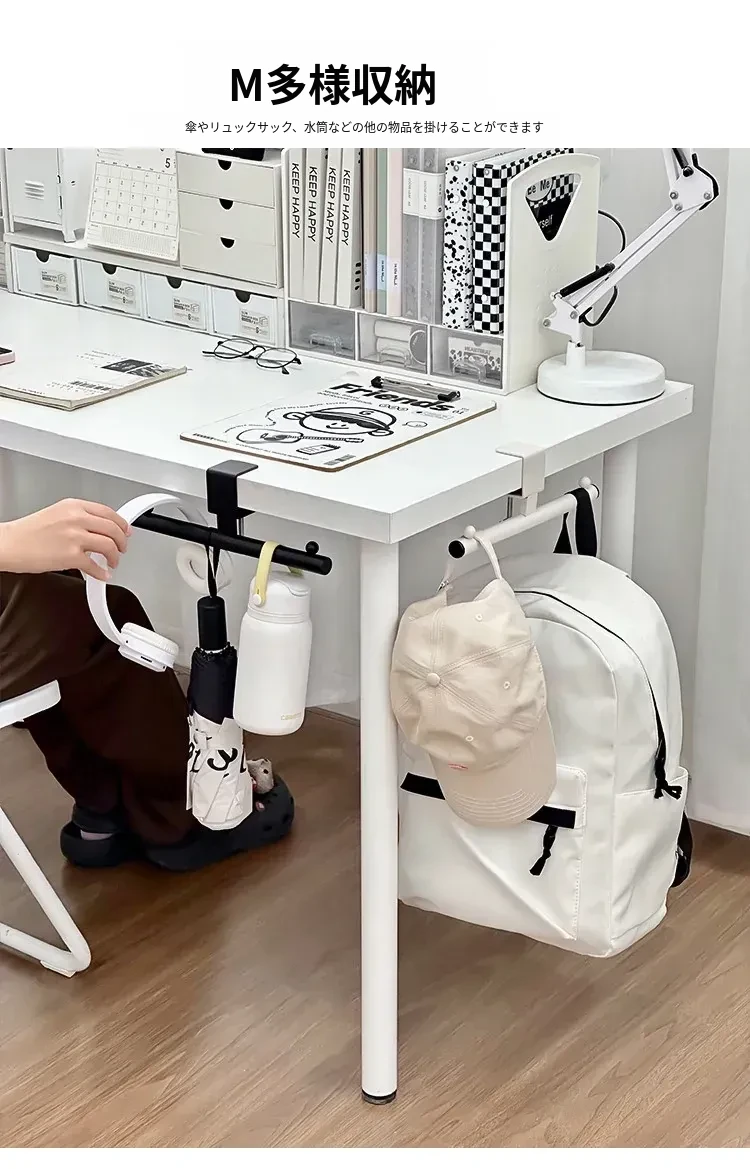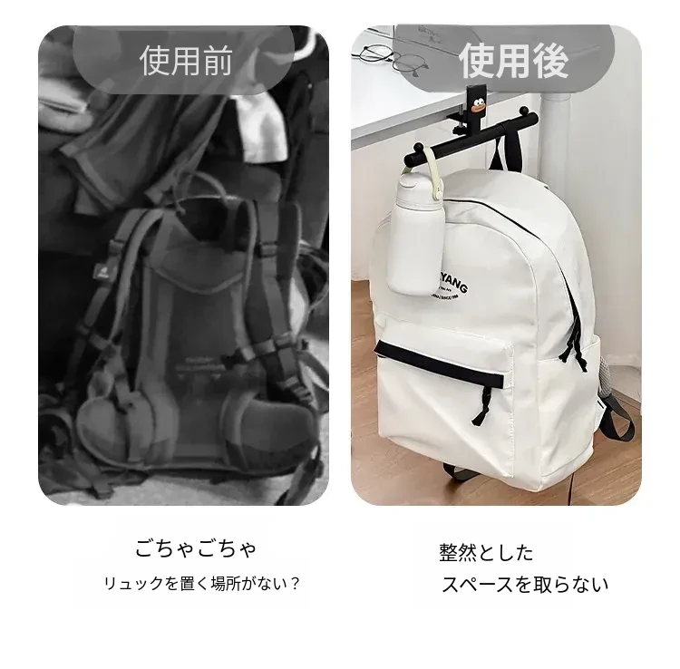 学生必見!穴あけ不要の書類収納ラック、教室デスク横のバッグ掛け神器!強力耐荷重&調整可能なサイドフックで、すっきり整理整頓!