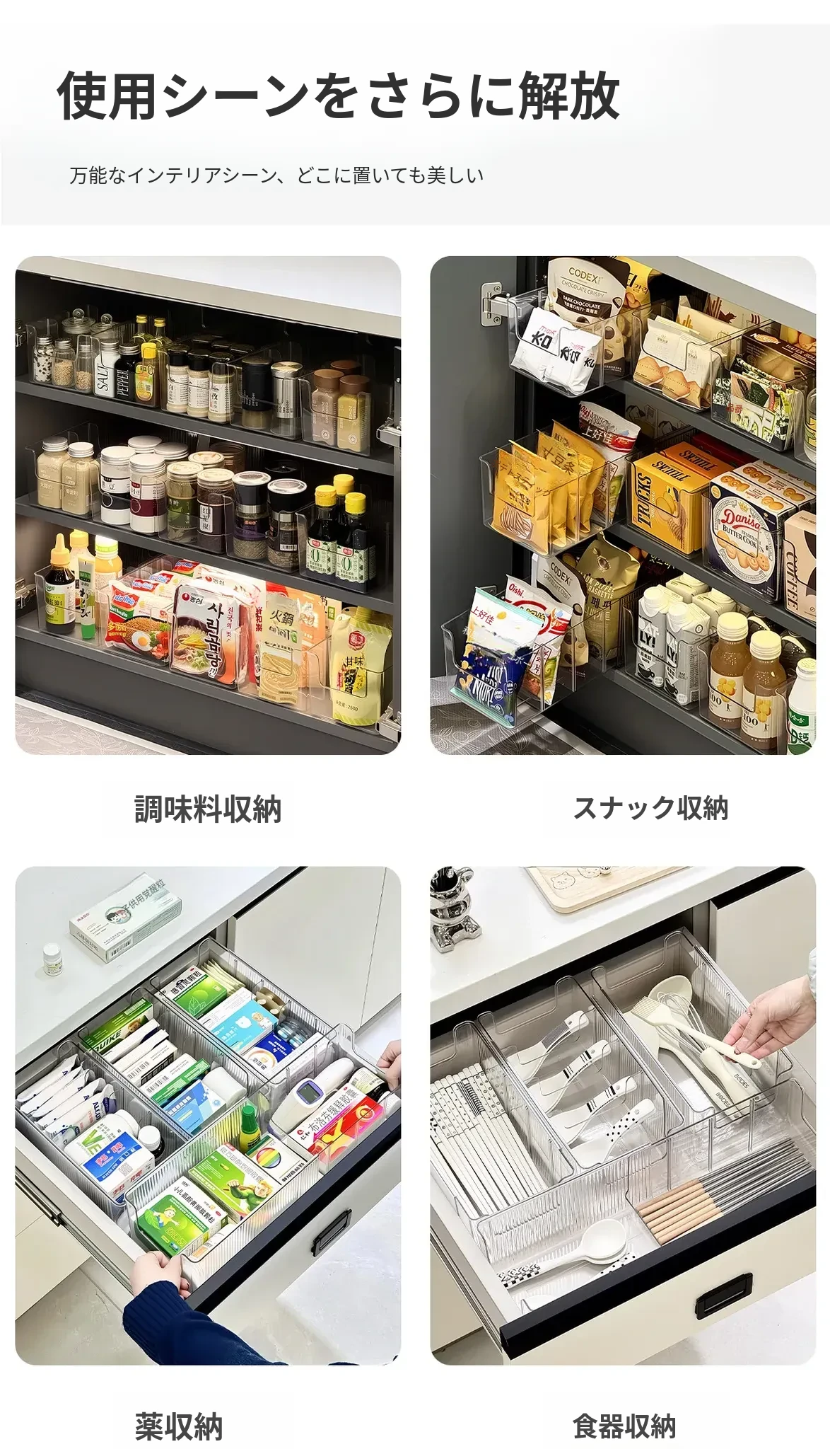 キッチン整理に最適!角型収納ボックス - スナック用分格ストレージバスケット、食器棚や引き出しにぴったりな雑貨整理ボックスで、スッキリとした空間を実現!