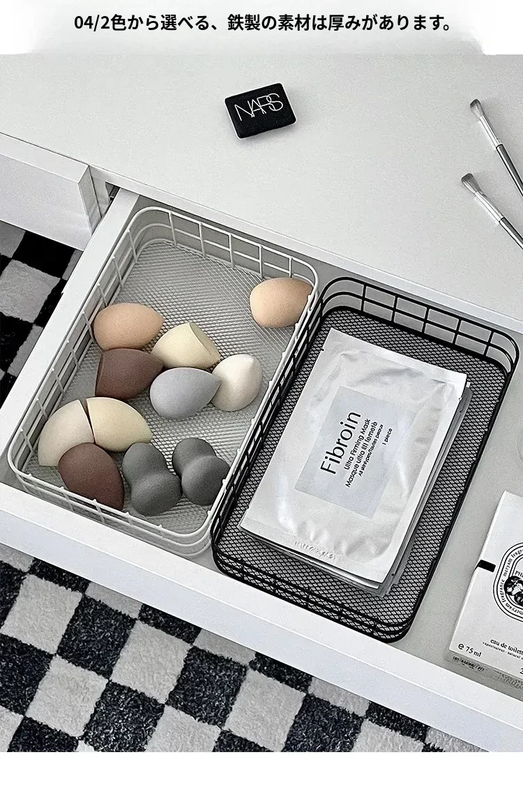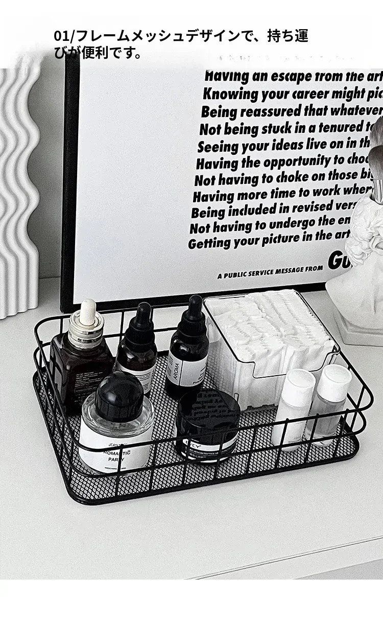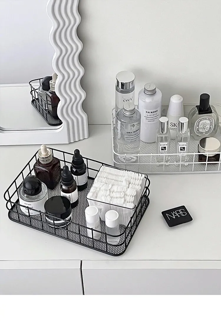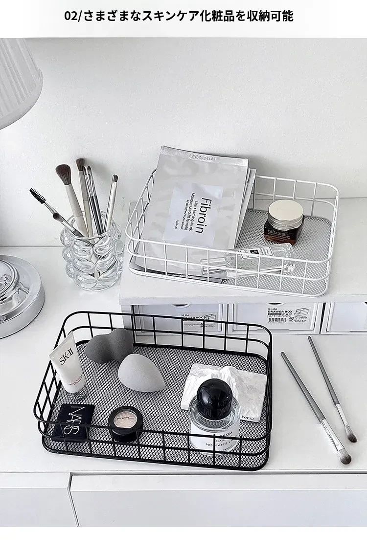 メイクアップ収納バスケット - ドレッサーやテーブルに最適な香水・スキンケア・フェイスマスク収納!バスルームやトイレでの整理整頓に役立つ便利なアイテムです。おしゃれで機能的な収納で、あなたの美の世界をスッキリ整えましょう!