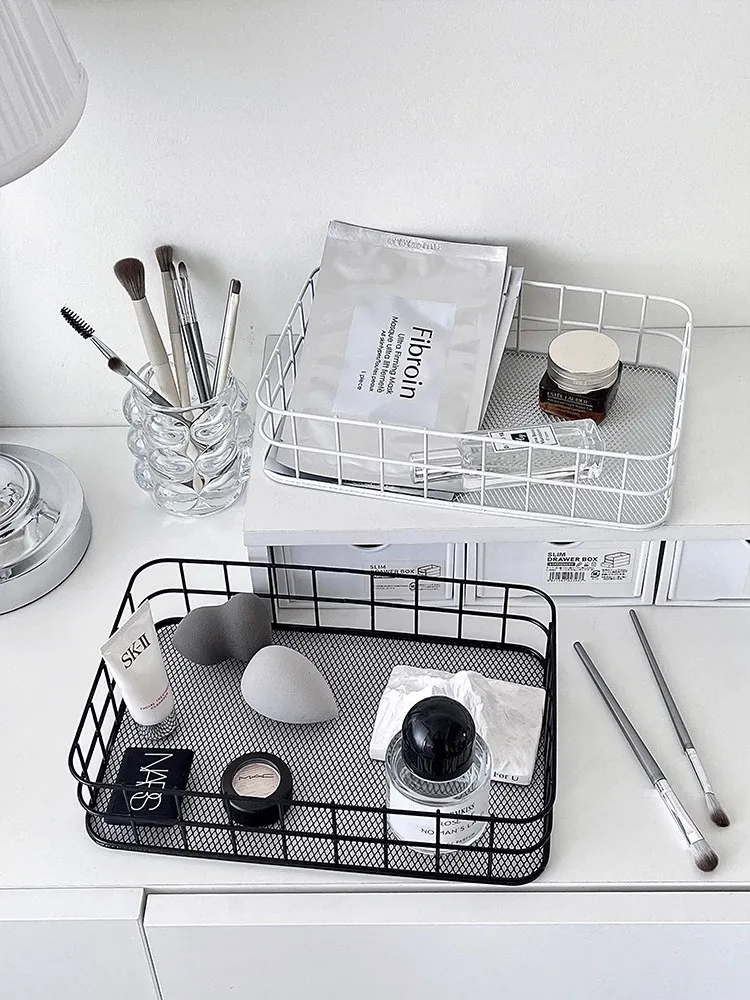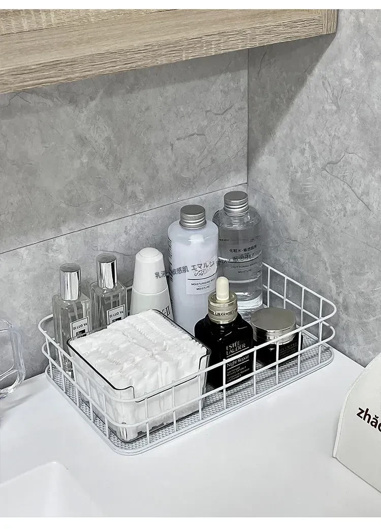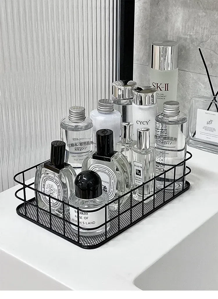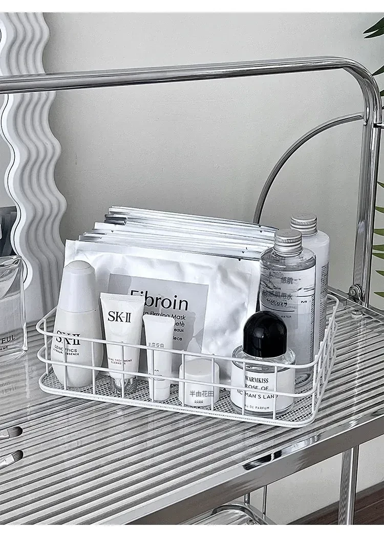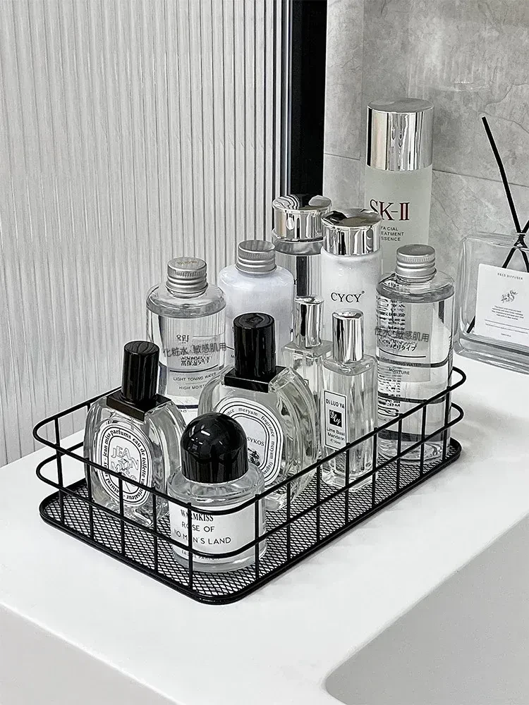 メイクアップ収納バスケット - ドレッサーやテーブルに最適な香水・スキンケア・フェイスマスク収納!バスルームやトイレでの整理整頓に役立つ便利なアイテムです。おしゃれで機能的な収納で、あなたの美の世界をスッキリ整えましょう!