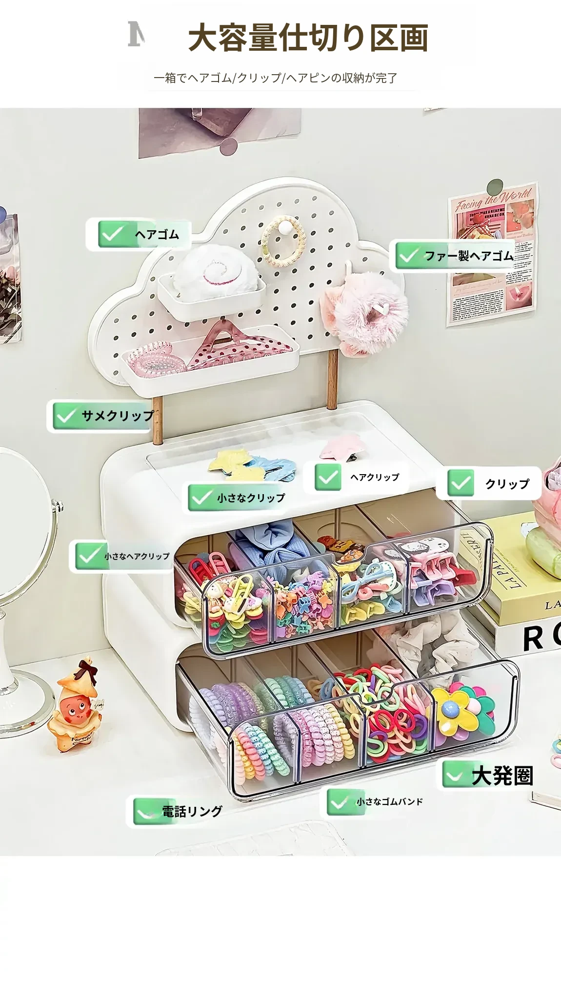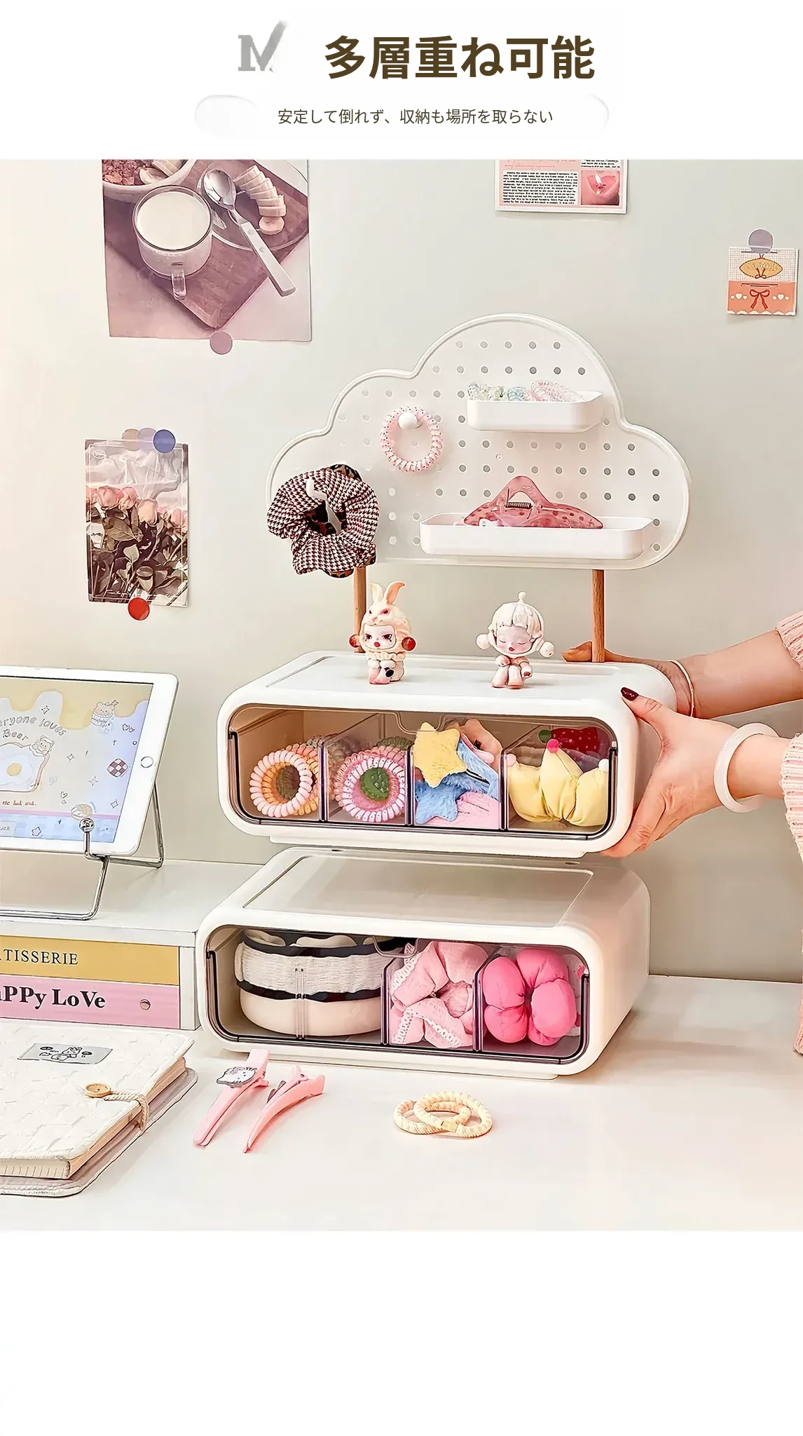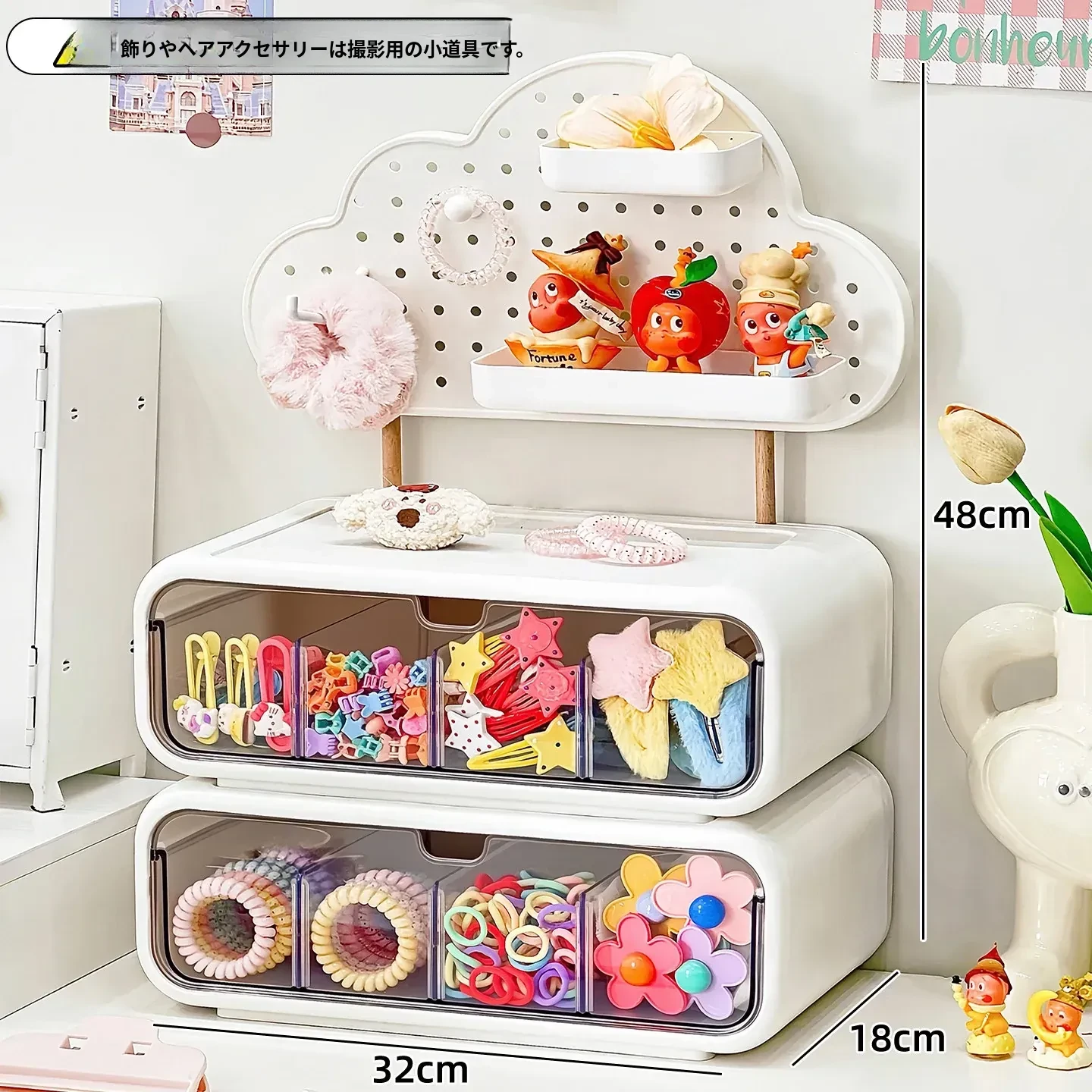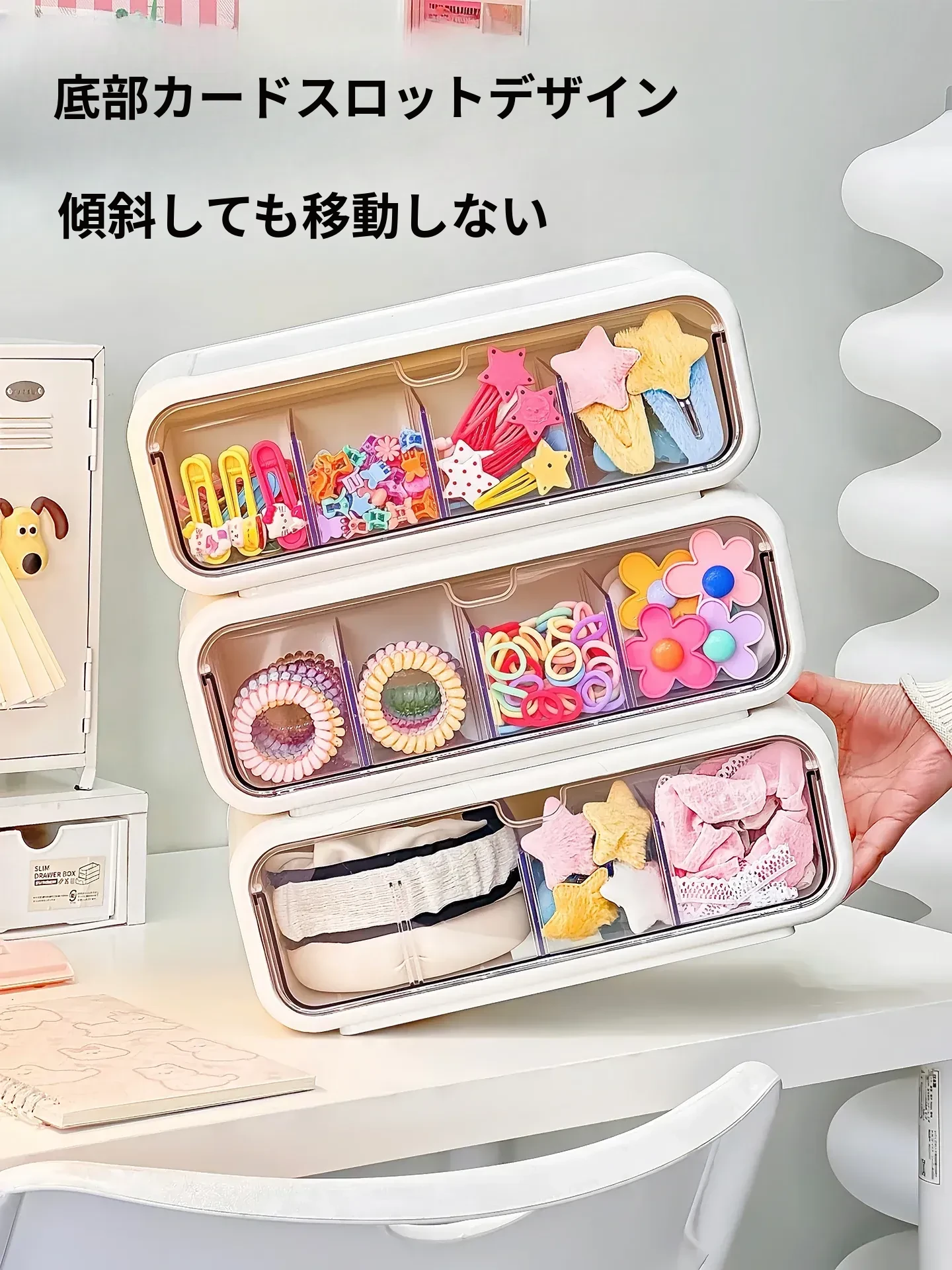 可愛い女の子のヘアアクセサリー収納ボックス!分割式のヘアクリップやポニーテール用ゴムを整理できる引き出し式の置物ラック。おしゃれで便利なヘアゴム収納ラックで、あなたのヘアスタイルをもっと素敵に!