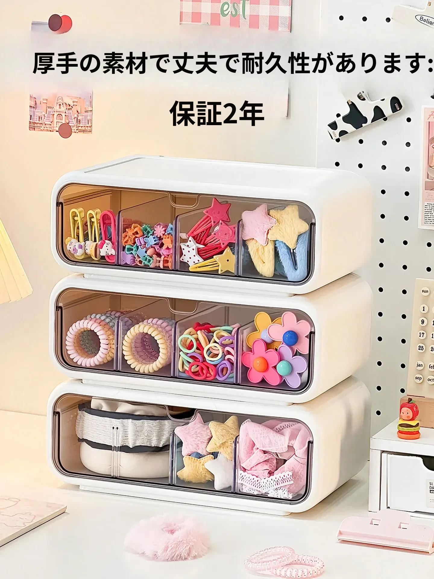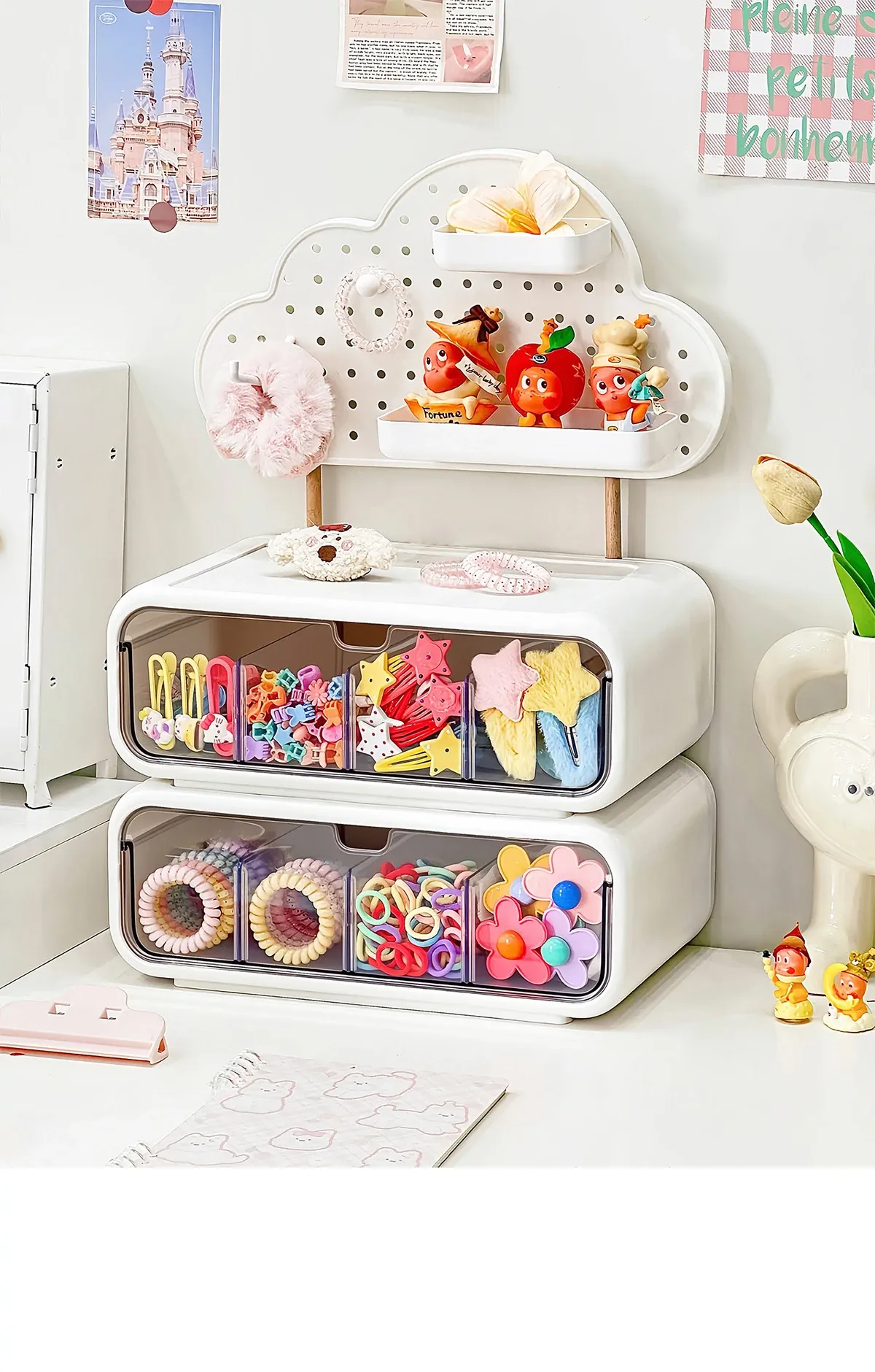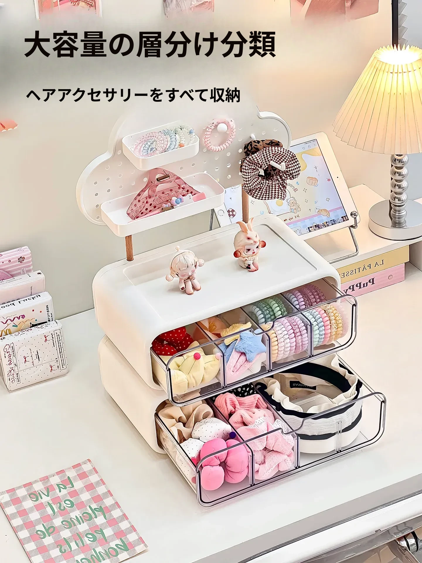 可愛い女の子のヘアアクセサリー収納ボックス!分割式のヘアクリップやポニーテール用ゴムを整理できる引き出し式の置物ラック。おしゃれで便利なヘアゴム収納ラックで、あなたのヘアスタイルをもっと素敵に!