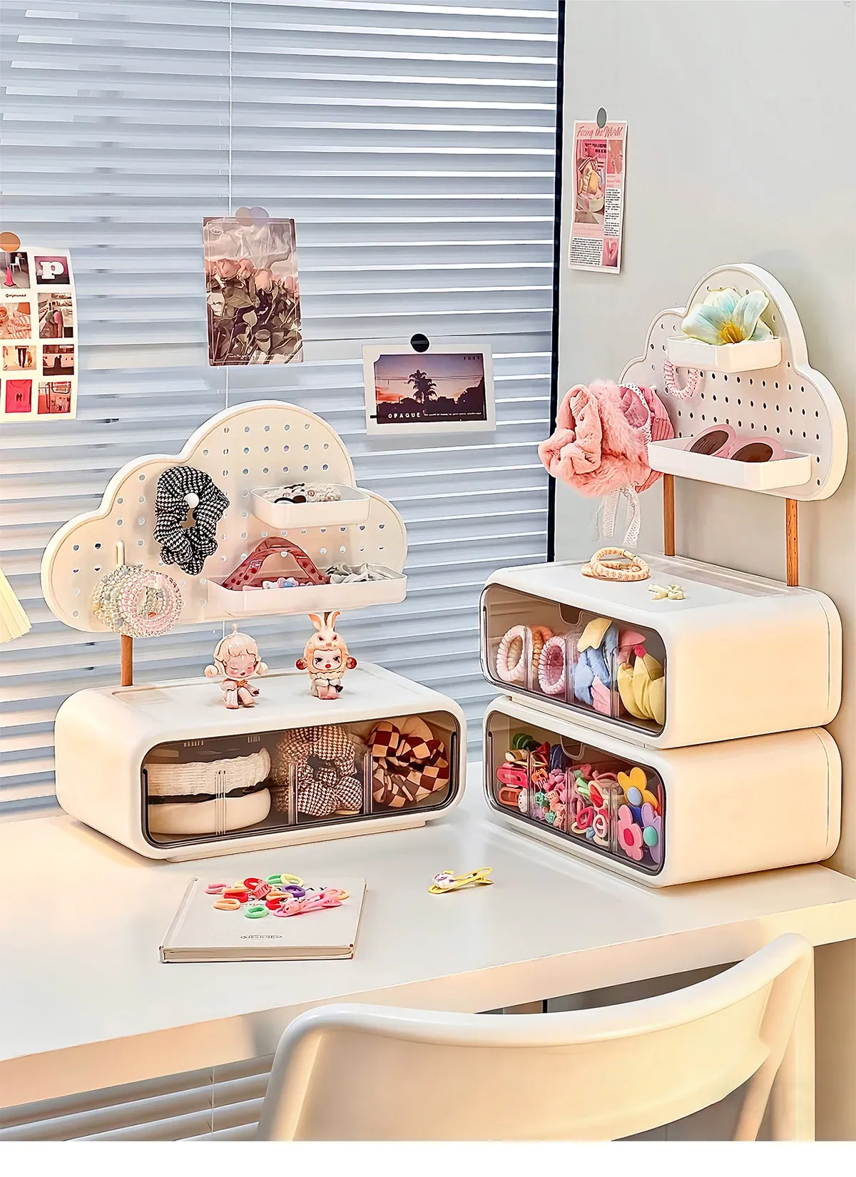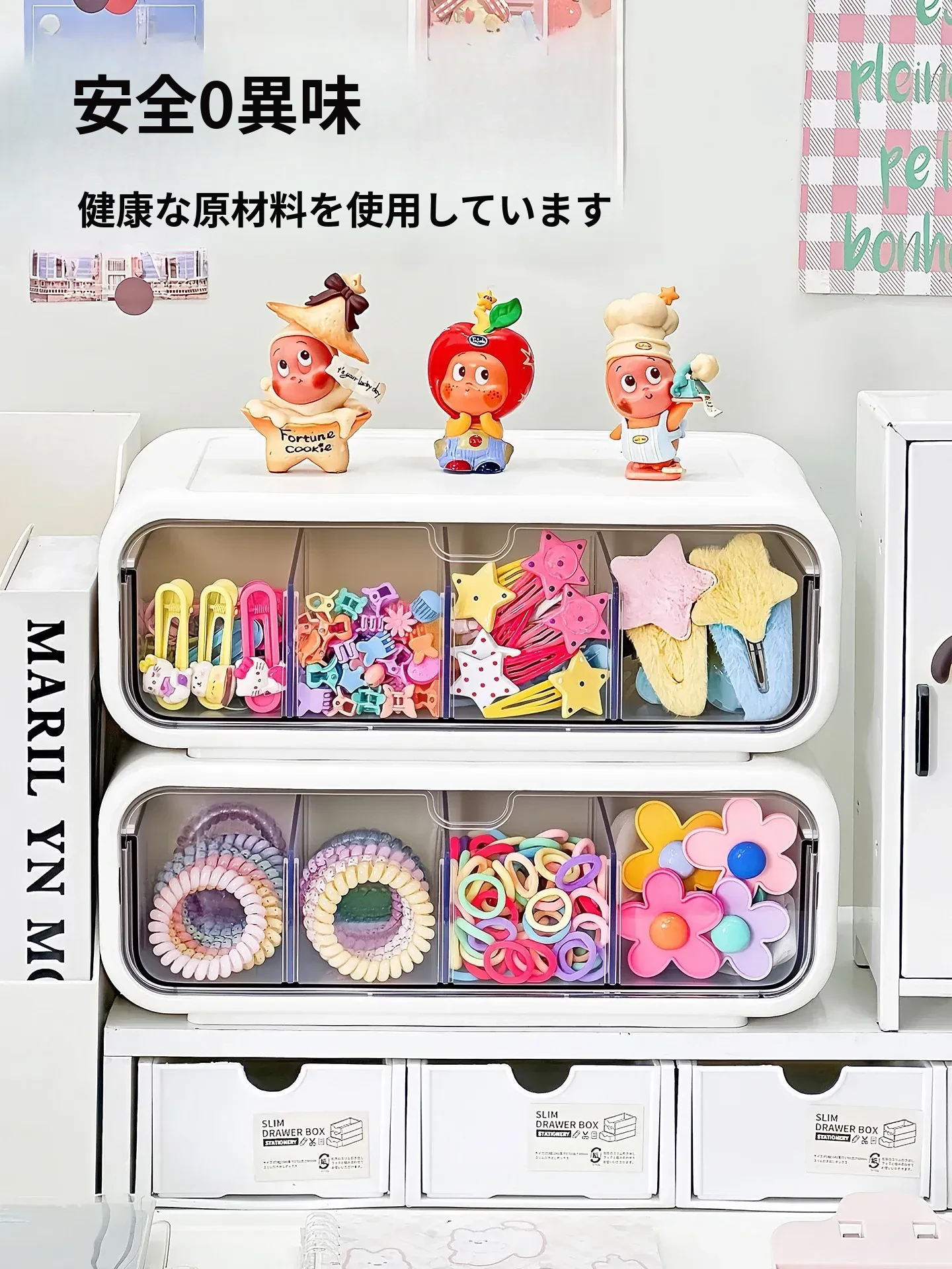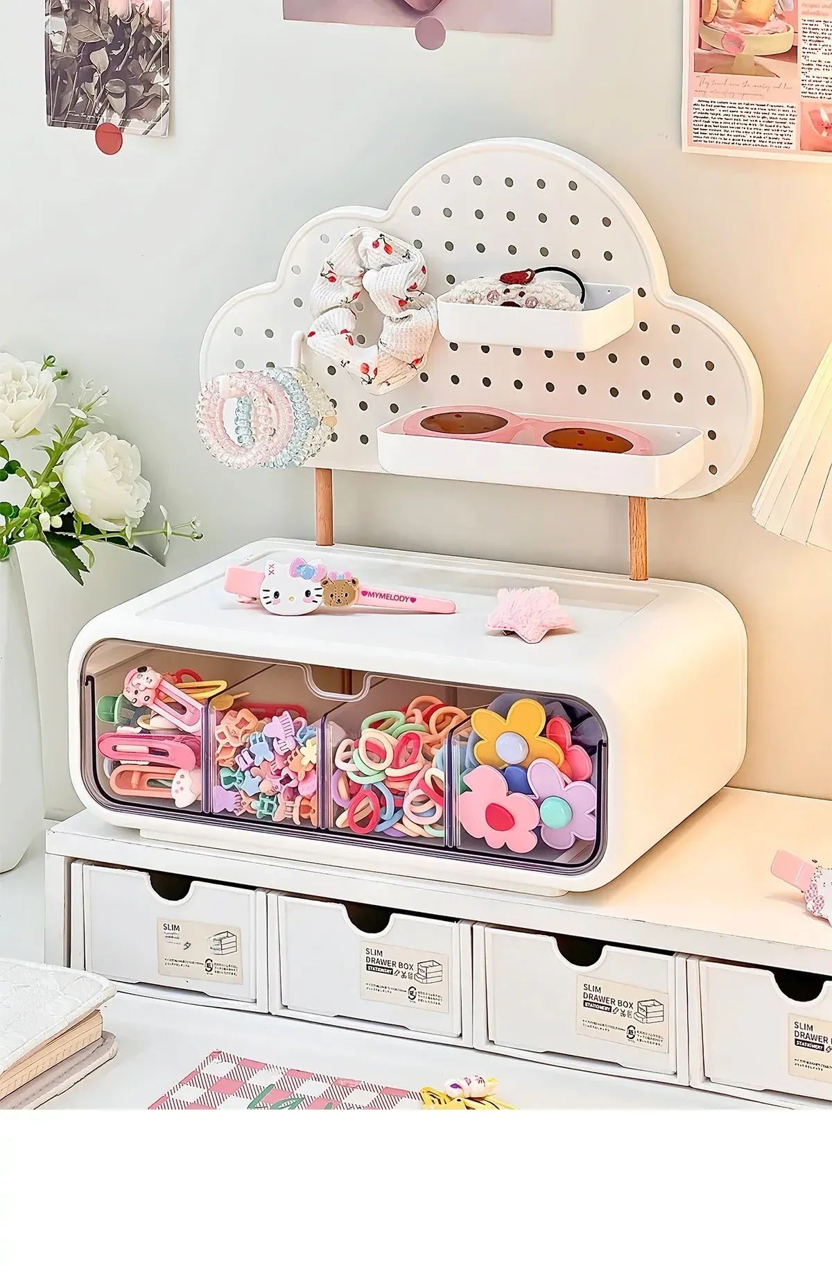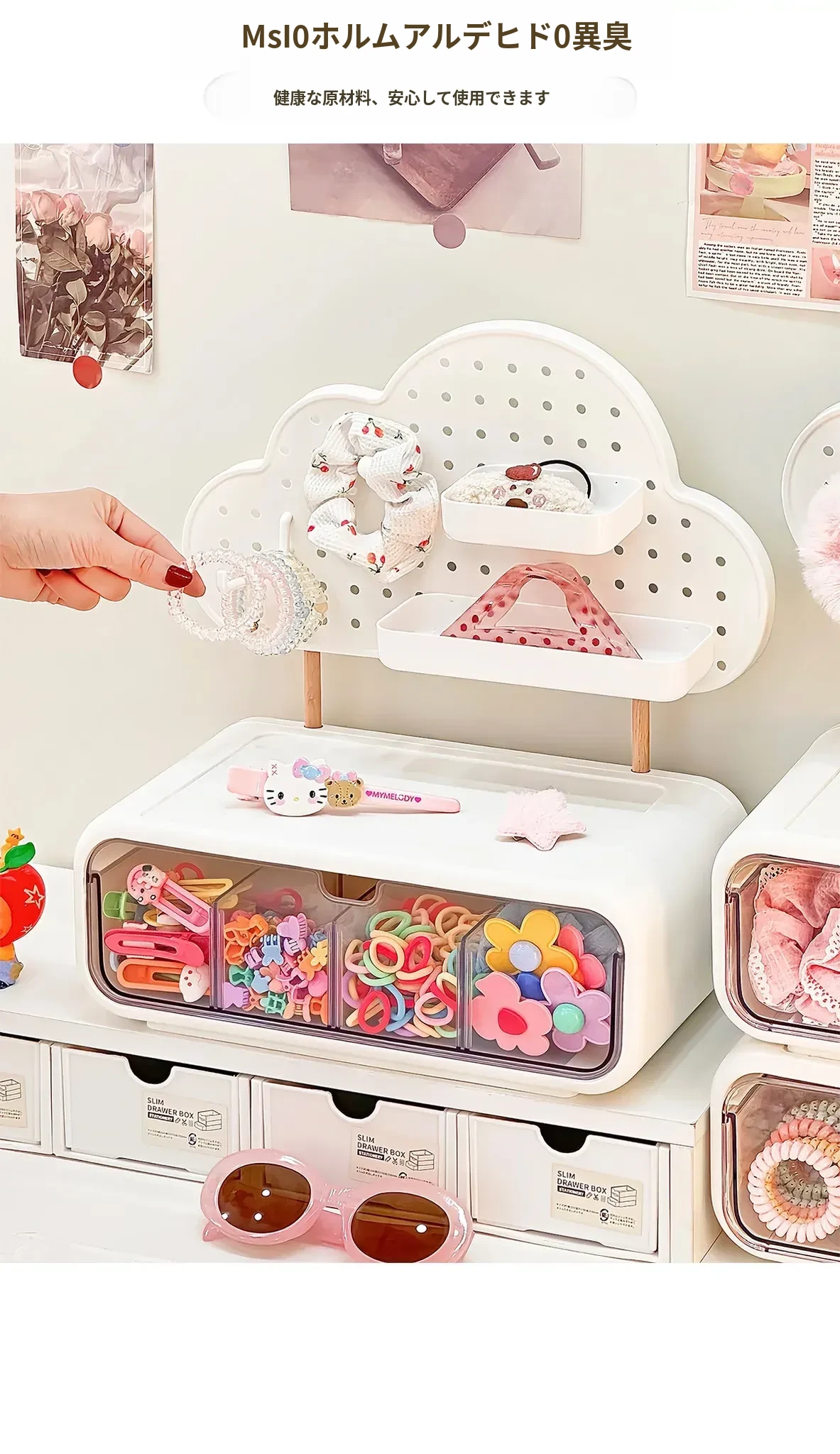 可愛い女の子のヘアアクセサリー収納ボックス!分割式のヘアクリップやポニーテール用ゴムを整理できる引き出し式の置物ラック。おしゃれで便利なヘアゴム収納ラックで、あなたのヘアスタイルをもっと素敵に!