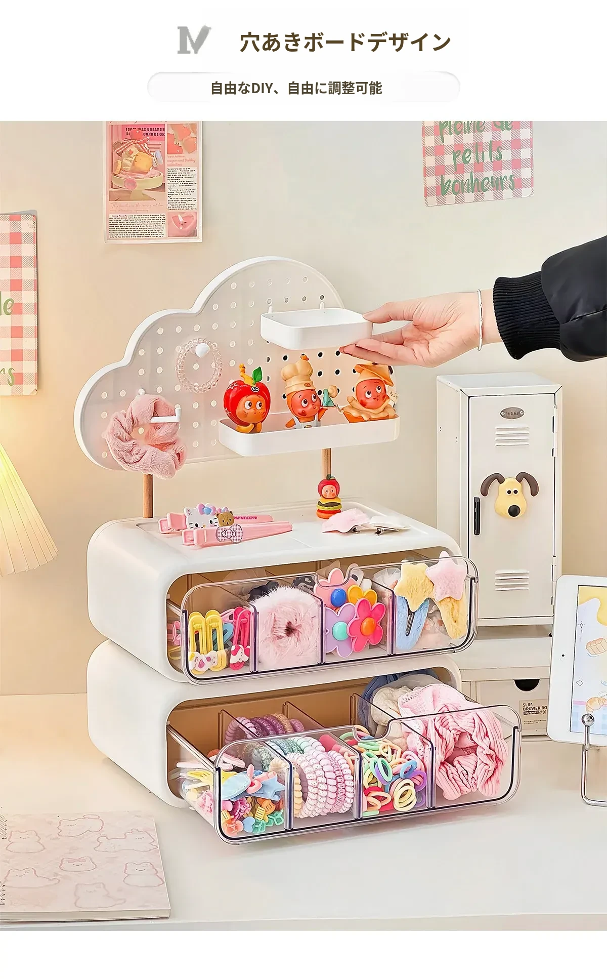 【2段引き出し+穴あきボード】✅厚手大容量