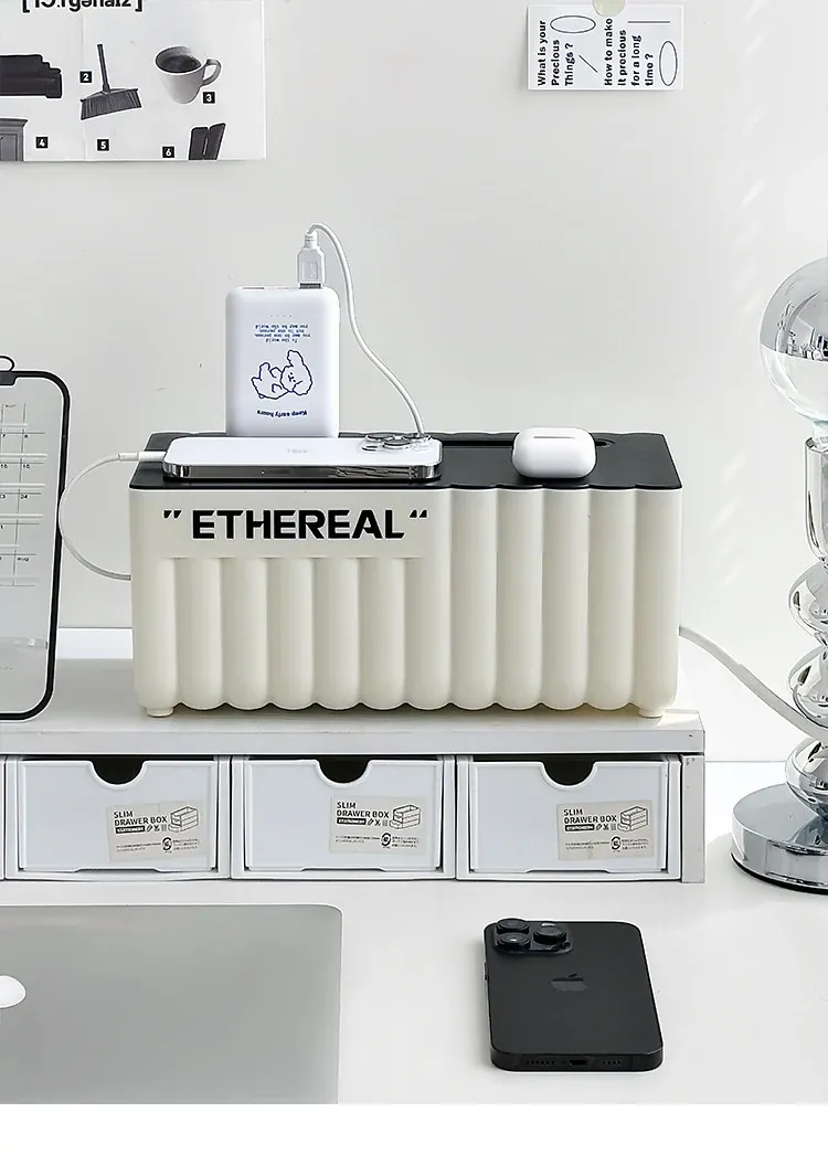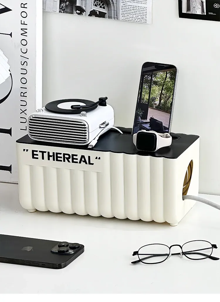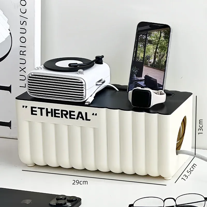 デスク周りをスッキリ整理!電源タップ収納ボックス - ケーブルや充電線を美しくまとめる便利アイテム。散らかりがちな電線を隠して、スタイリッシュな空間を実現!
