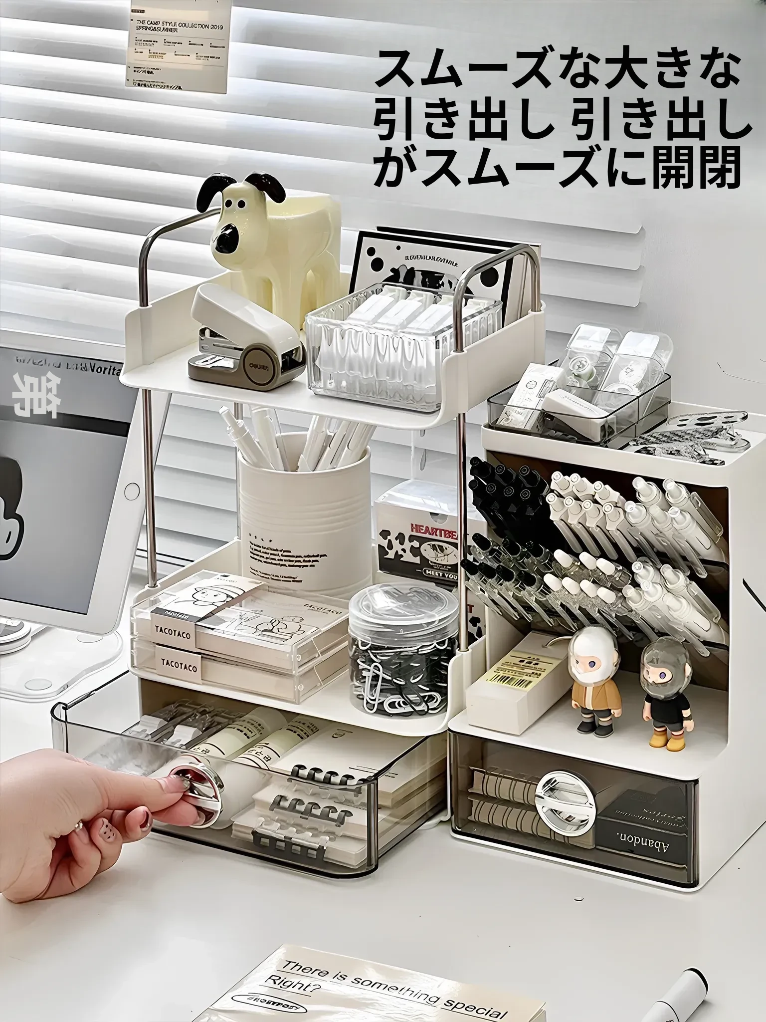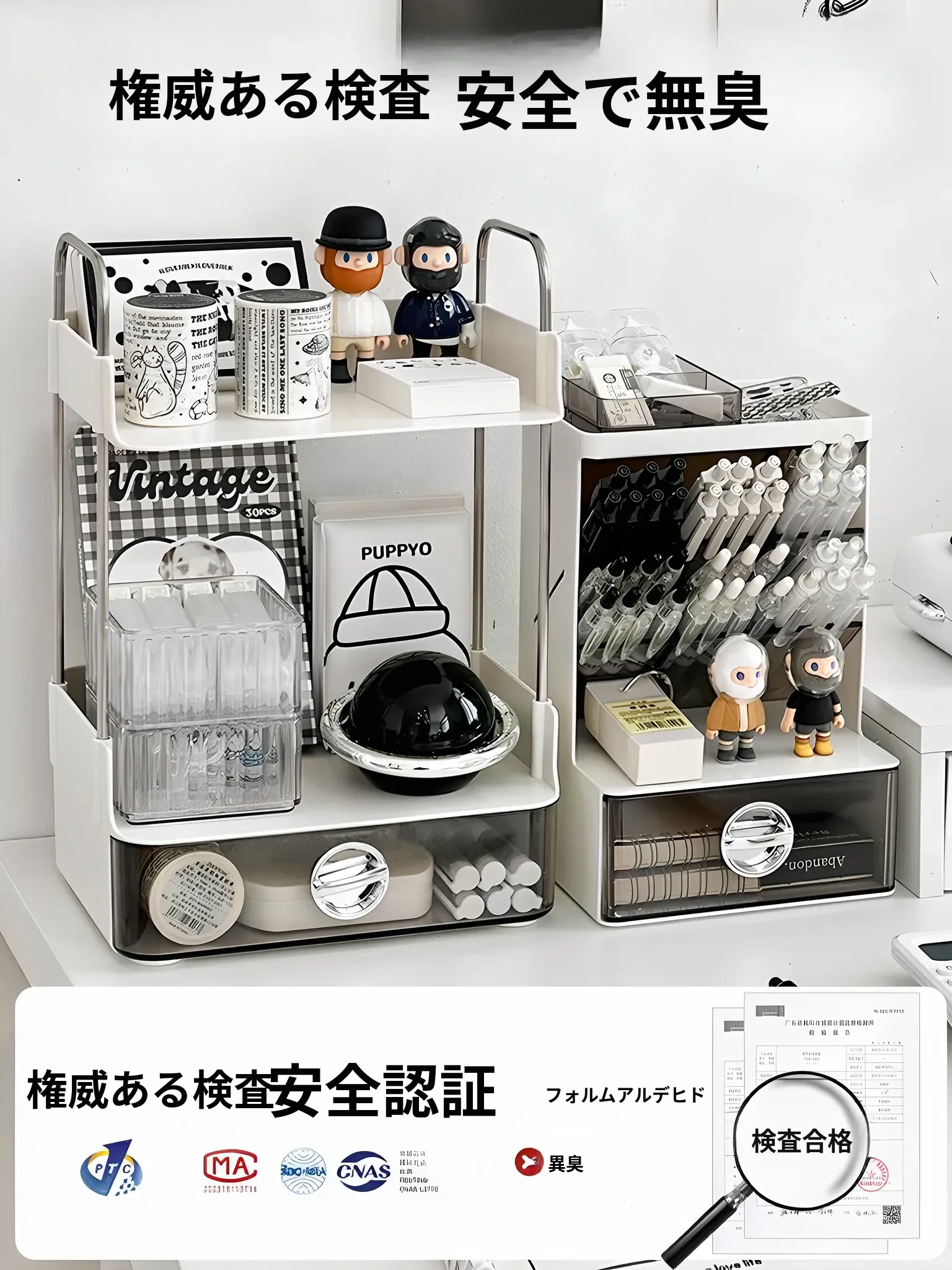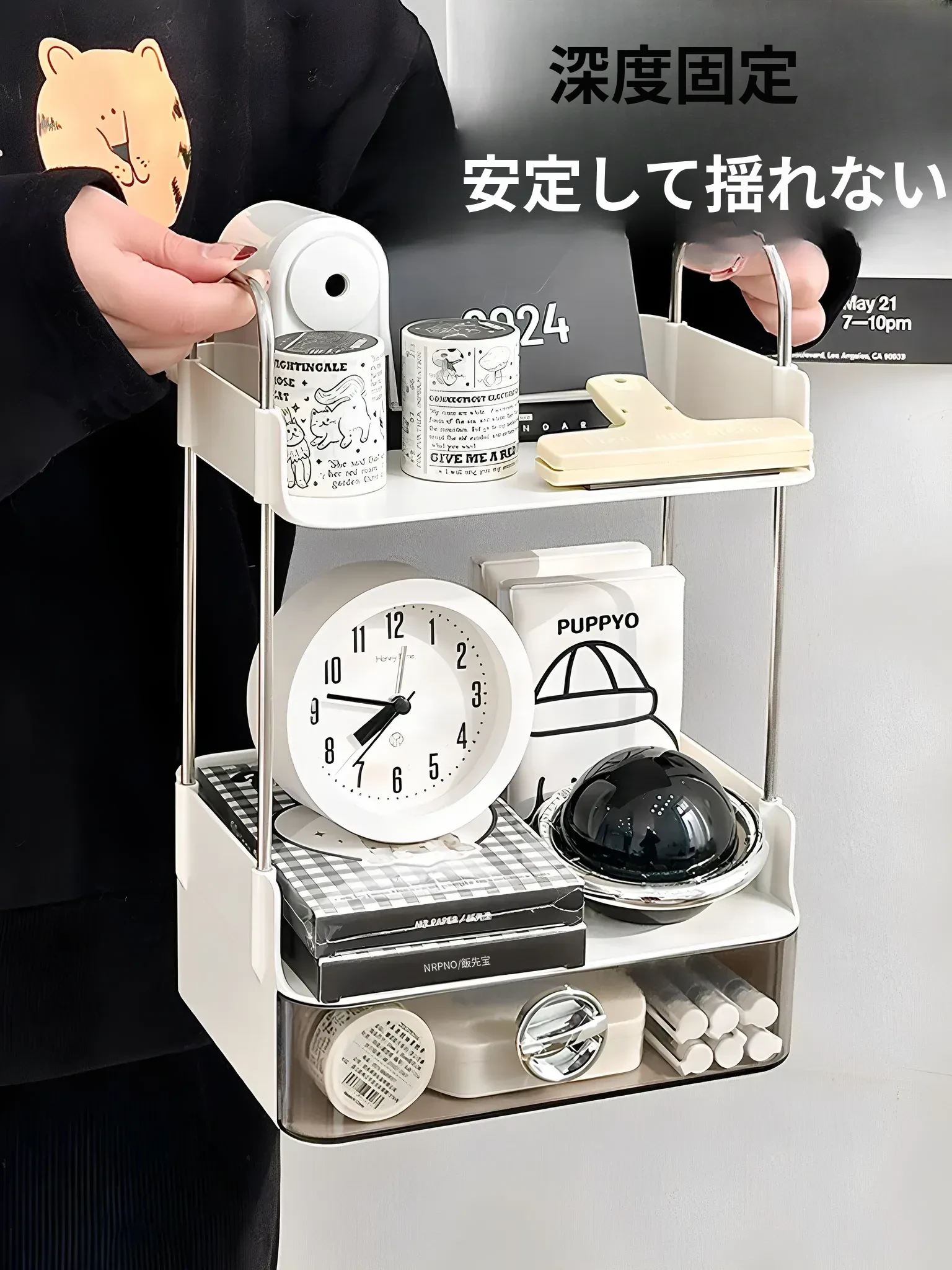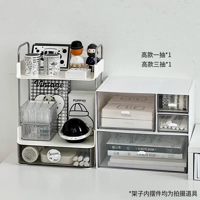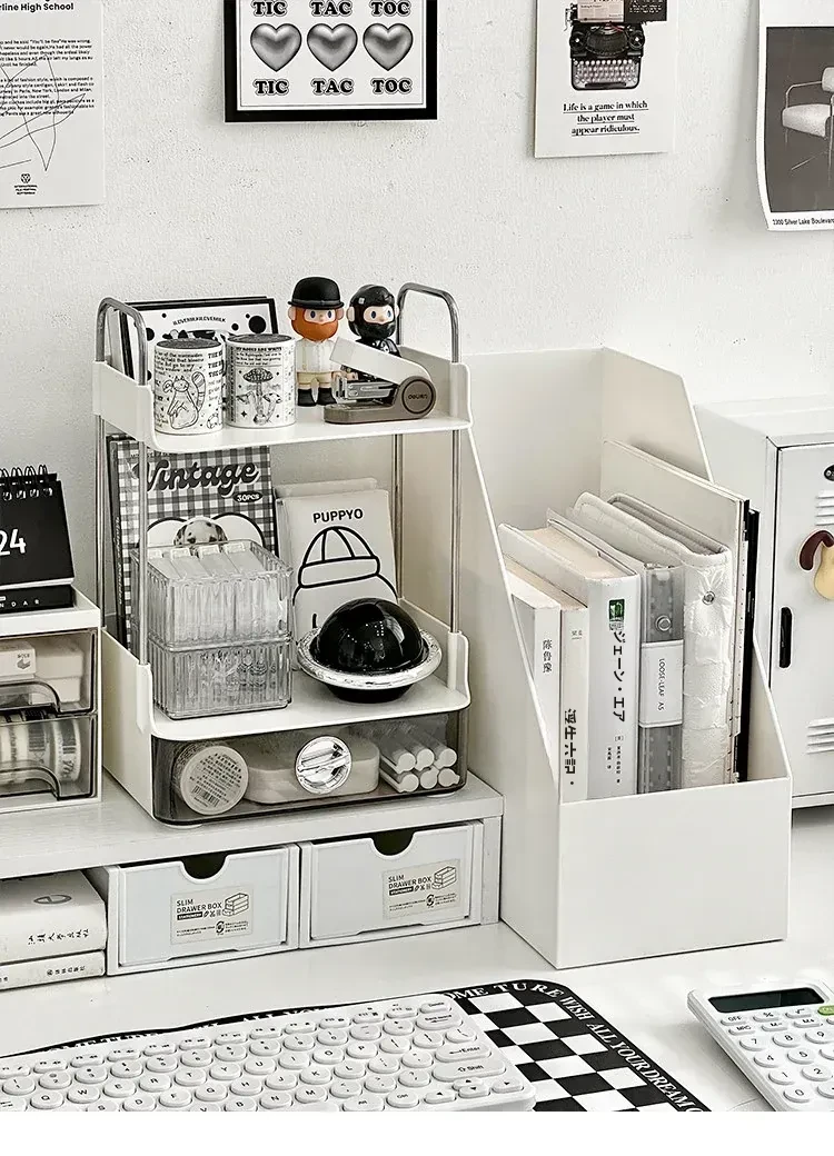 デスク収納ラック - 引き出し付き2段整理棚!文房具や小物をすっきり収納し、学習や仕事に最適なデスク環境を提供します。寮やオフィスでも使えるスタイリッシュなデザイン!