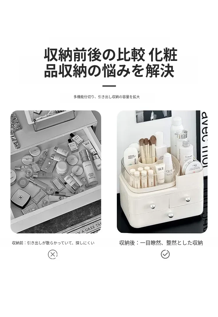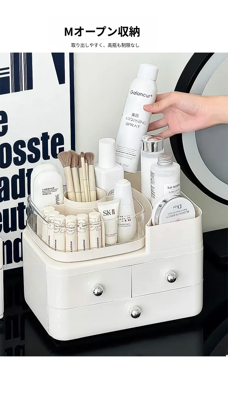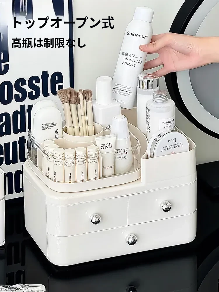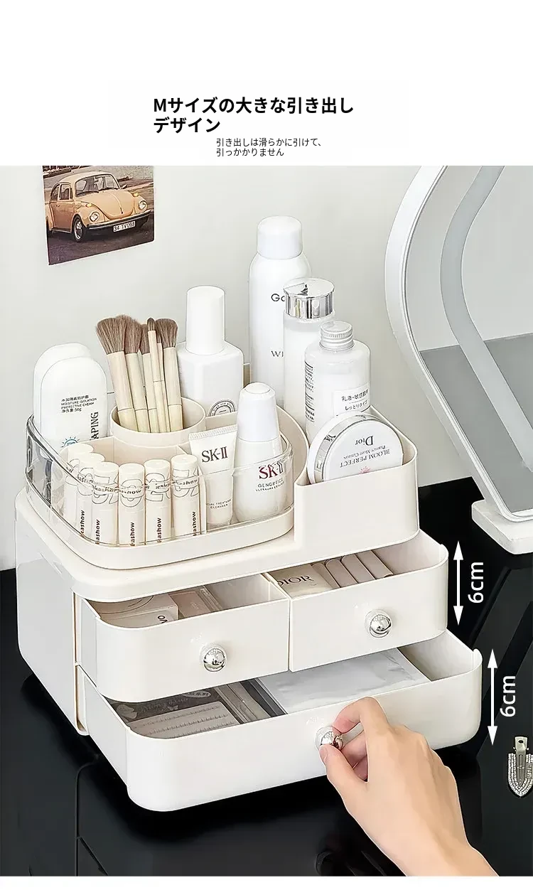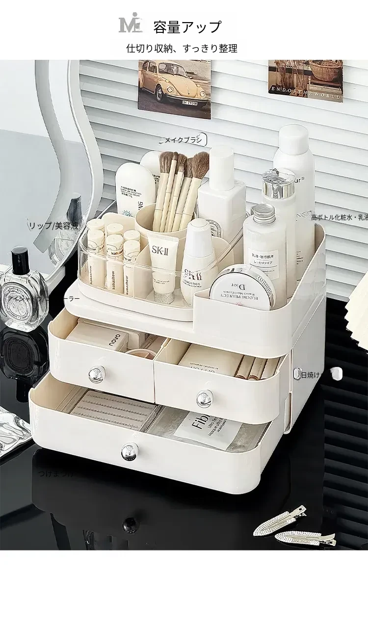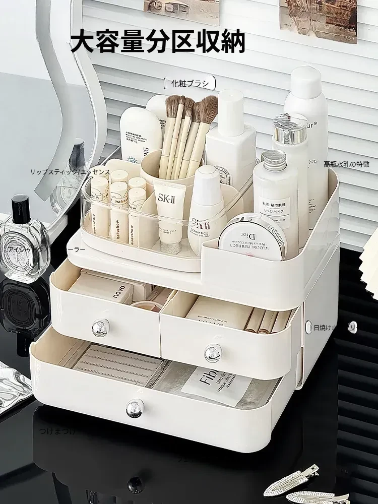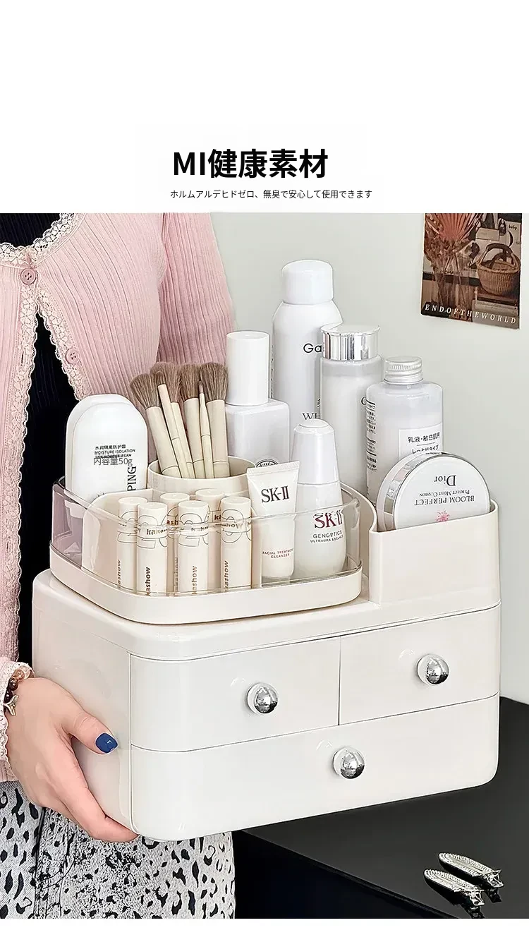 高級感あふれる化粧品収納ボックス!大容量のドレッサー用スキンケアアイテム整理ラック。リップやアイブロウペンシルもスッキリ整頓できる、あなたの美しさを引き立てる必須アイテム!